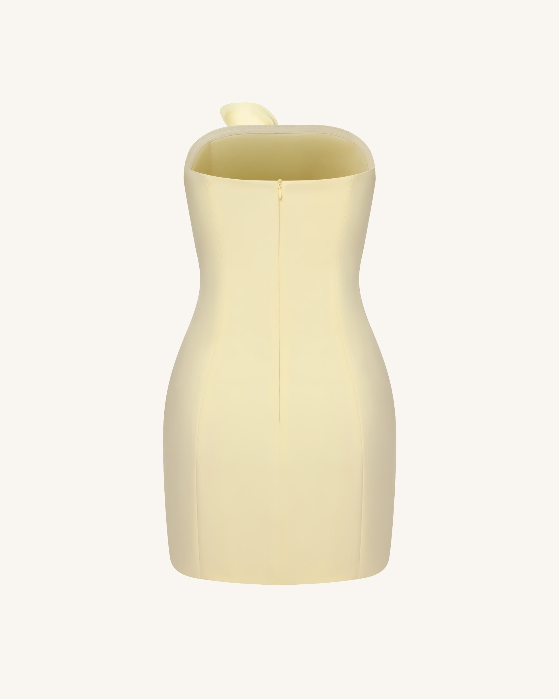 3Dフラワーアップリケ付きストラップレスミニドレス - イエロー