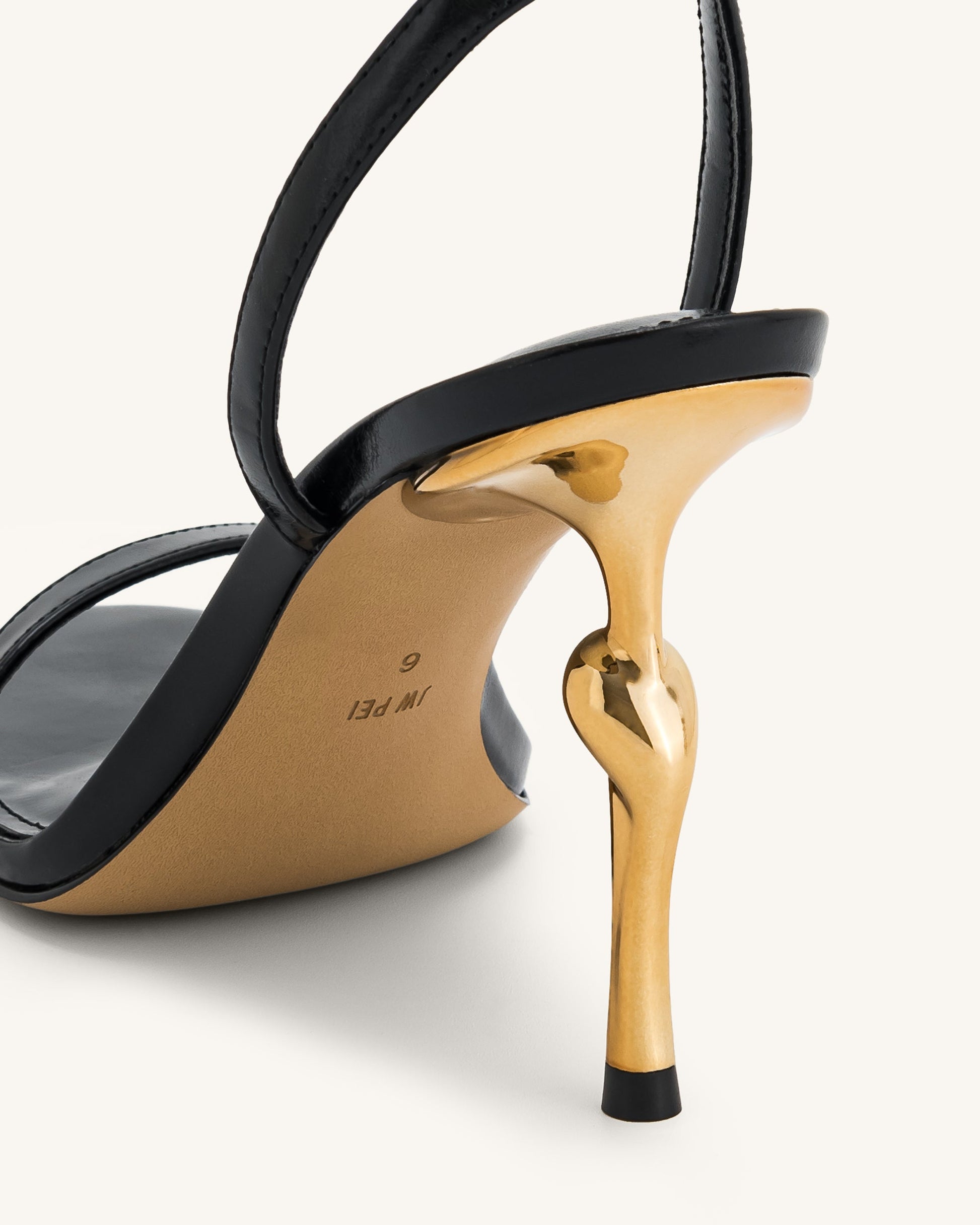 Alivia ゴールドメタルヒールのサンダル - ブラック
