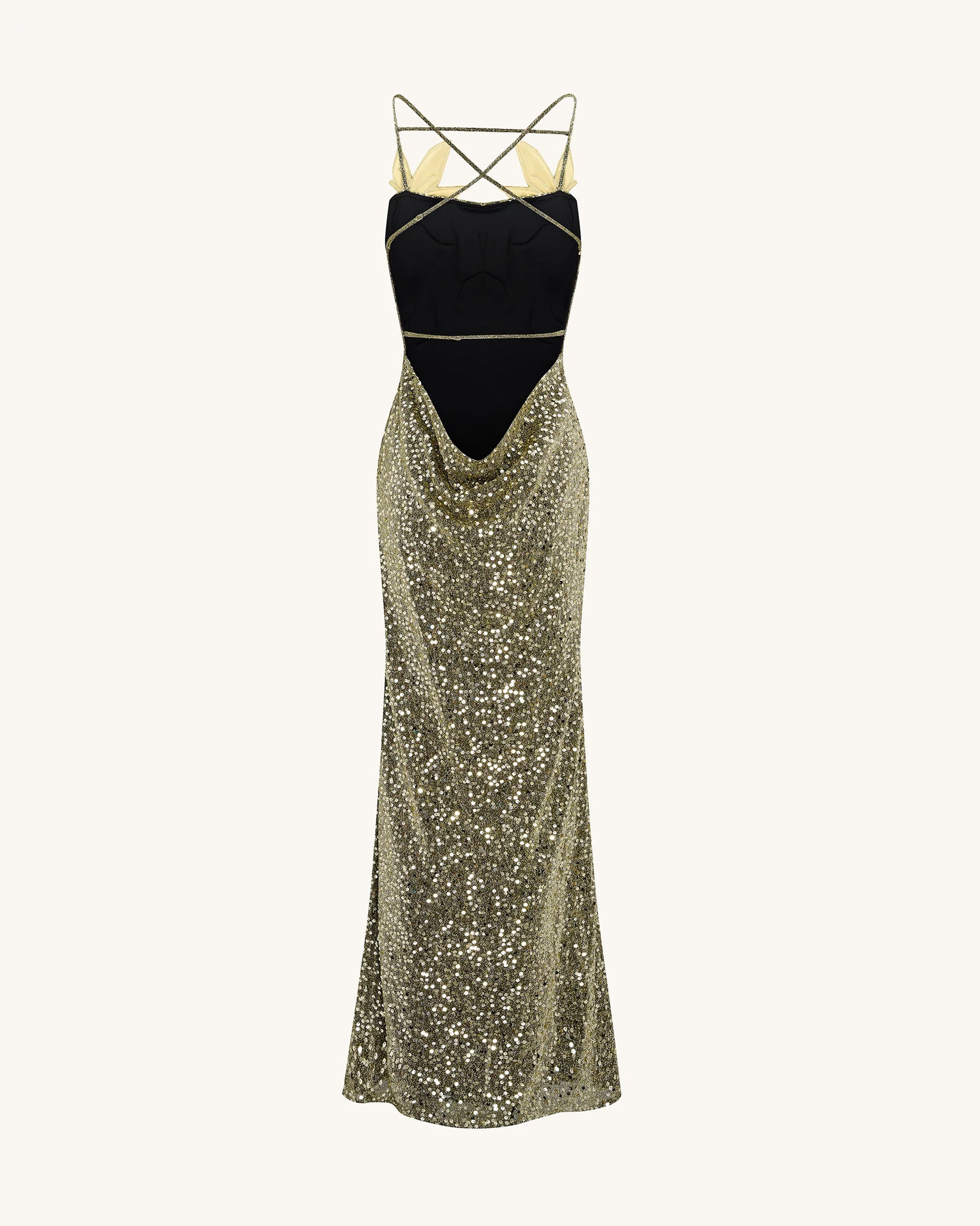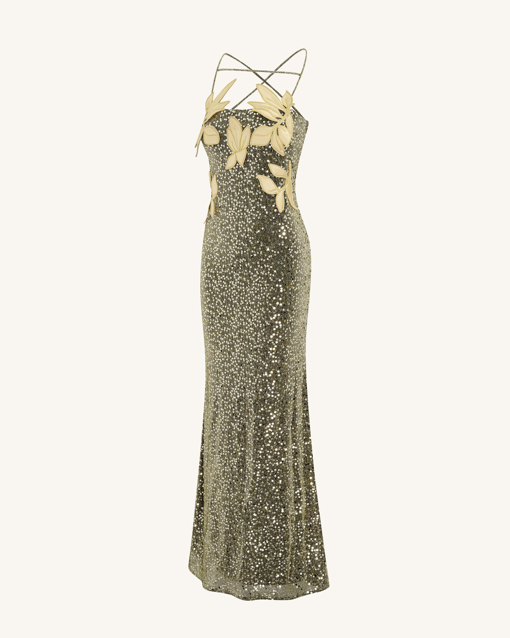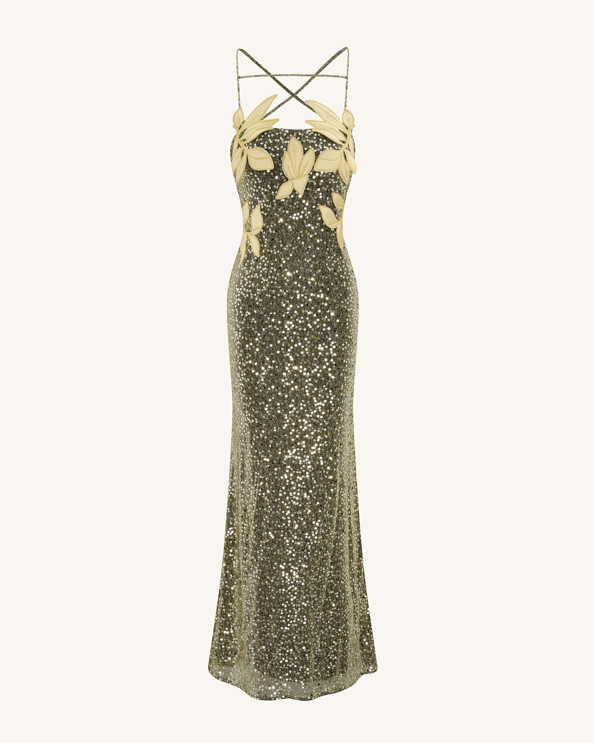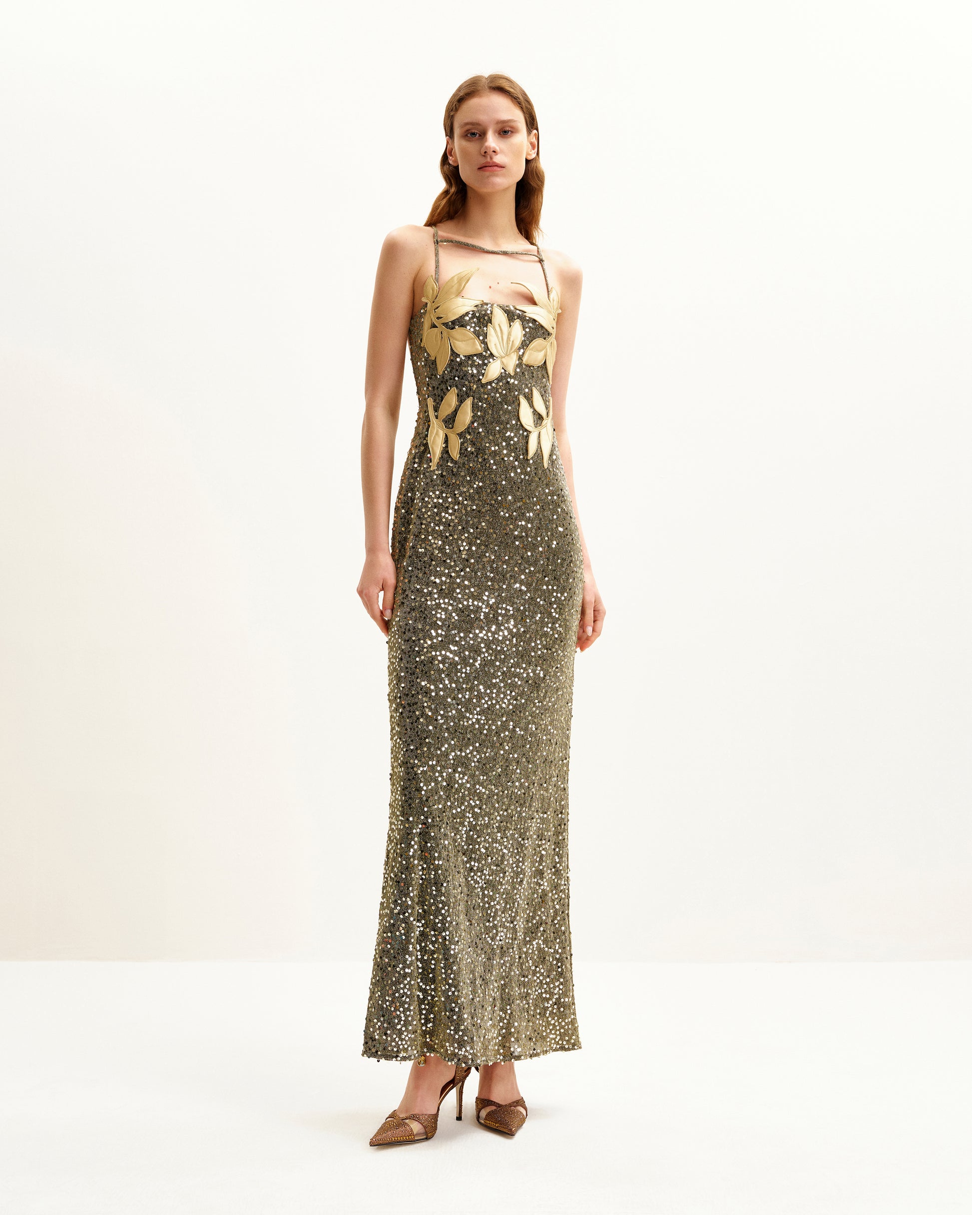 Araminta フローラルディテール付きスパンコールガウン - ゴールド