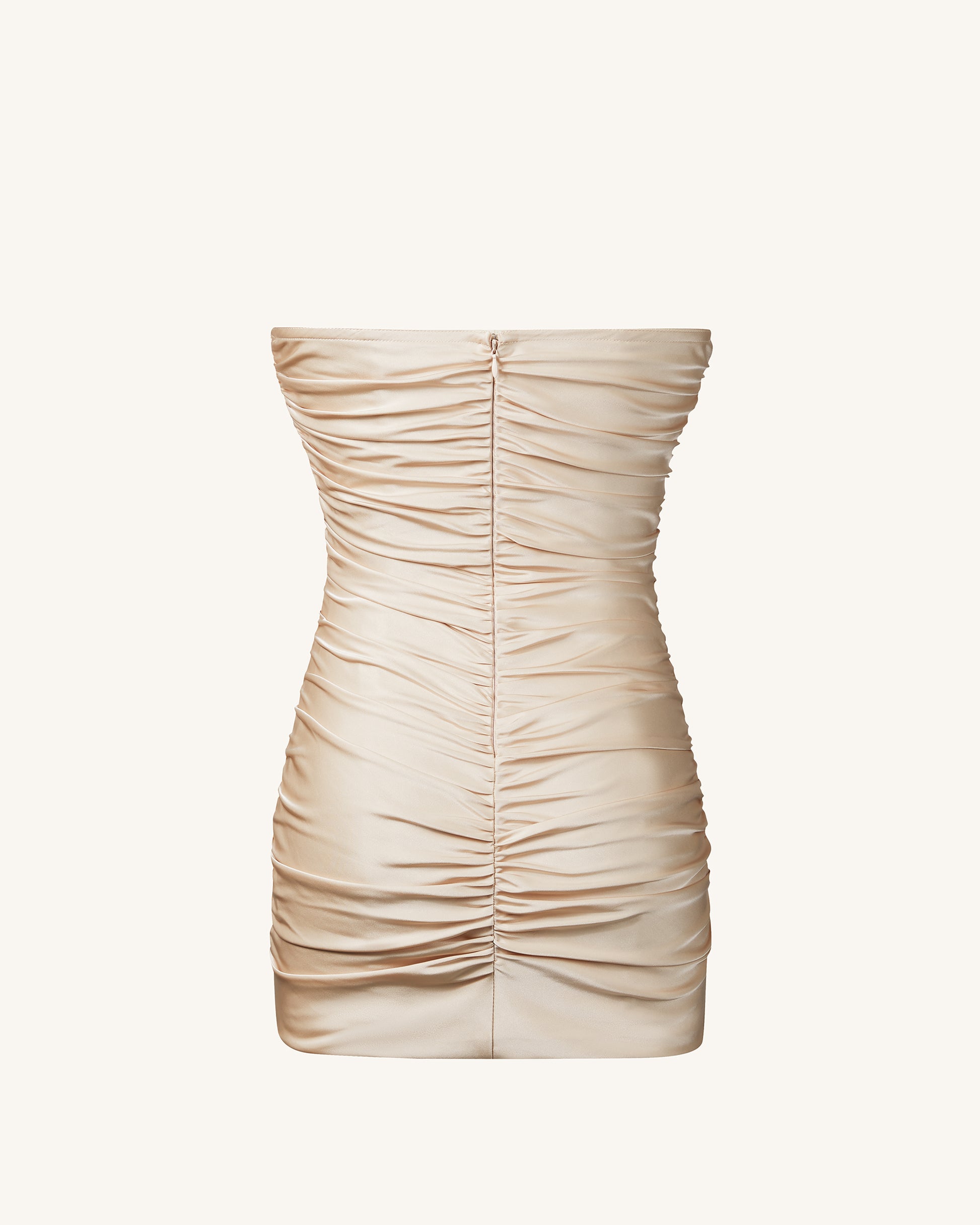 Bailee アプリコットフローラルアップリケとラッシュドチューブミニドレス - アプリコット