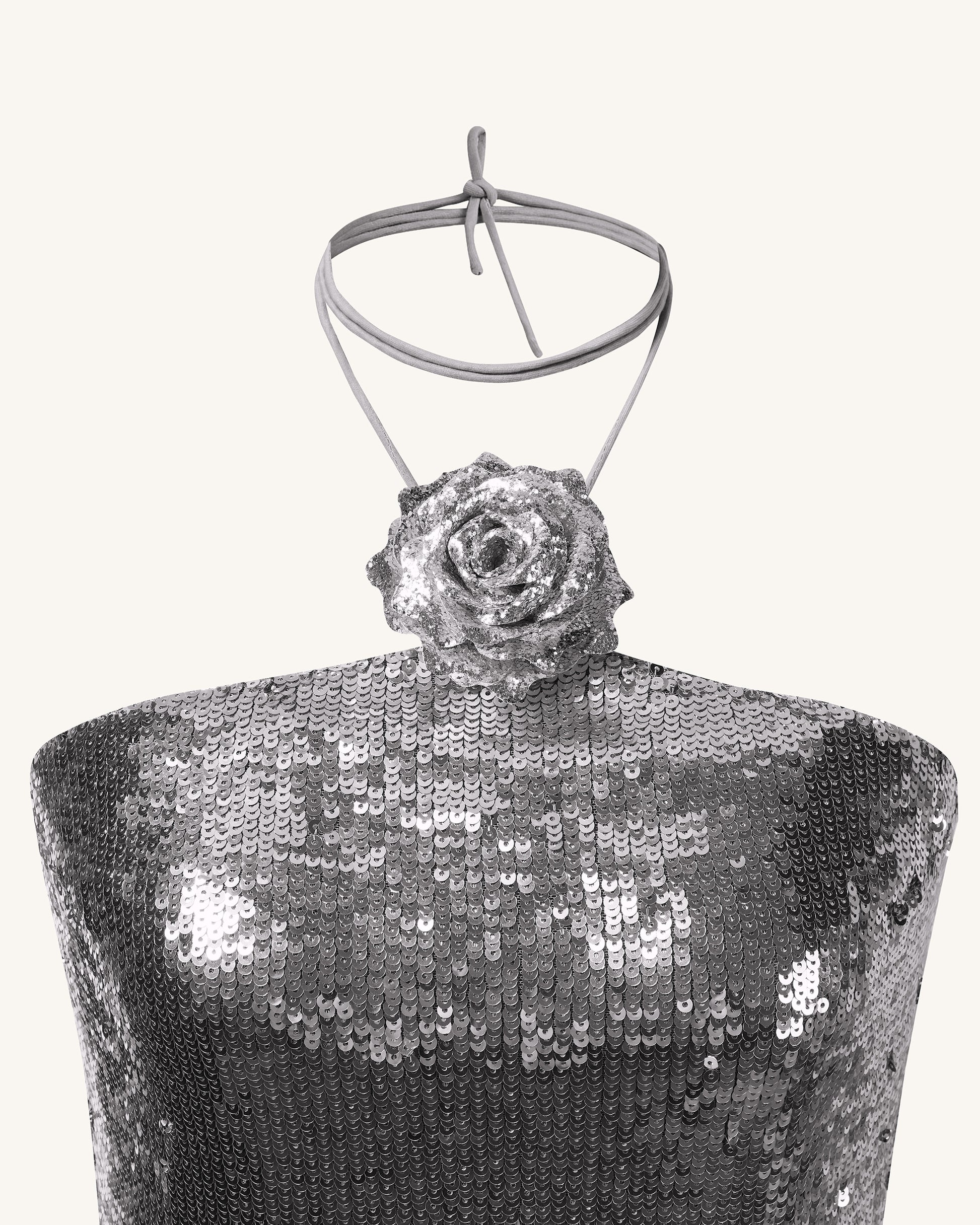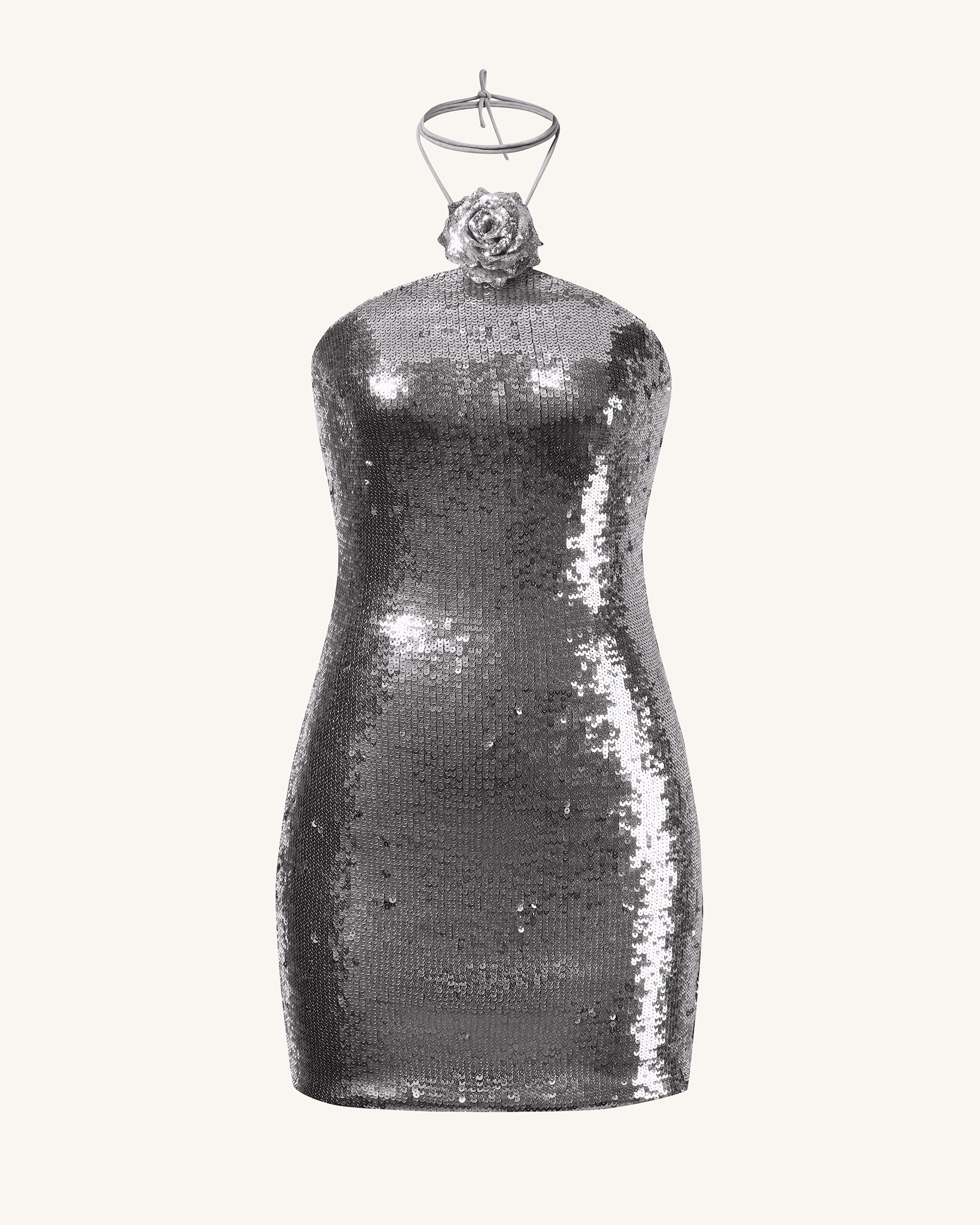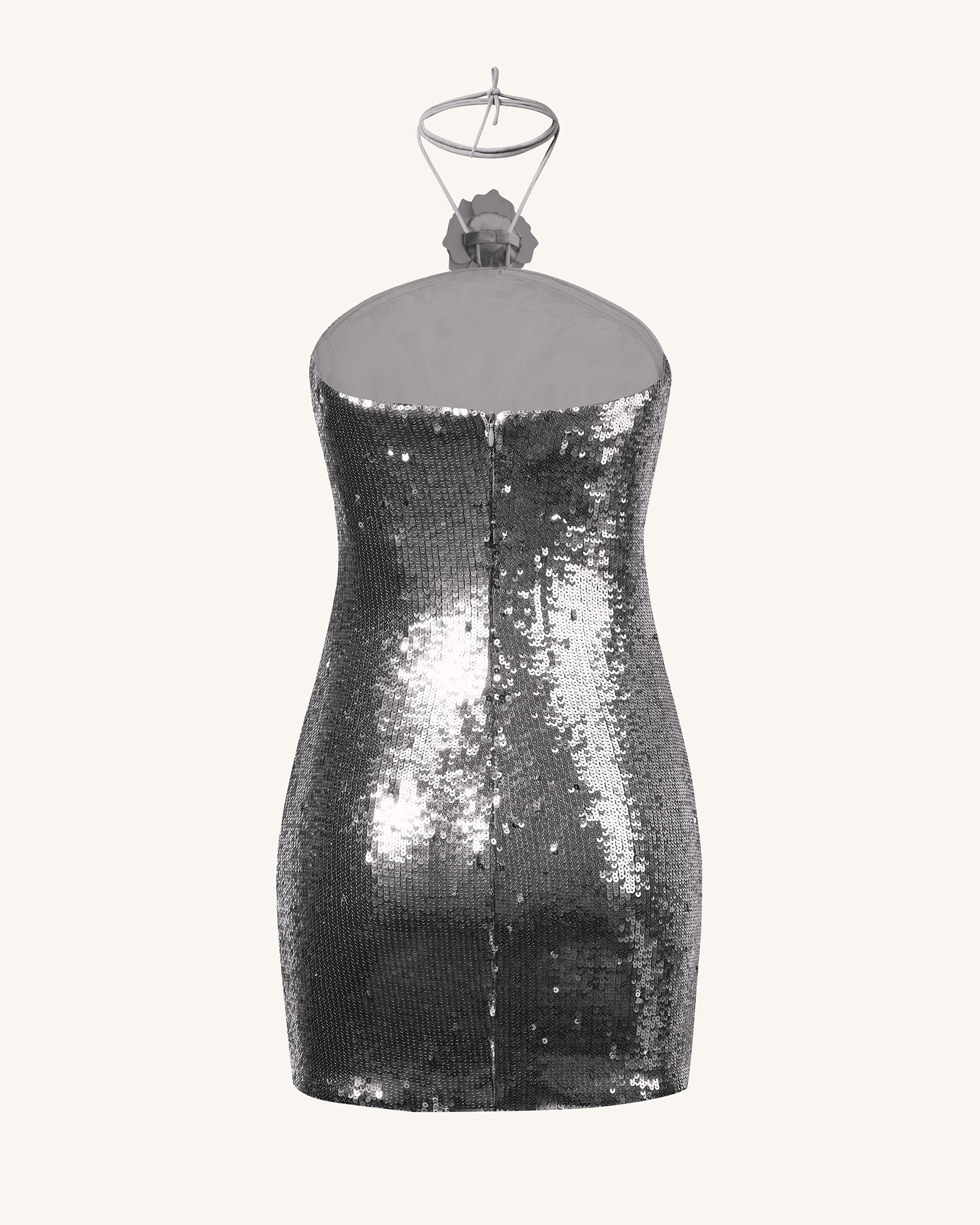 Burgundy シルバーシーケンスハルターミニドレス - シルバー