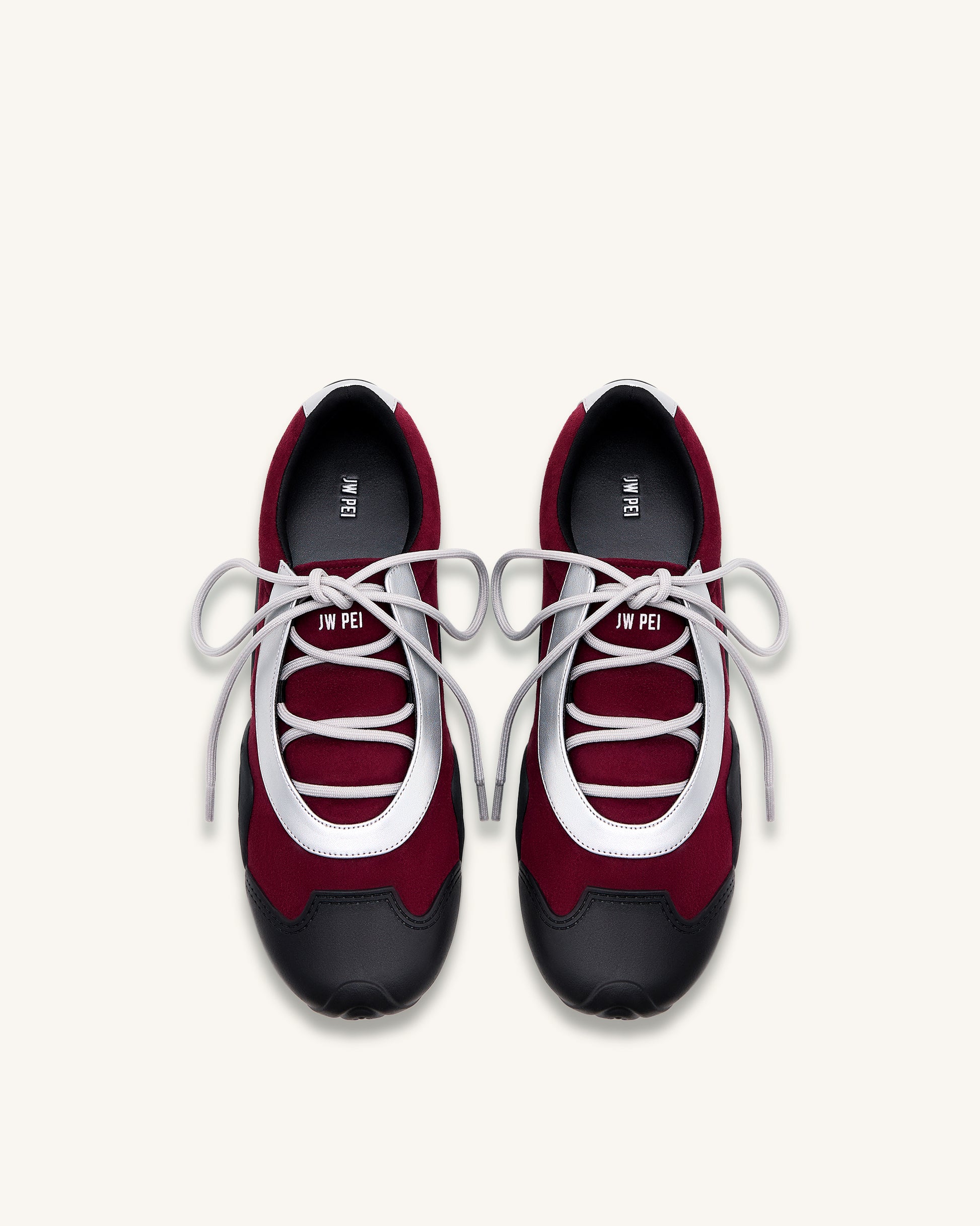 Caitlin フェイクスエード レースアップバレリーナスニーカー - バーガンディ&ライトグレー