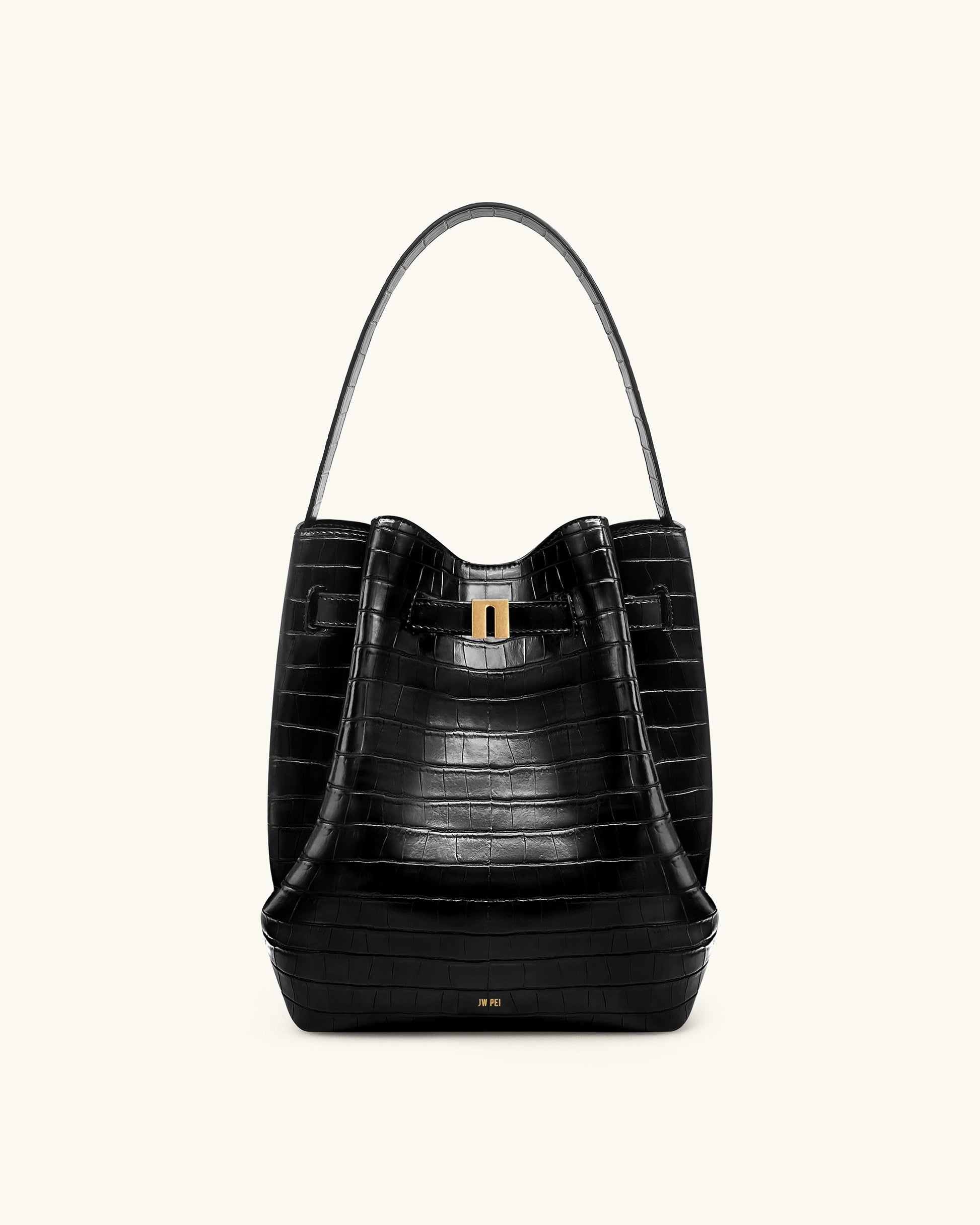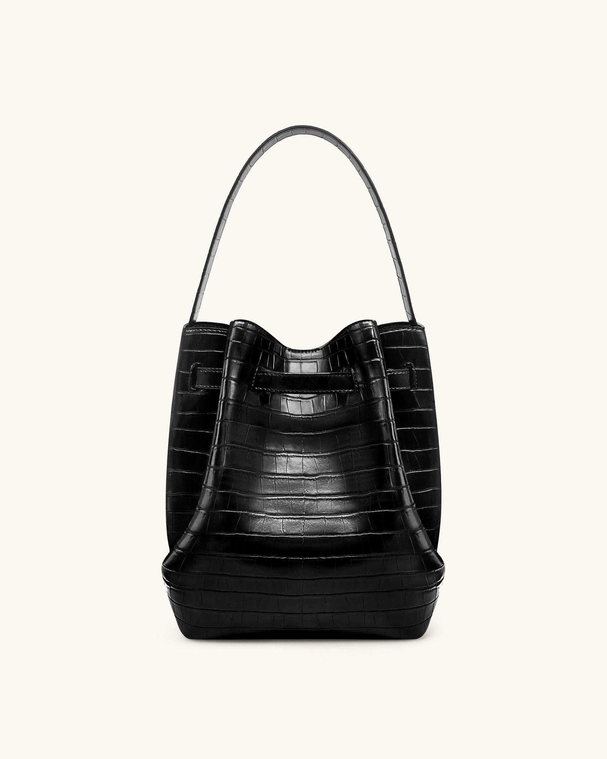 Clara ロックアクセント バケットショルダーバッグ - ブラッククロコ