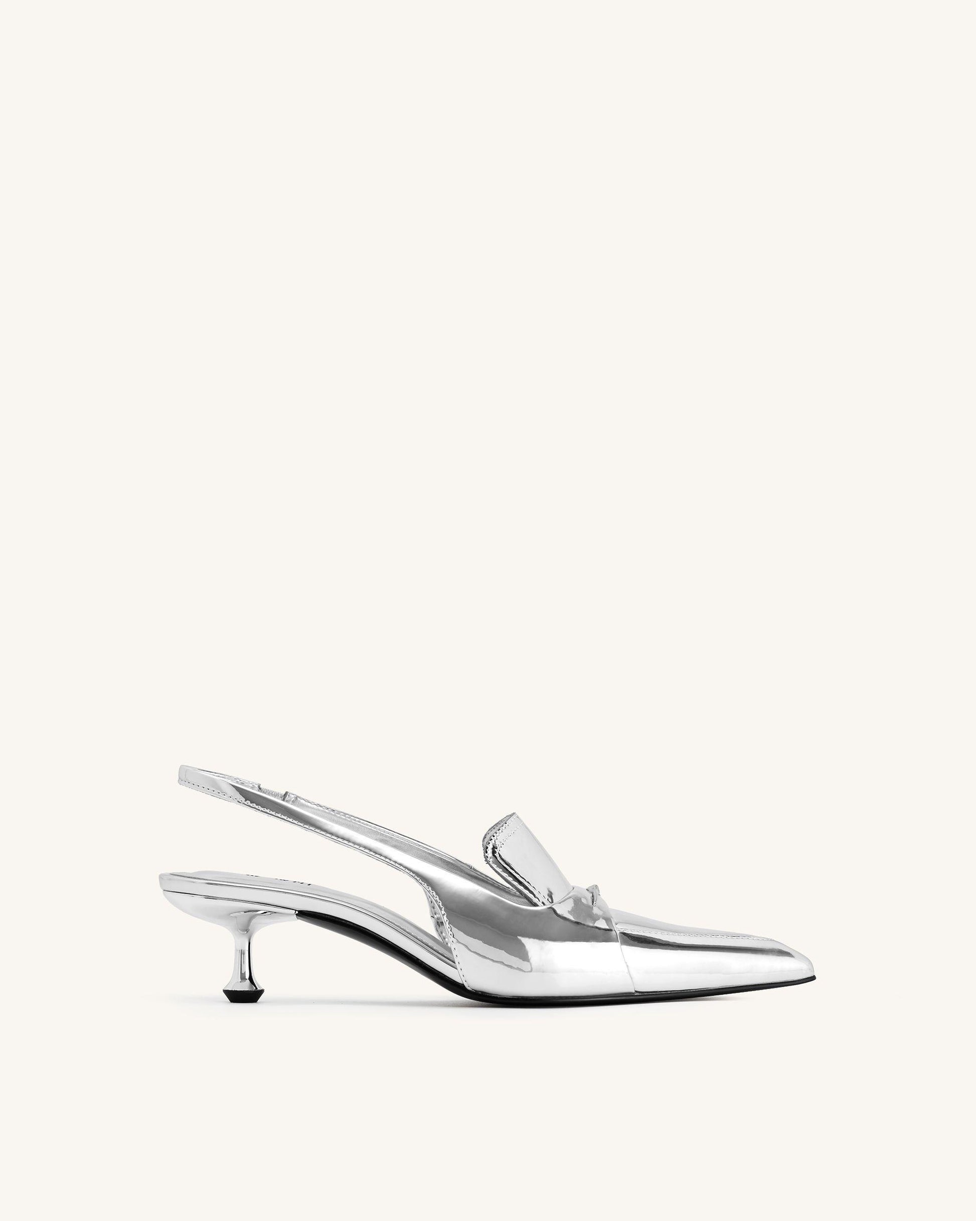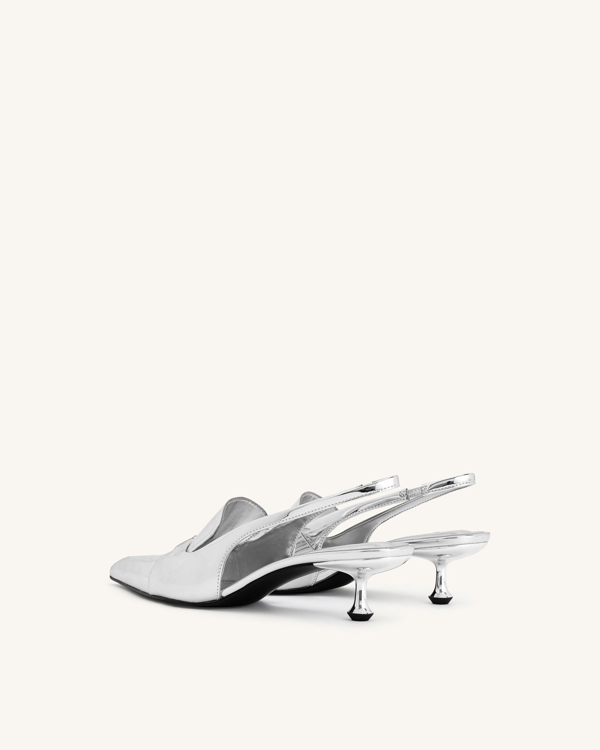 Carla メタリック キトゥン ヒール パンプス - シルバー