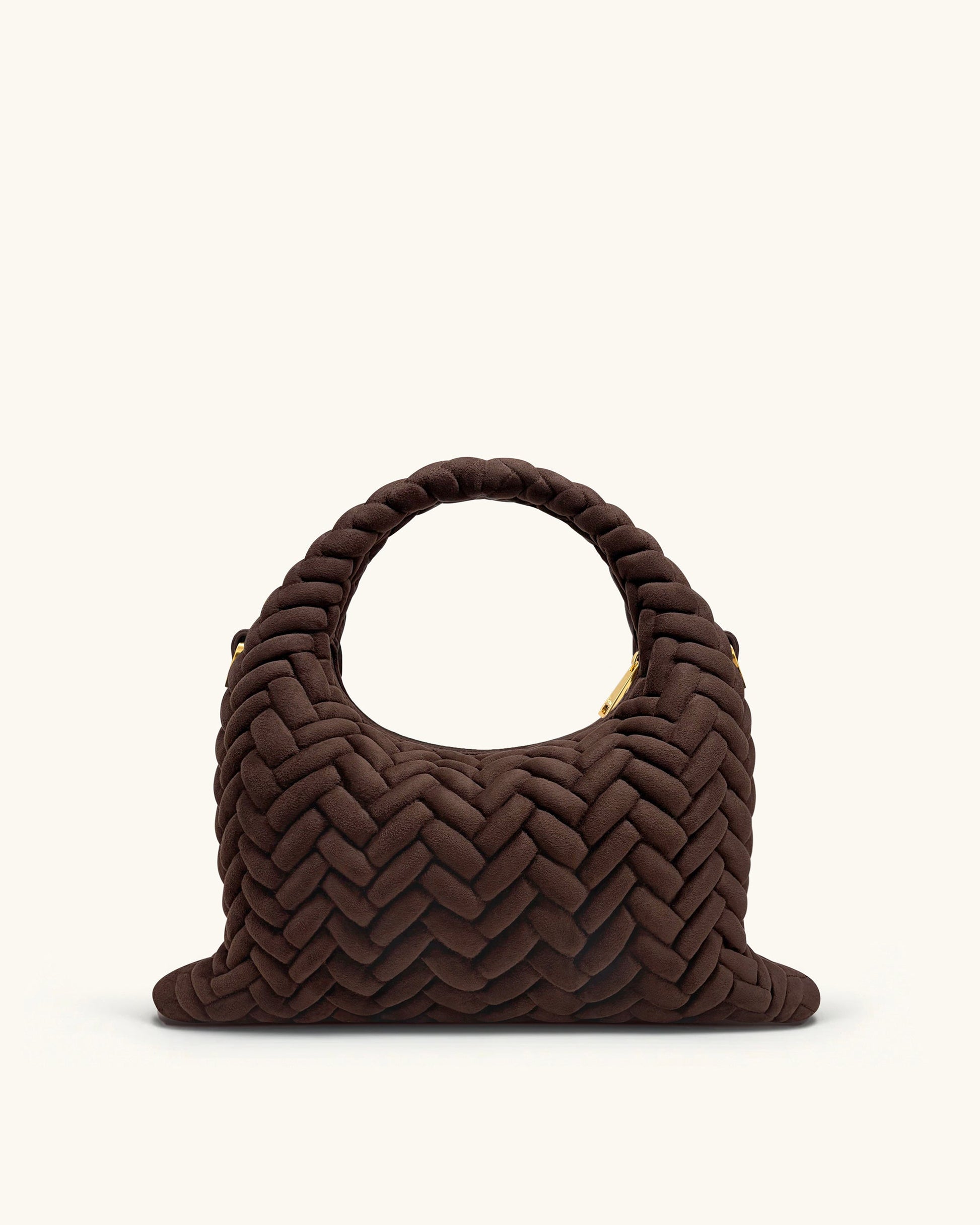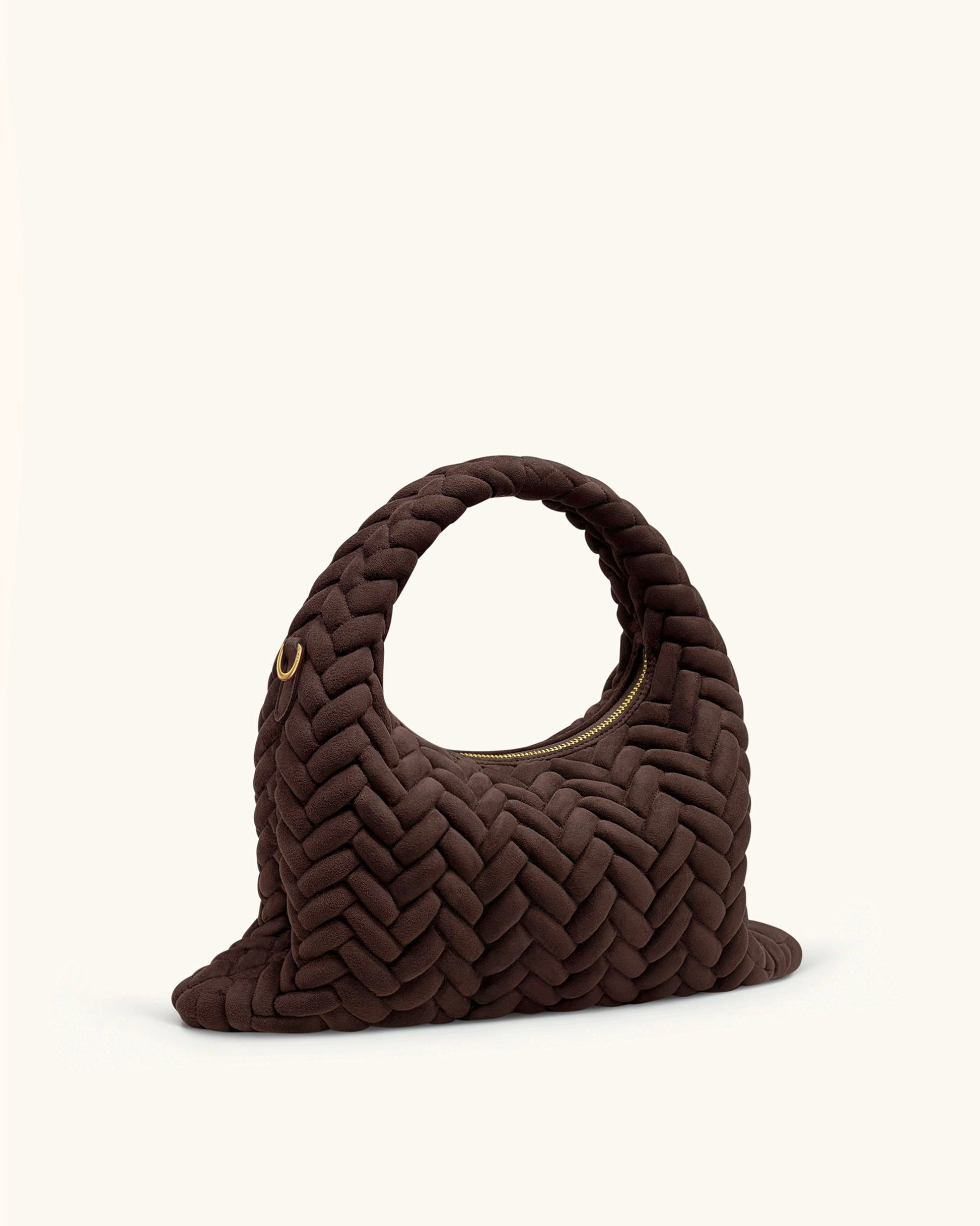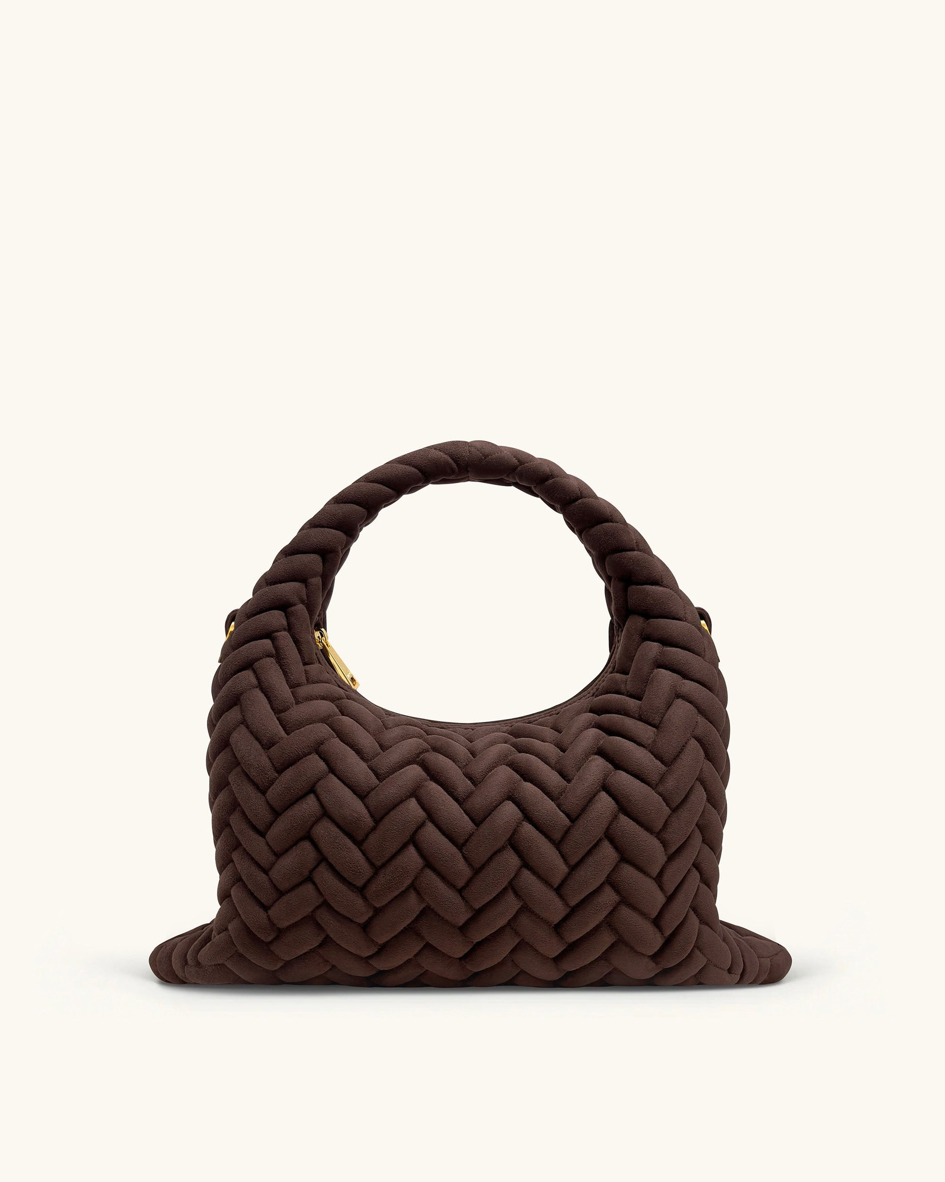 Cora フェイクスエード キルティングハンドルバッグ - ダークブラウン
