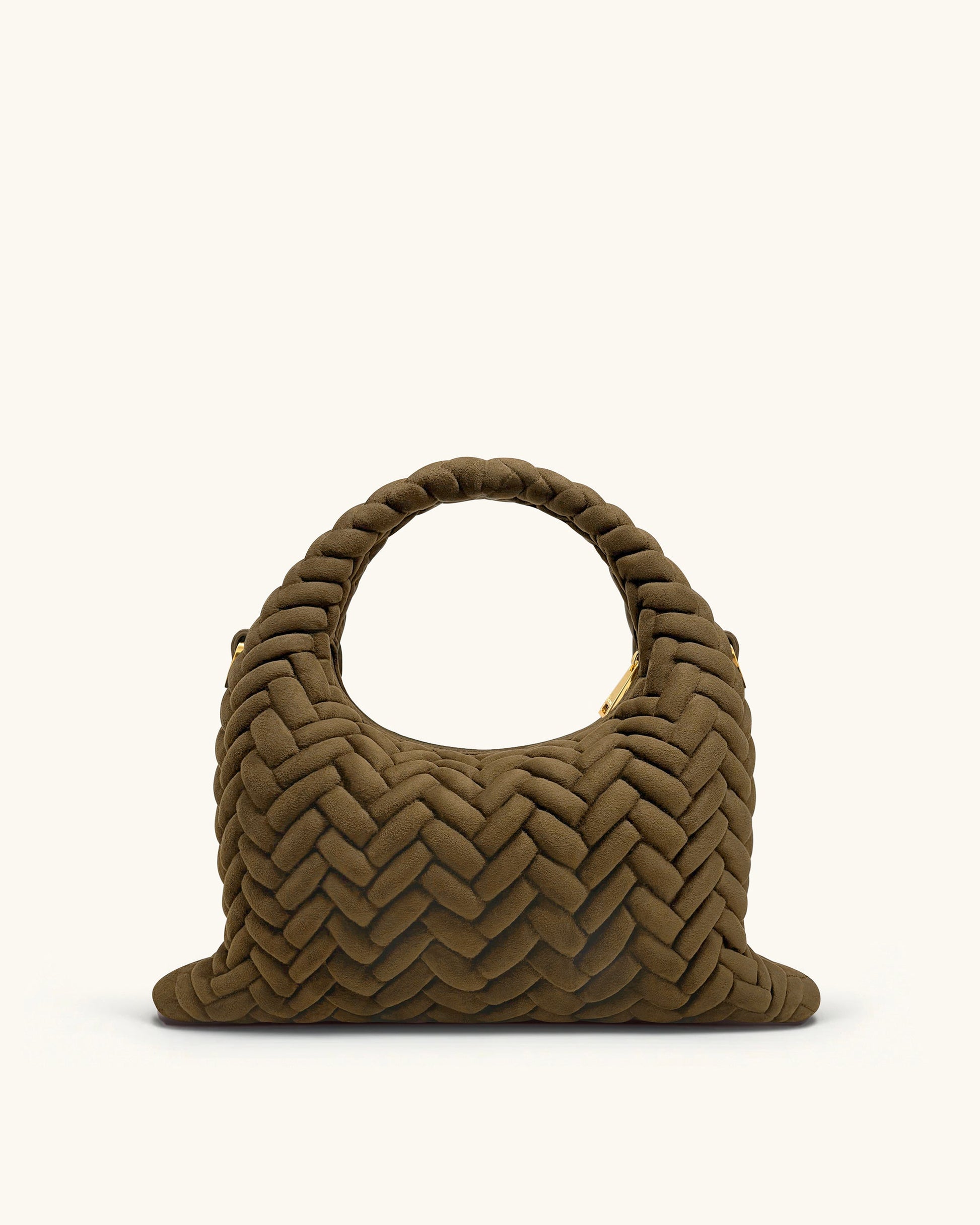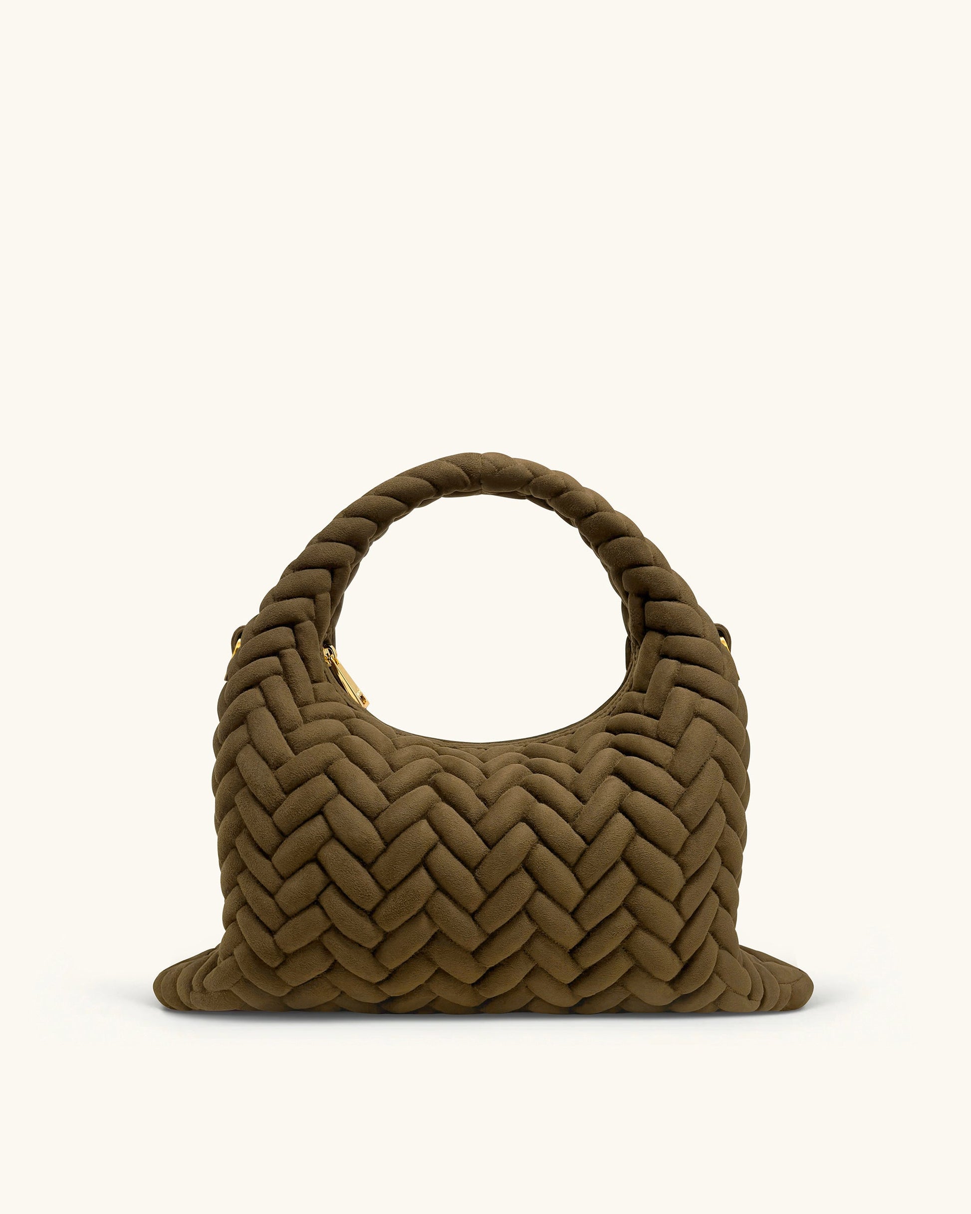 Cora フェイクスエード キルティングハンドルバッグ - オリーブグリーン