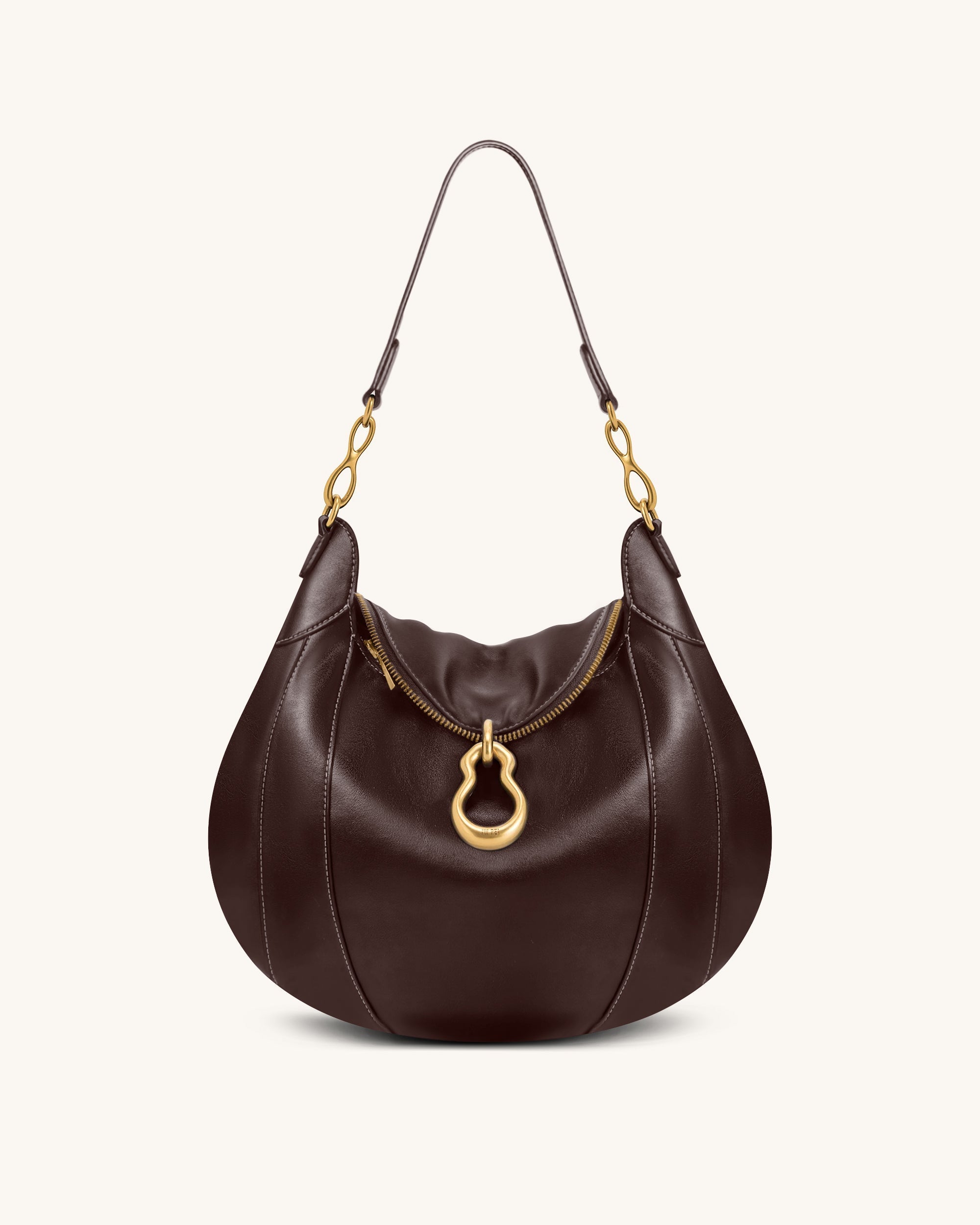 Daria メタルペンダント装飾 ショルダーバッグ - ダークブラウン