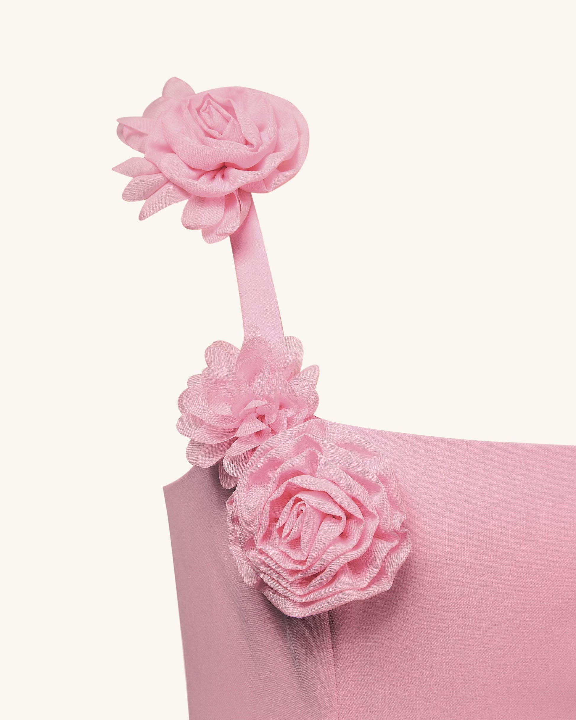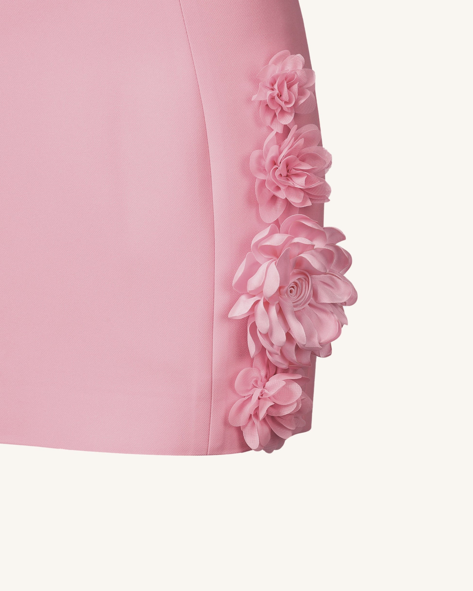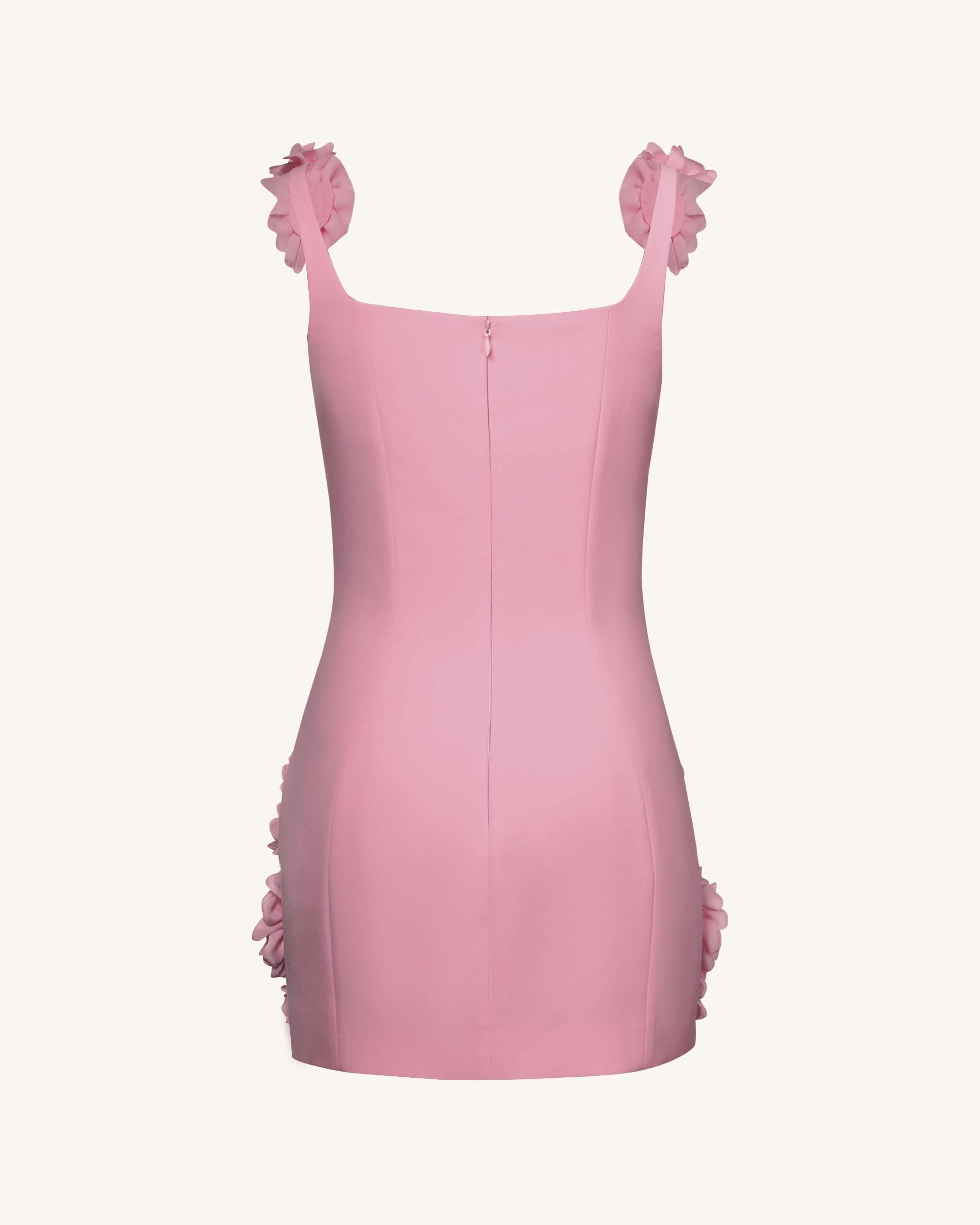 Elaina ピンクのロゼットアップリケミニドレス-ピンク