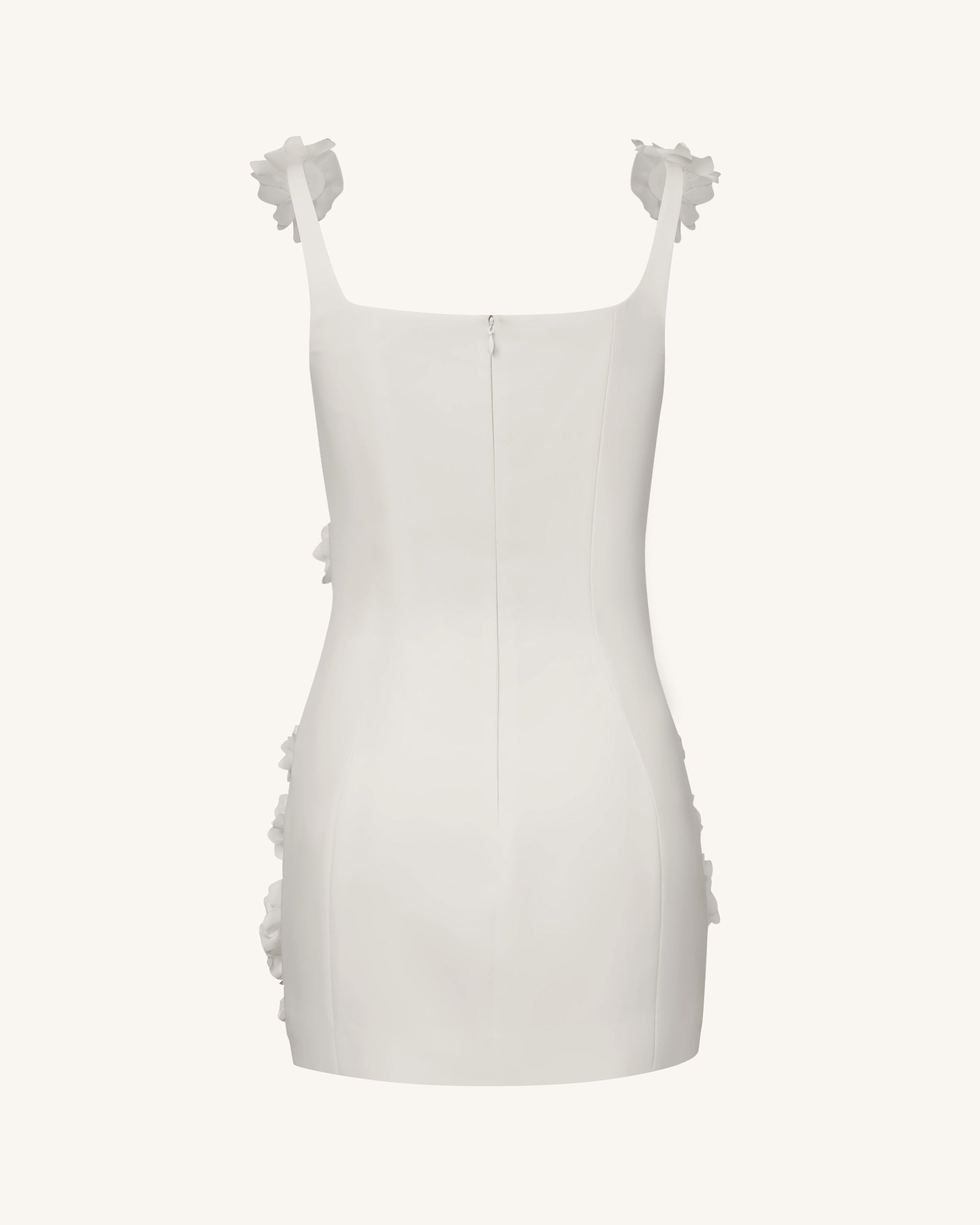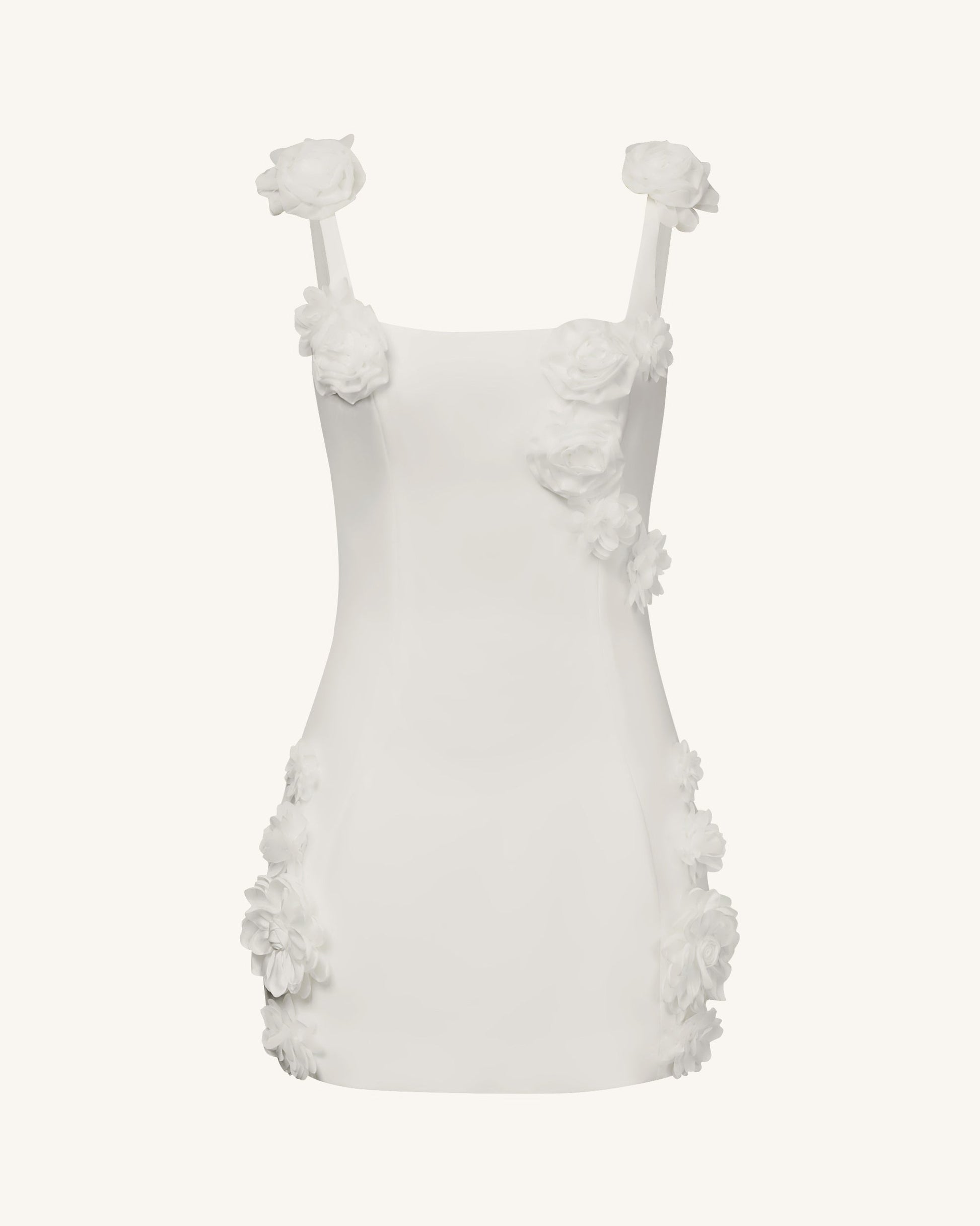 Elaina ホワイトロゼットアップリケミニドレス - ホワイト