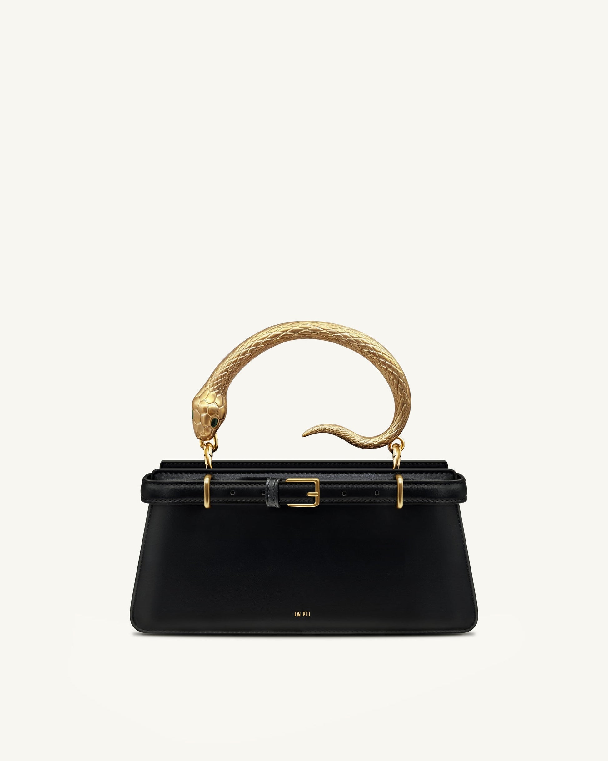 Elena スネークハンドル トップハンドルバッグ - ブラック
