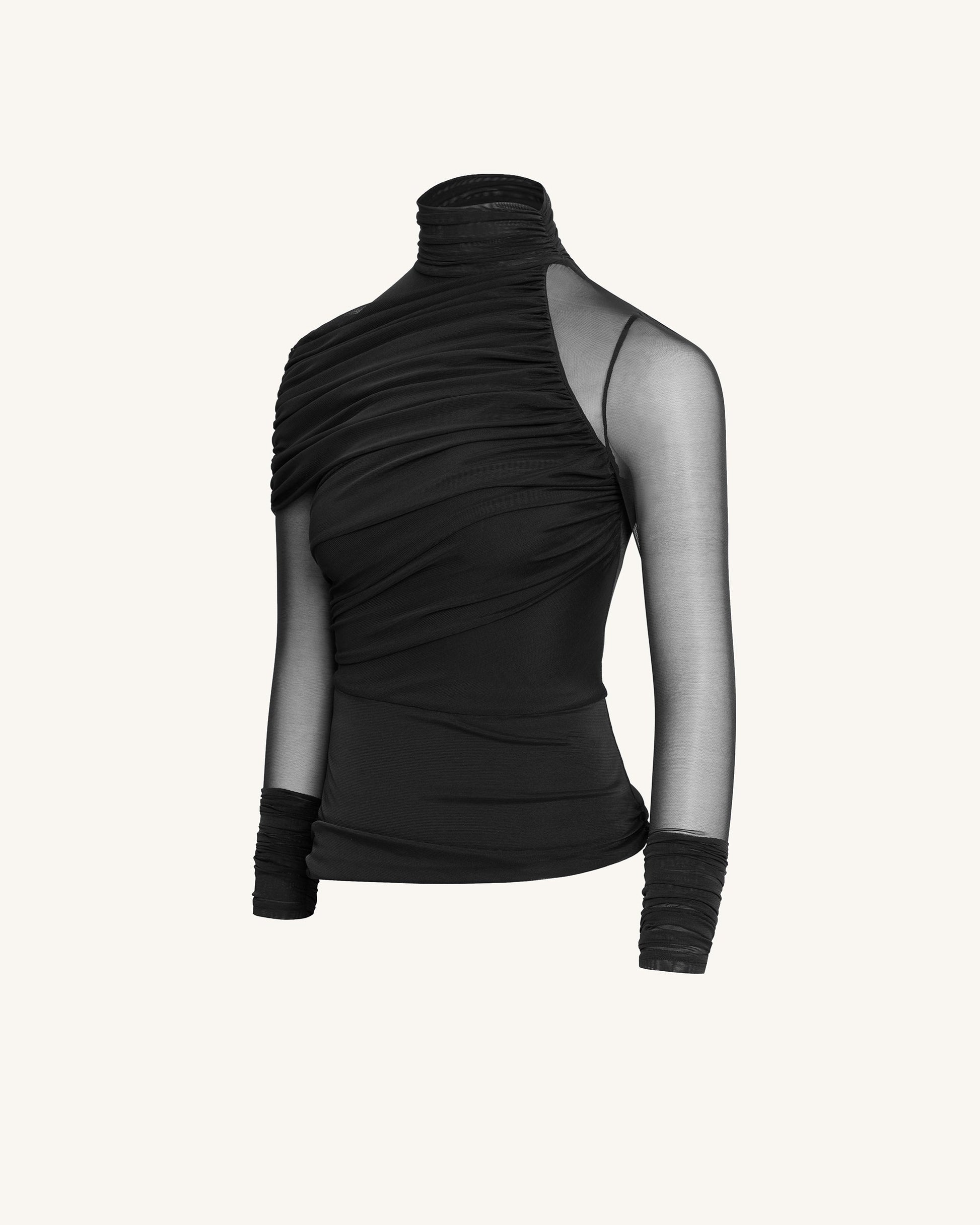 Ella シアー・ルーシュド・タートルネック・トップ - ブラック