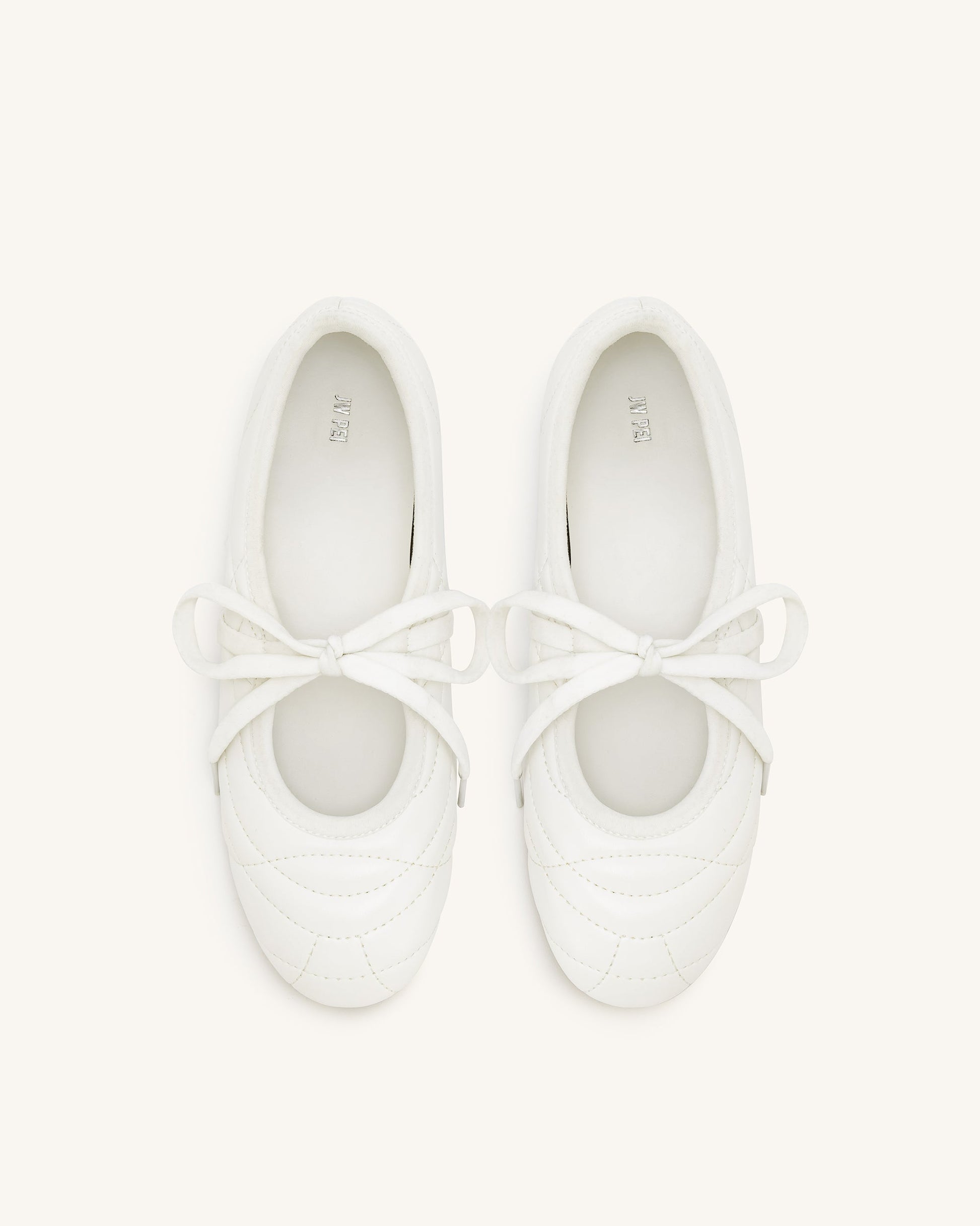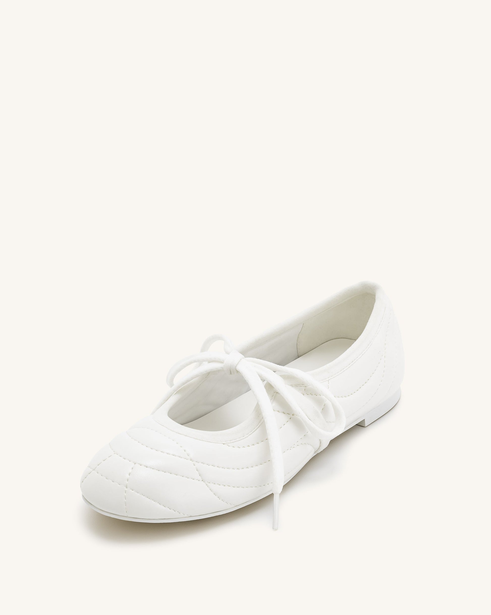 Erika トップステッチングレースアップバレエフラット - ホワイト