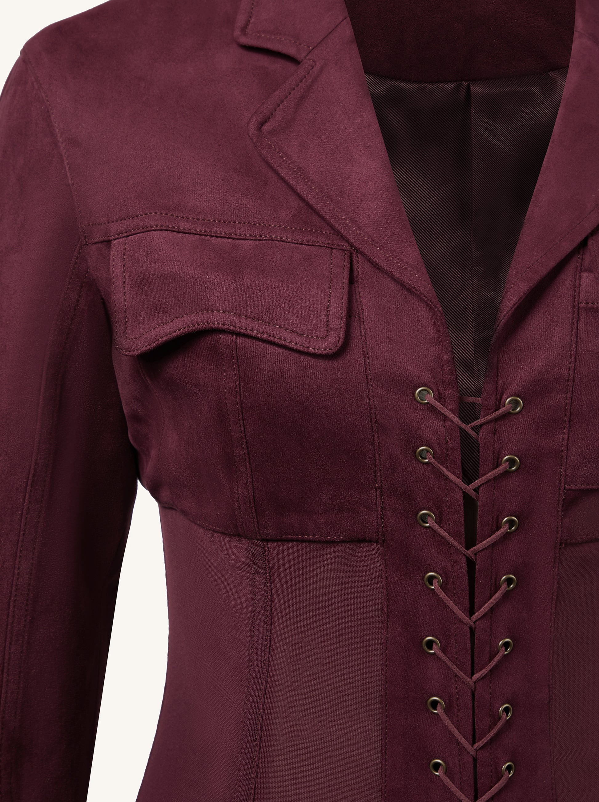 フェイクスエードコルセットジャケットミニドレス - クラレット