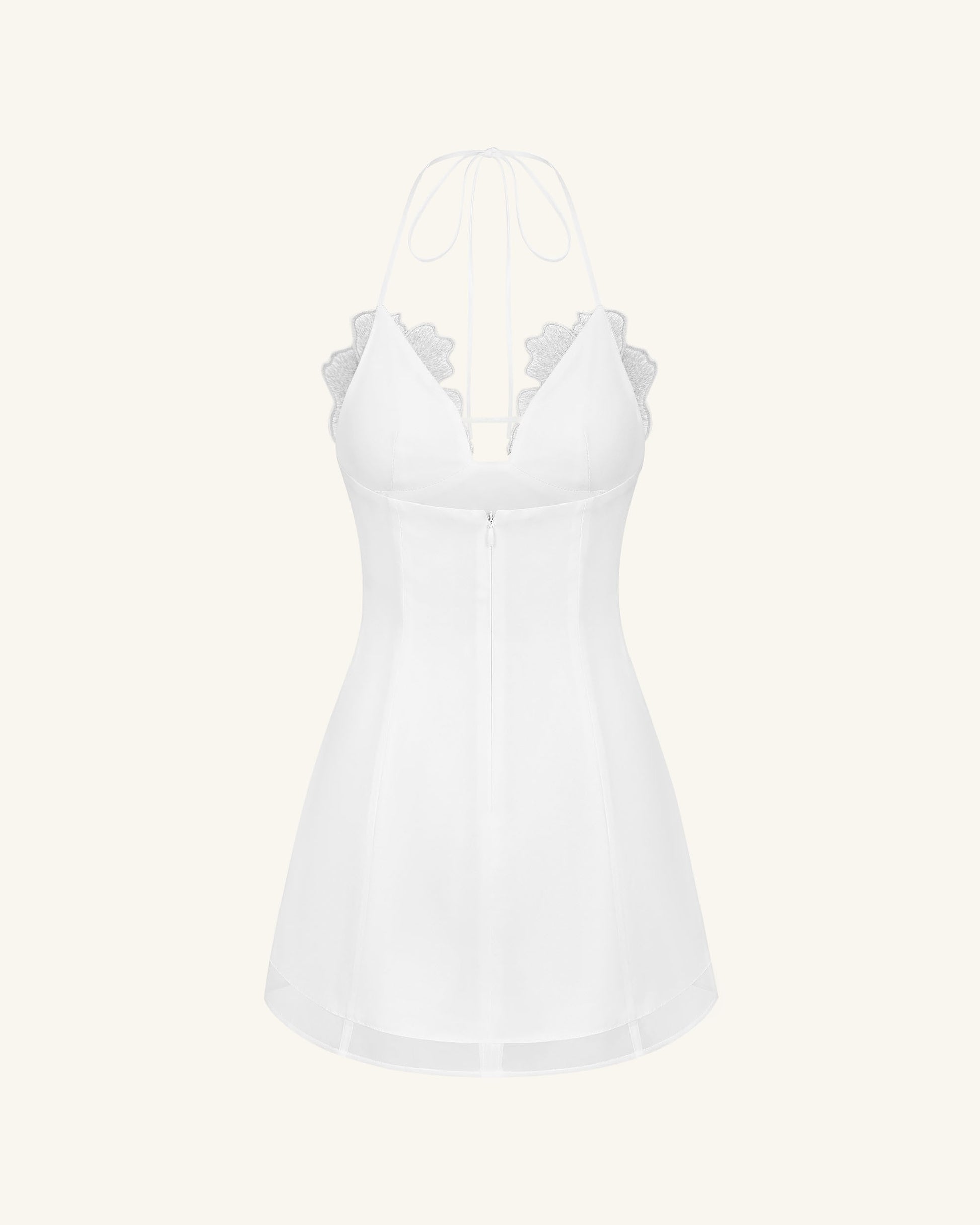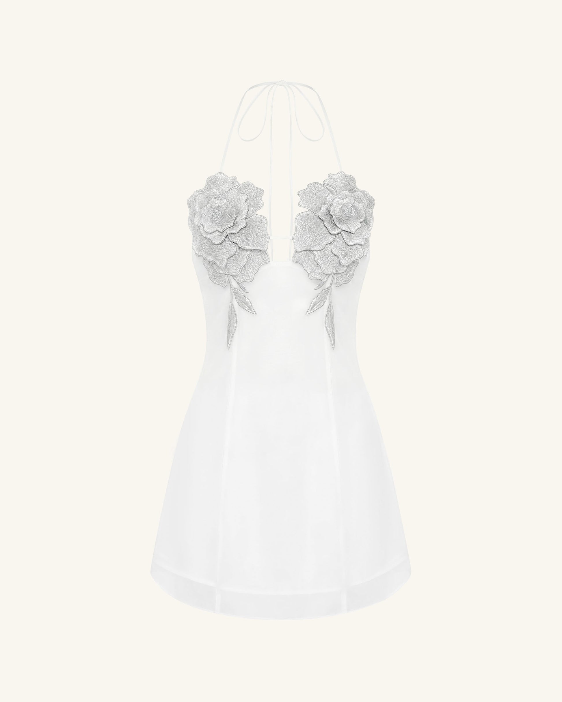 花刺繍ミニドレス - ホワイト