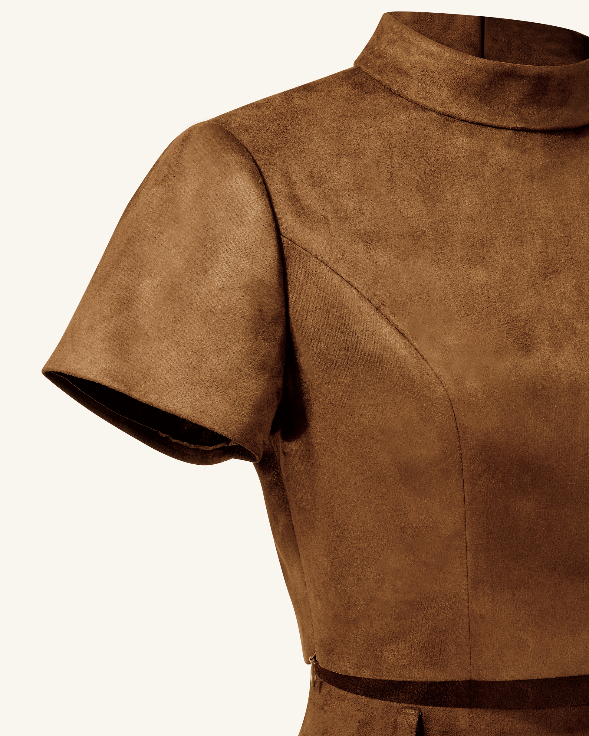 Grace フェイクスエード クロップトップ&ミニスカートセット - キャメル