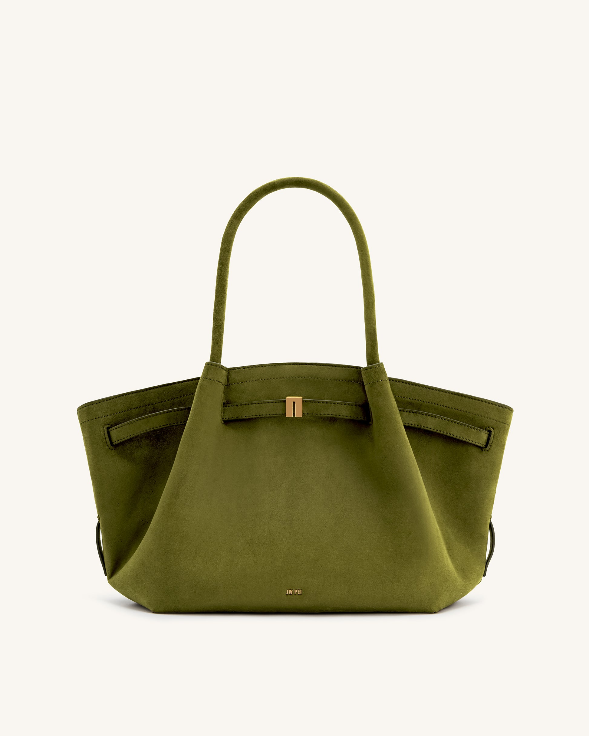 Hana ミディアムフェイクスエードトートバッグ - ダークオリーブ