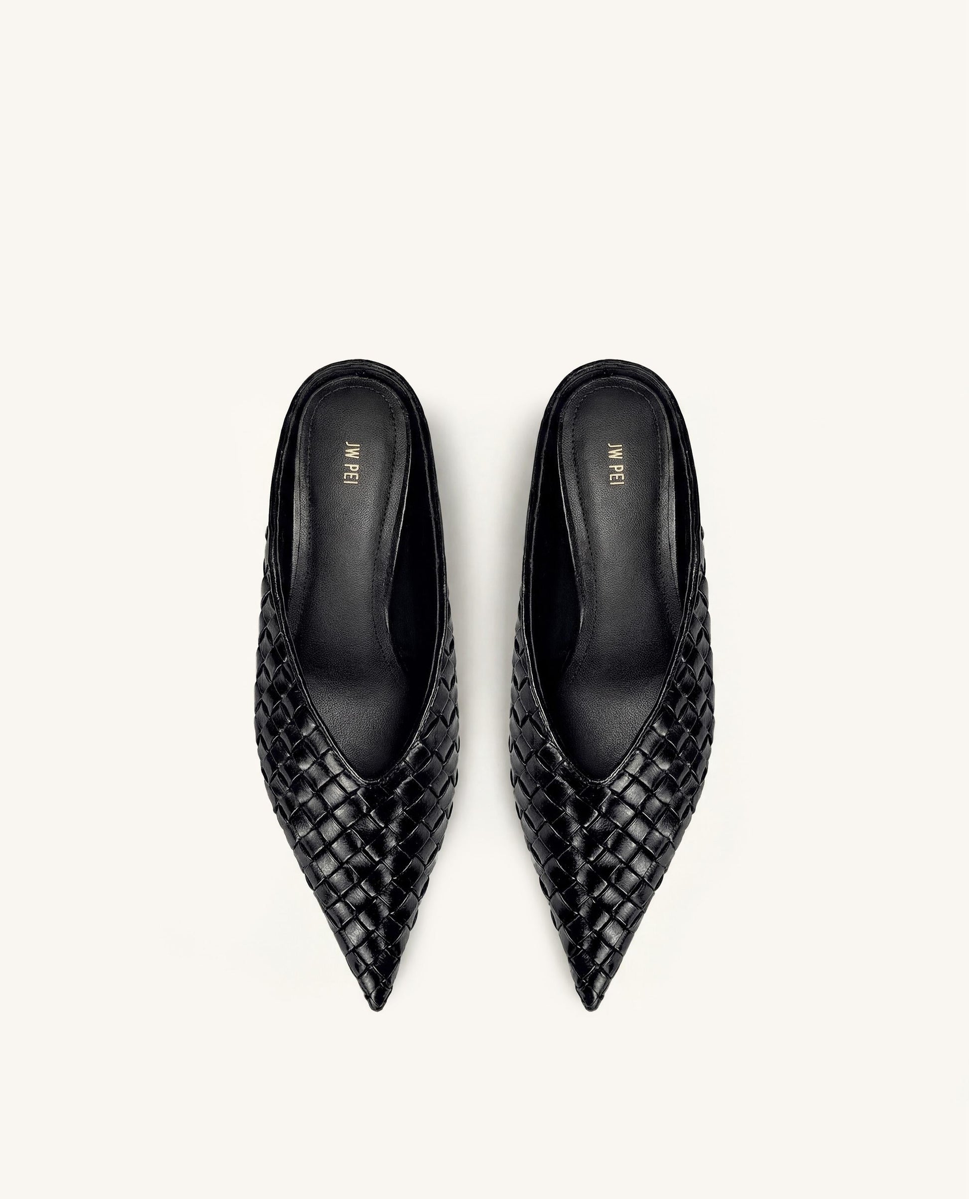Helena ウーブンテクスチャード ポインテッドトゥ ミュール - ブラック