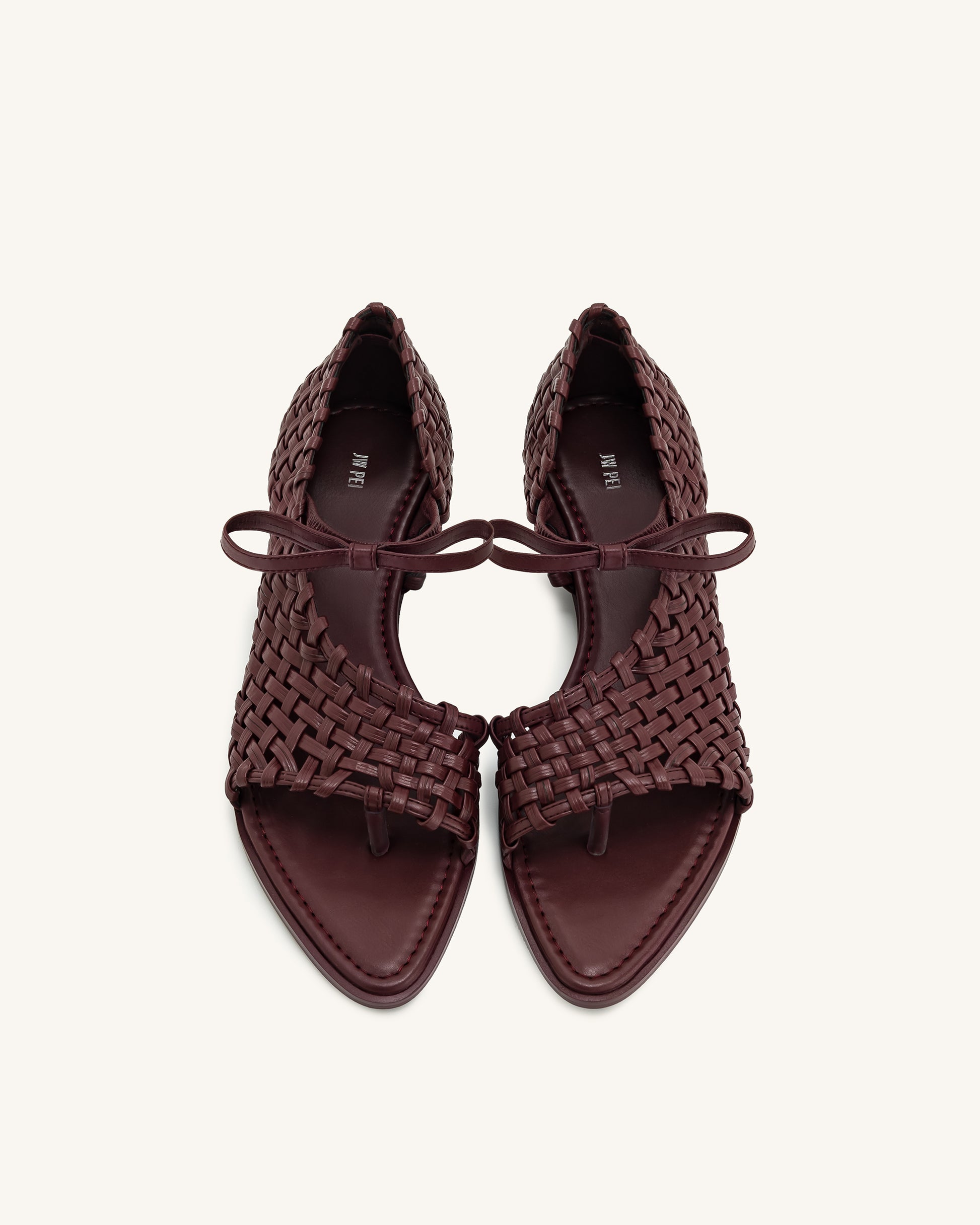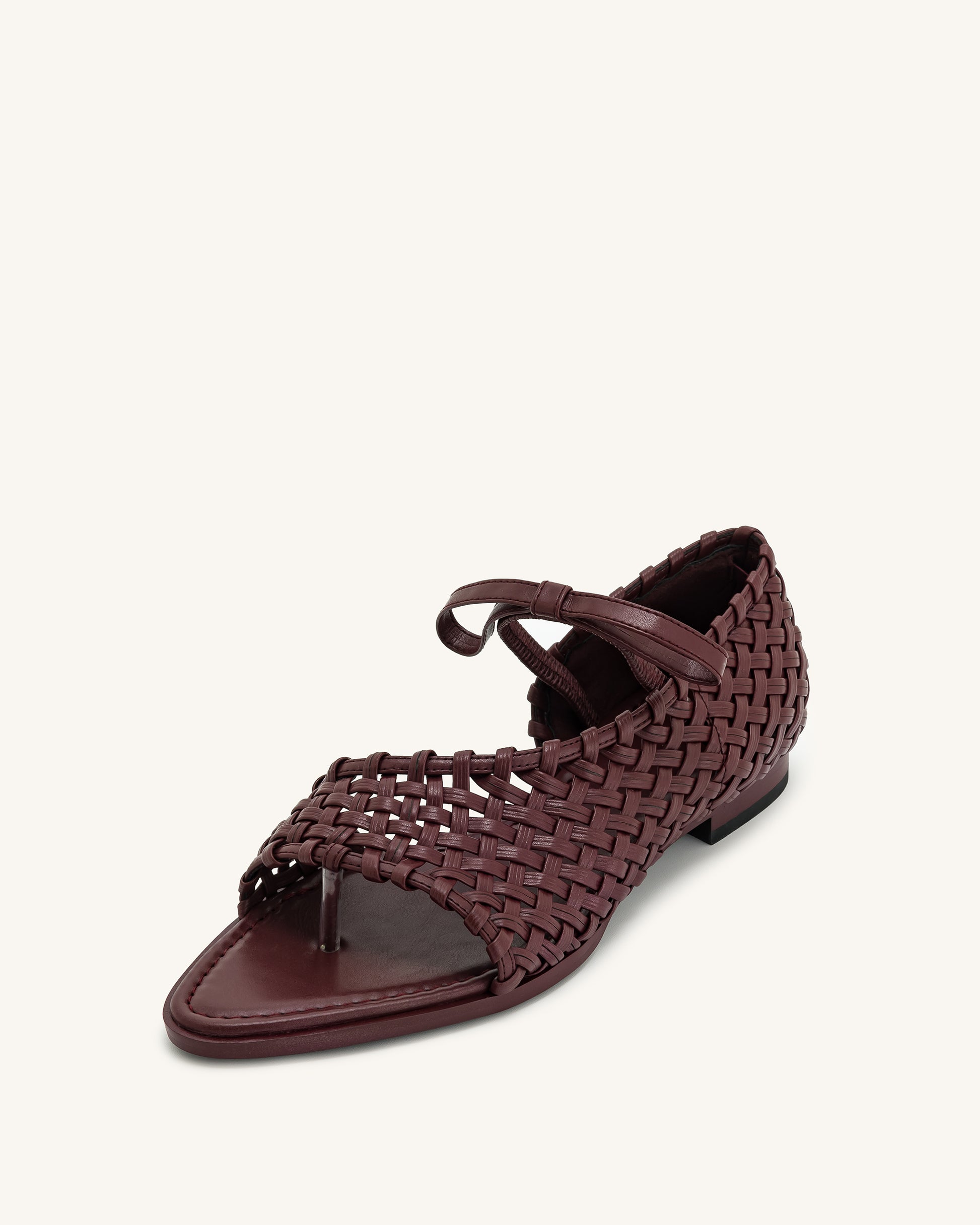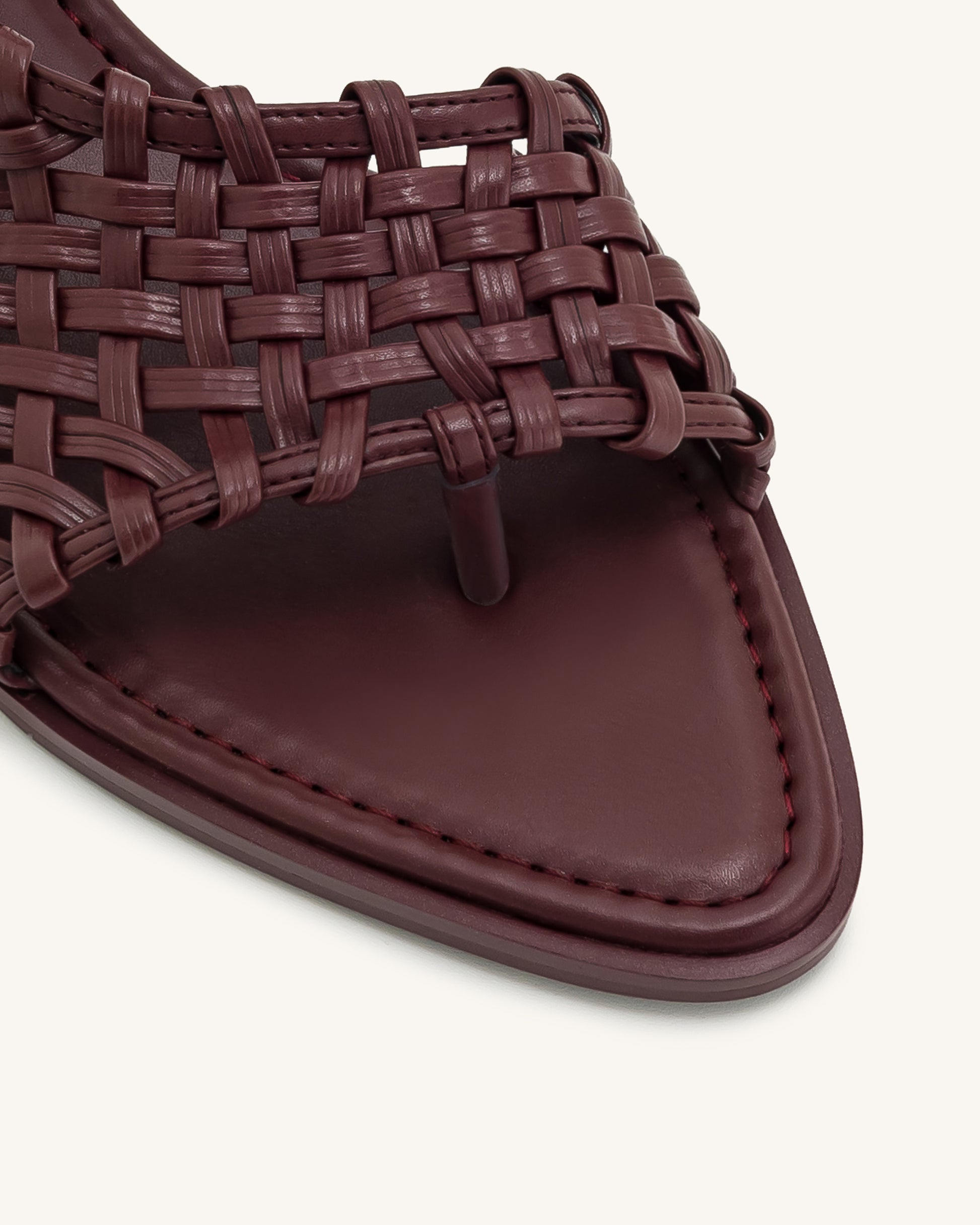 Jocelyn 編み込みストラップのフリップフロップ - クラレットレッド