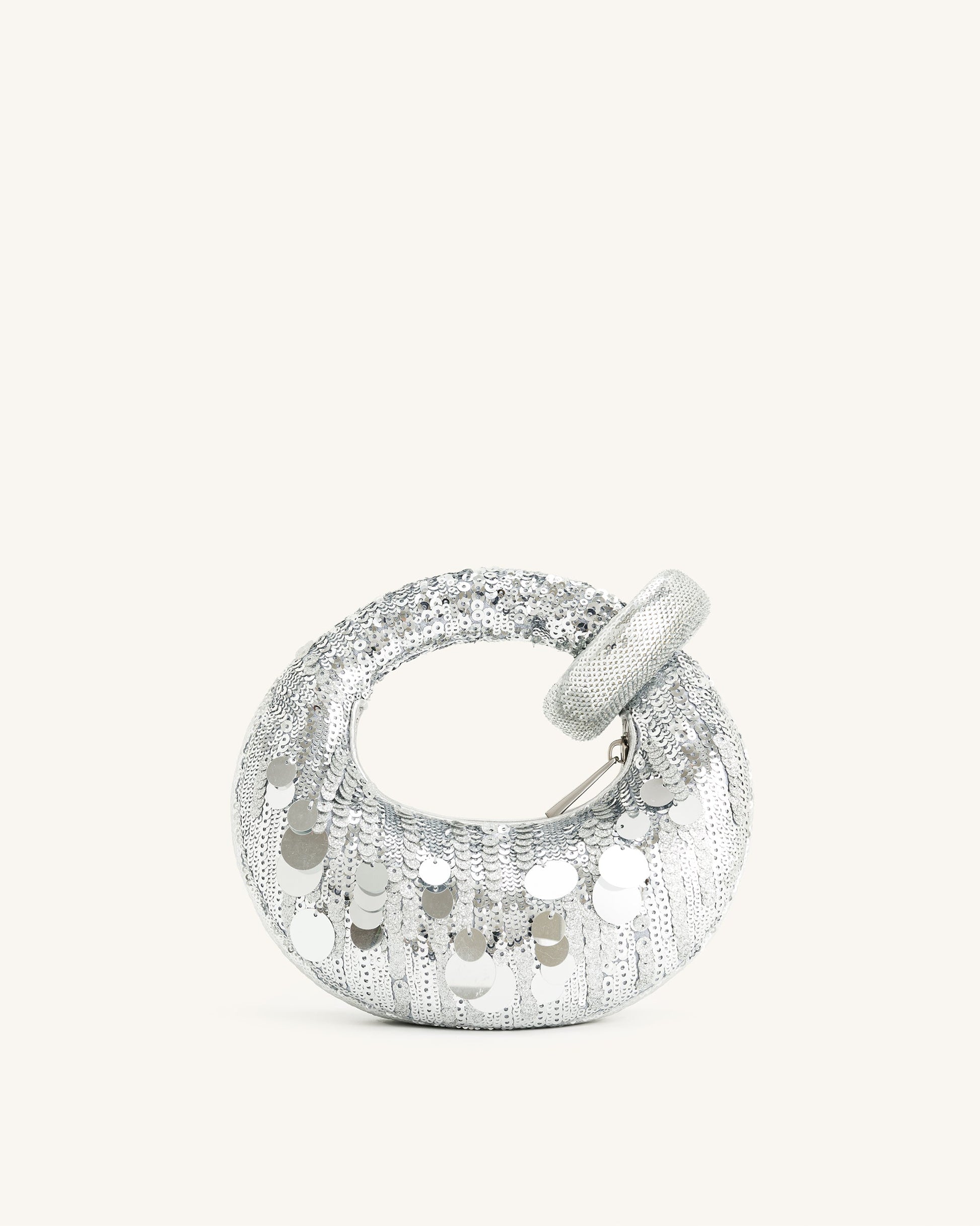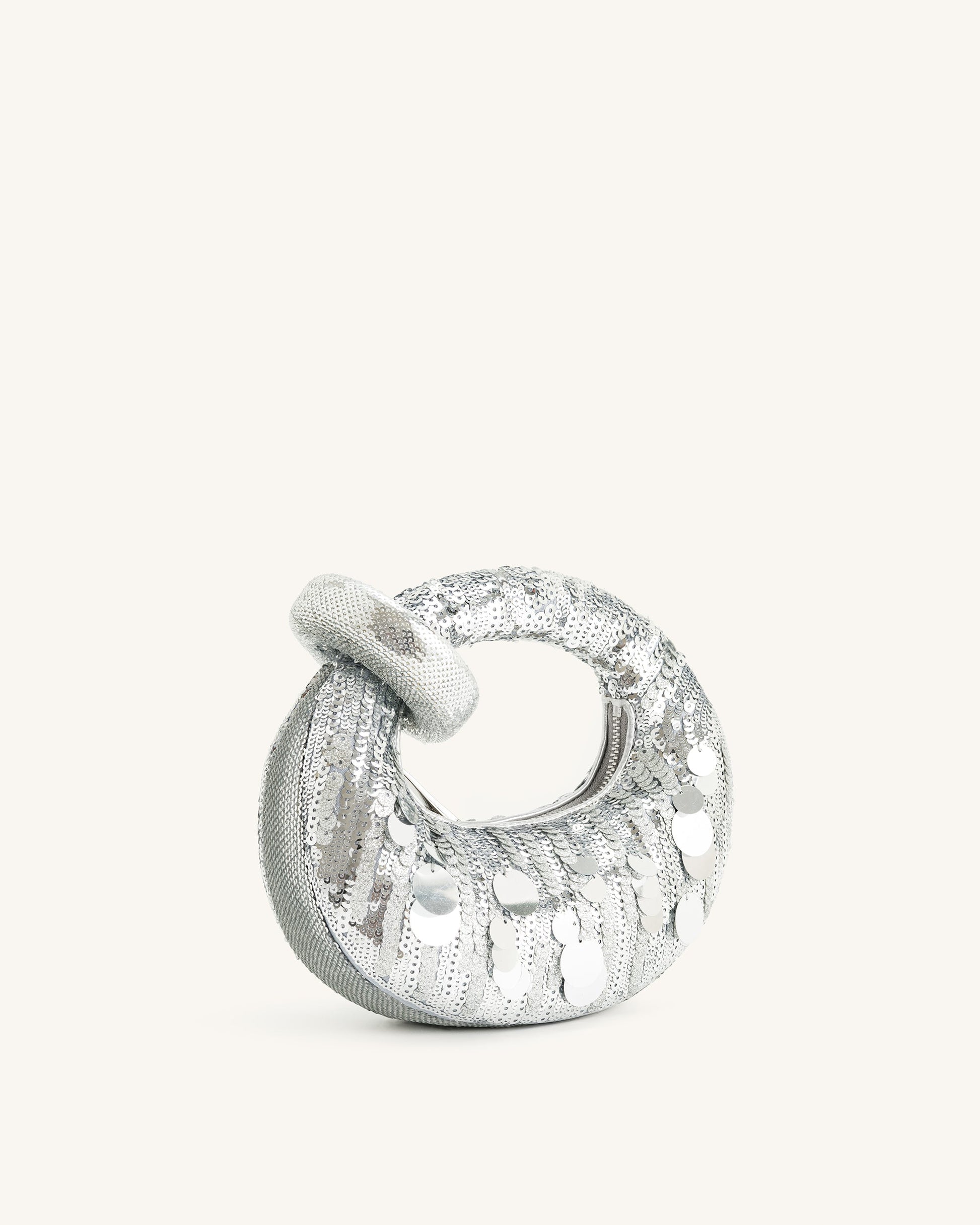 Abacus メタリック スパンコール ミニ トップ ハンドル バッグ - シルバー