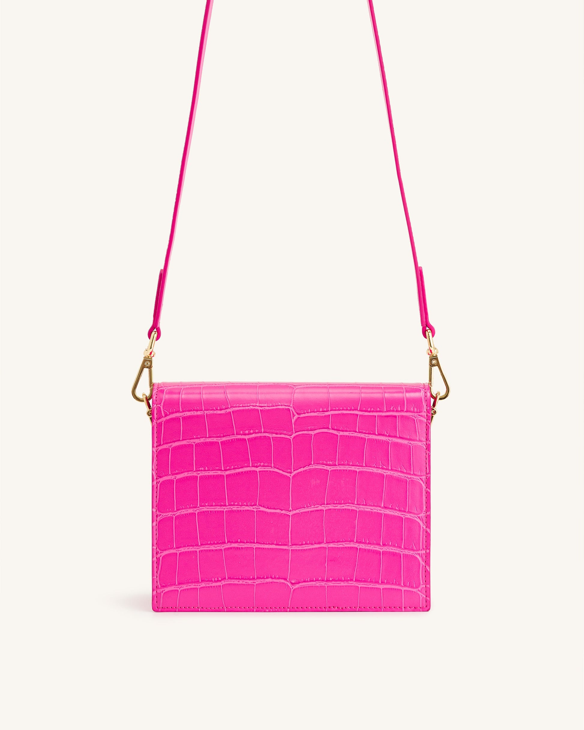 Mini Flapクロスボディバッグ - ホトピンク クロコ型押し