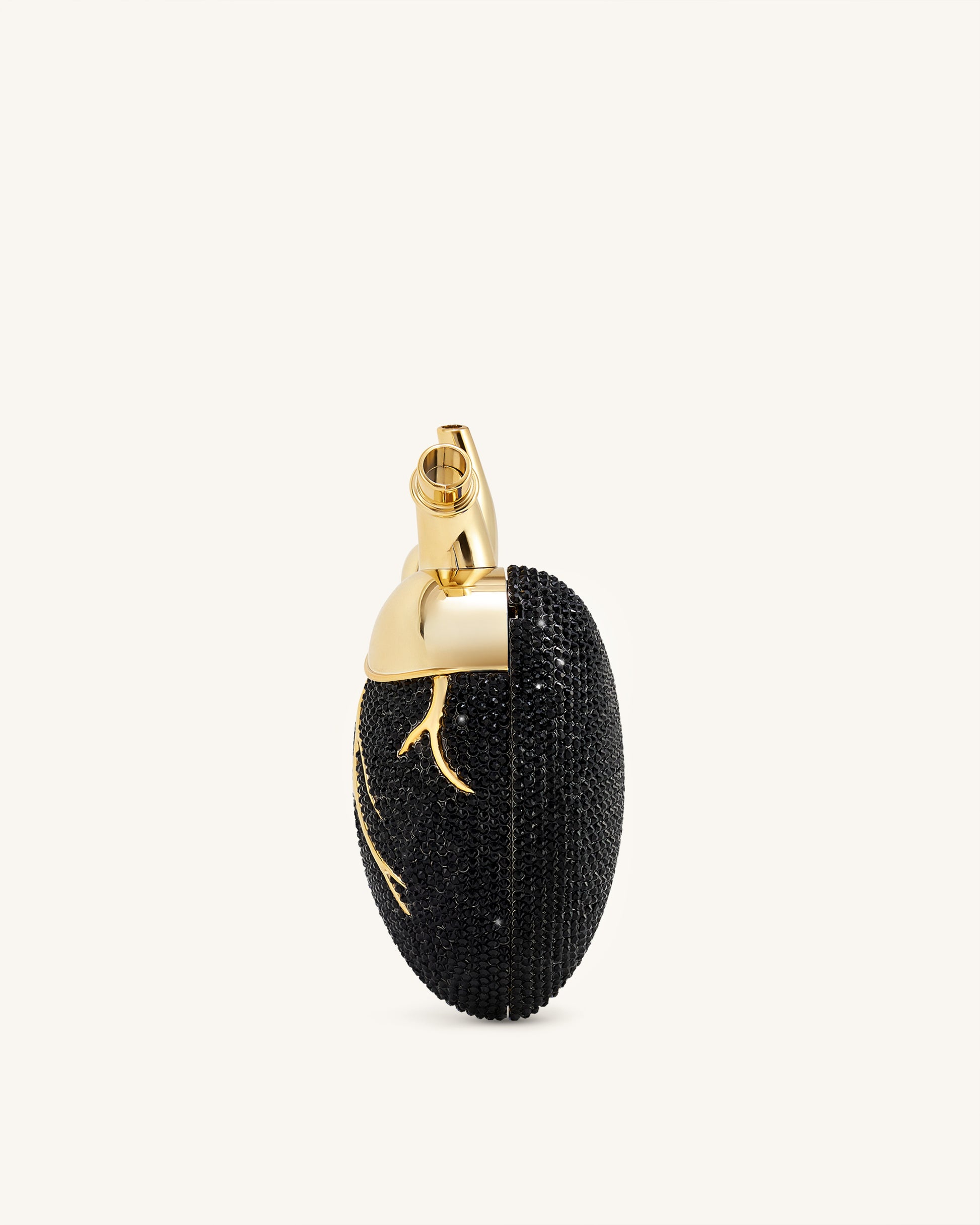 Maren 人工クリスタルハート型バッグ - ブラックゴールド