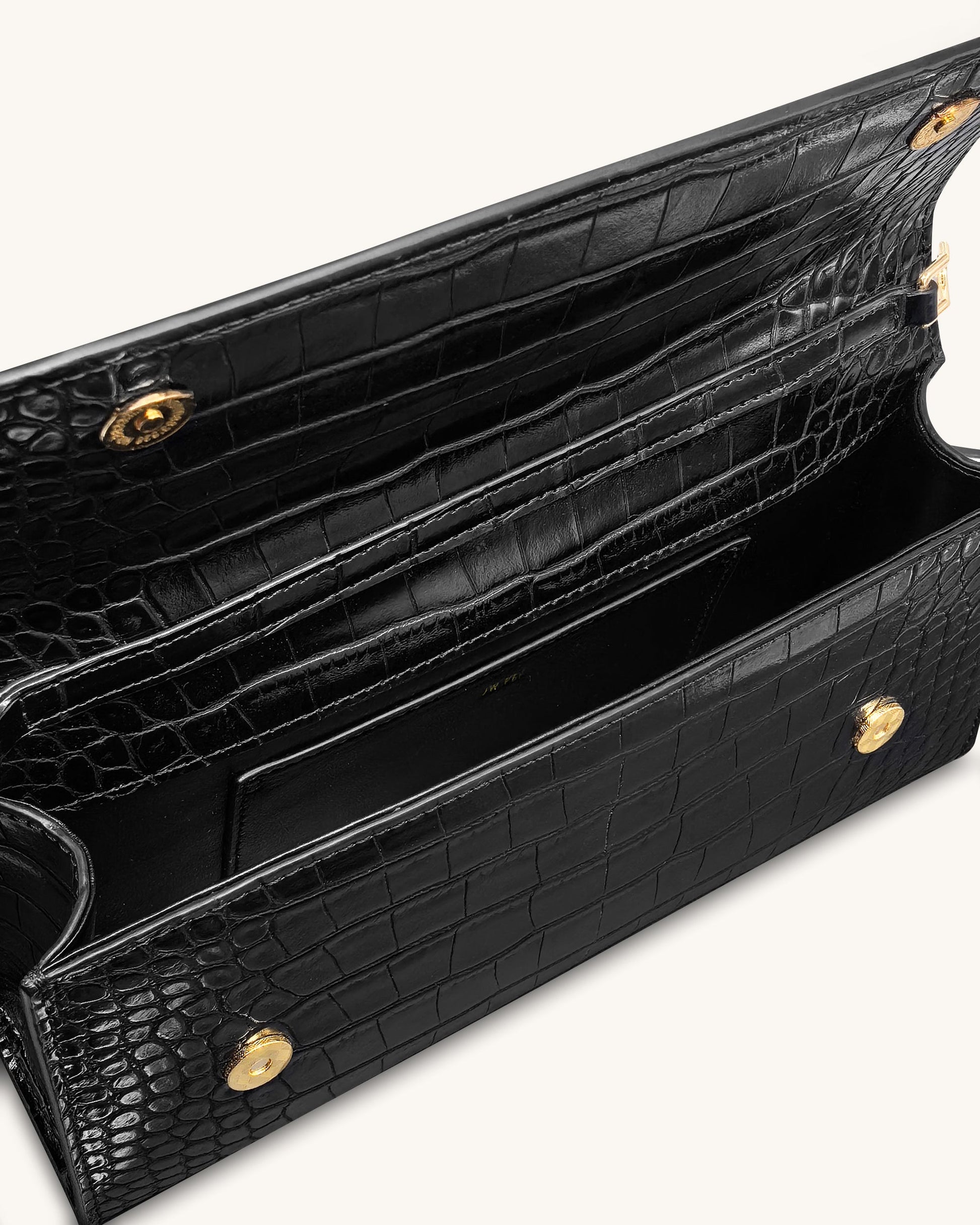 Maya ヒョウ型金具ハンドル トップハンドルバッグ - ブラック クロコ
