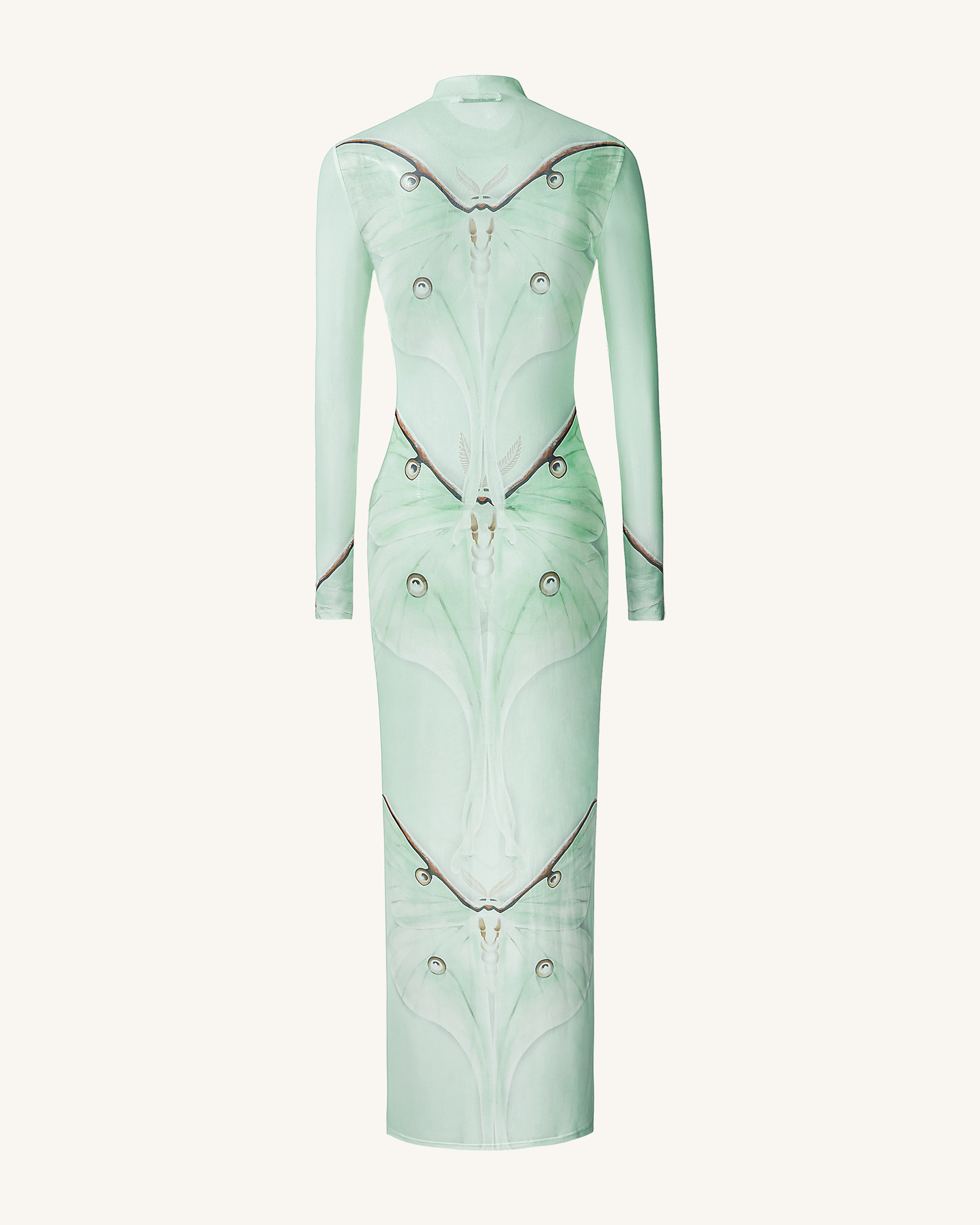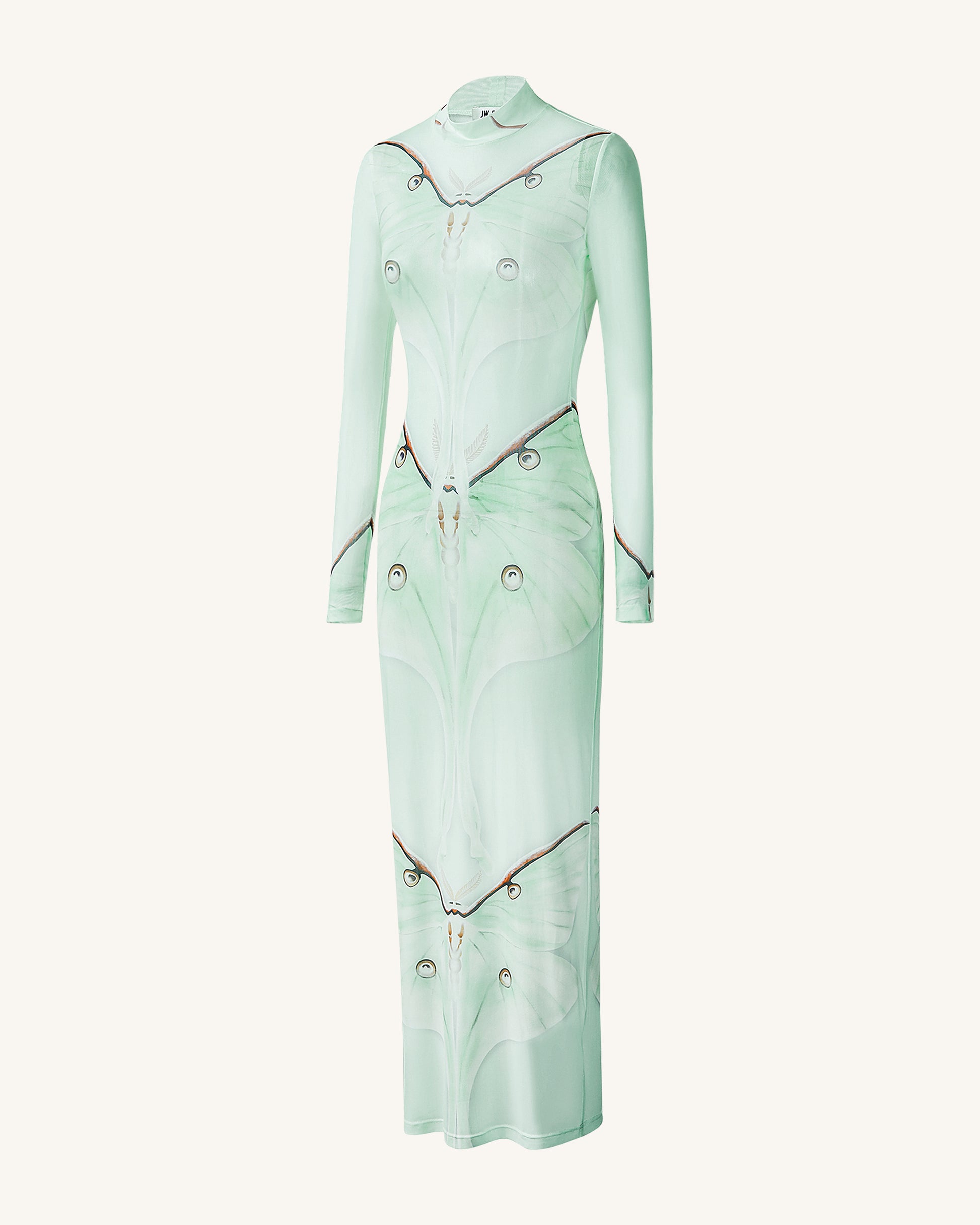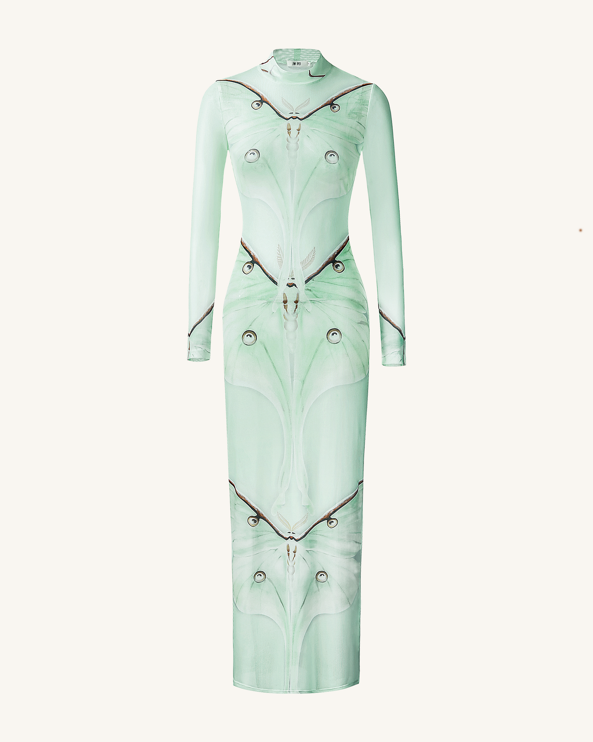 Moth シアーメッシュガウン - グリーン/ベージュ