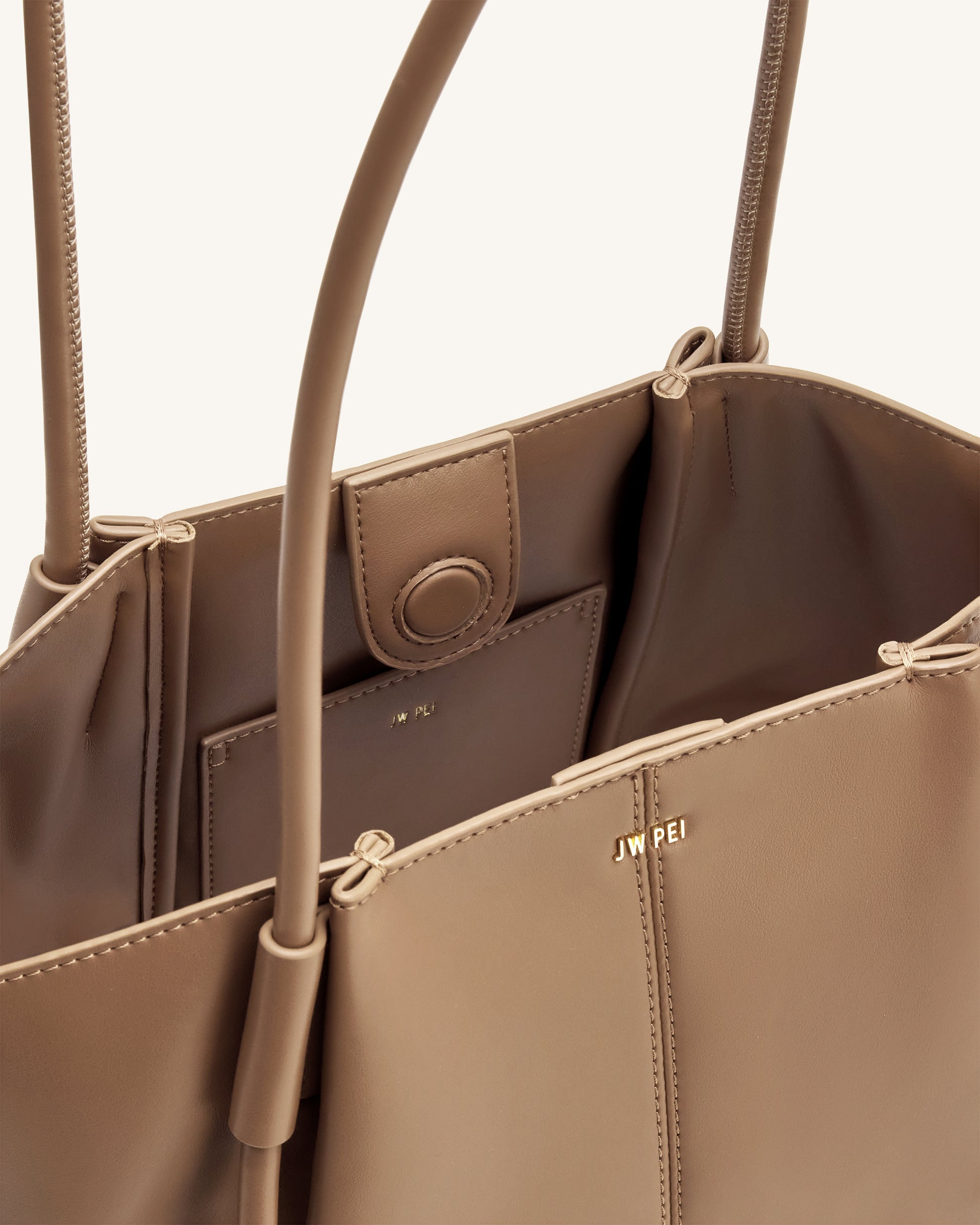 幅広のウイングが特徴的な、ゆったりとしたヴィーガンレザートートバッグ。モダンでミニマルなデザイン。構築的で汎用性が高く、デイリー使いに最適です。