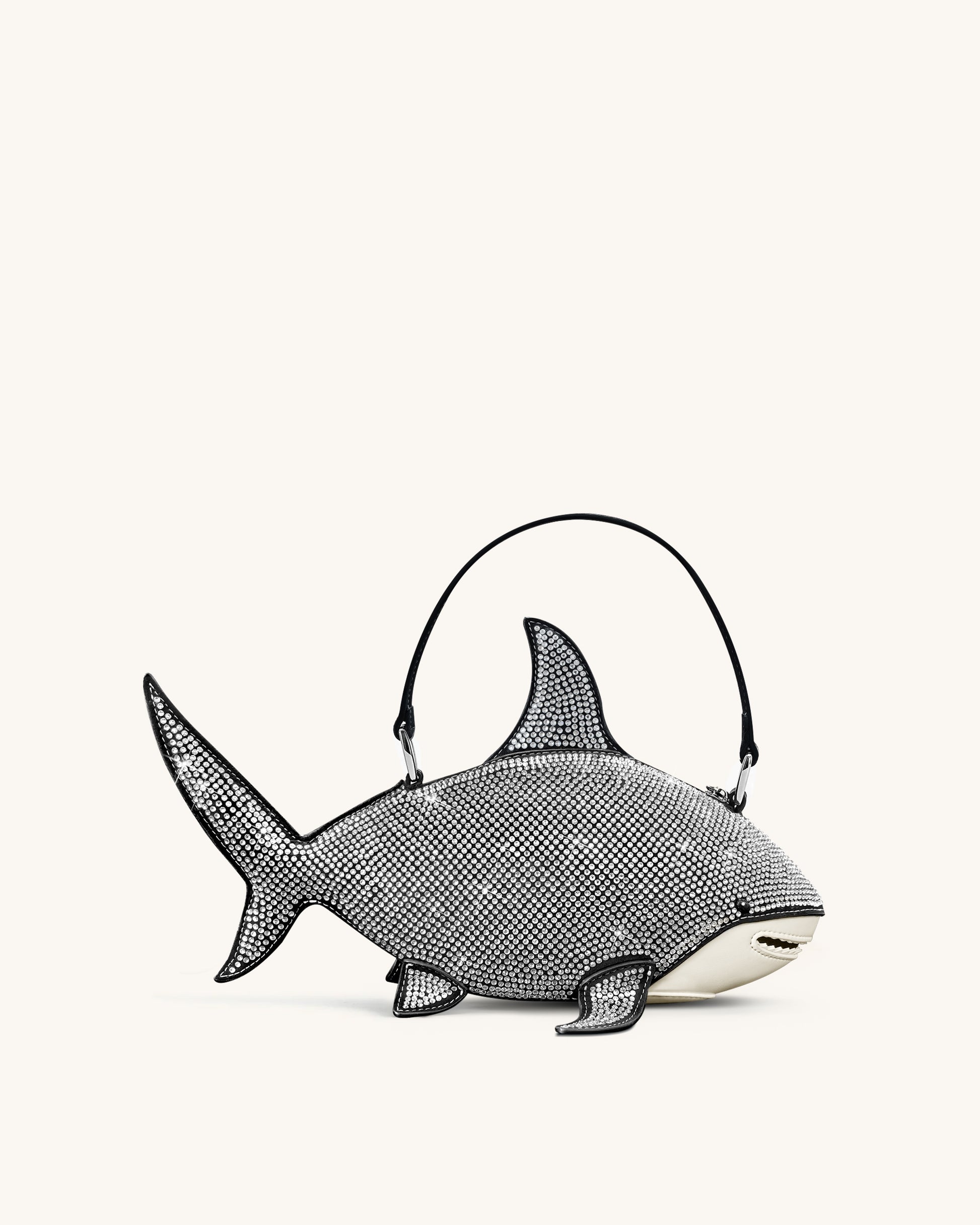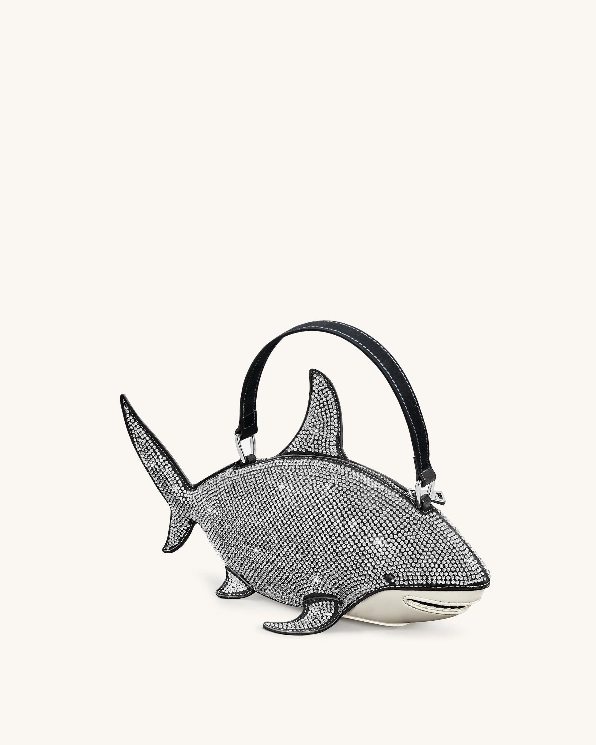 Nerys 人工クリスタルシャーク風トップハンドルバッグ - ブラック
