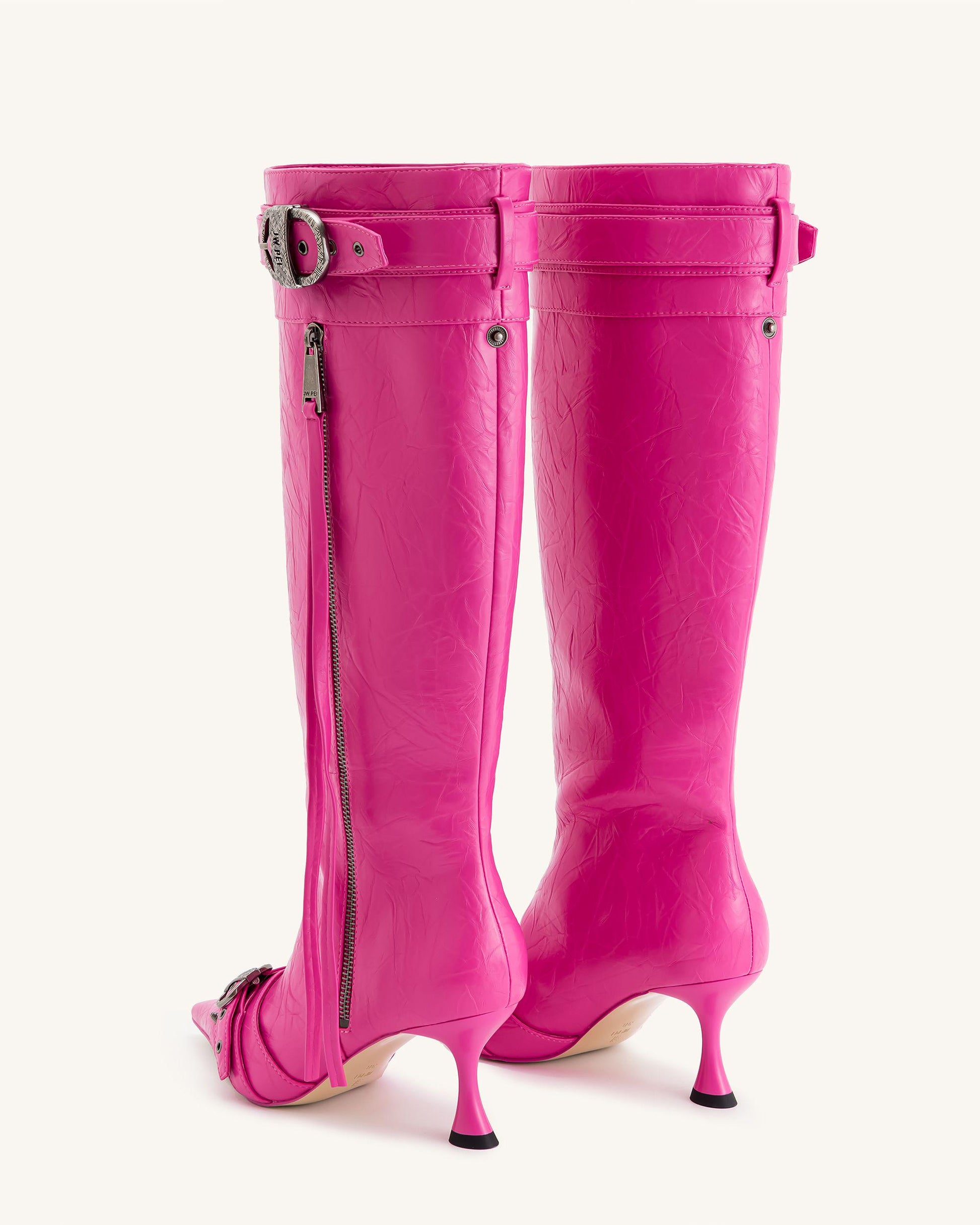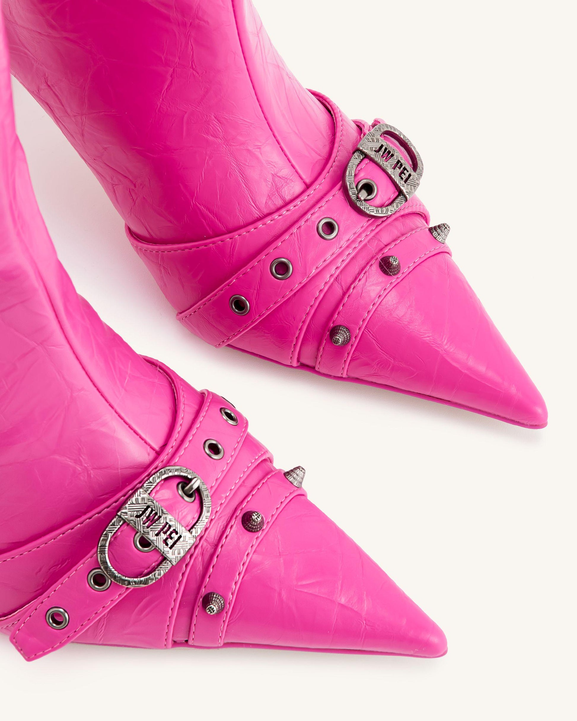 Nico フェイクファー スタッズ ブーツ - ピンク