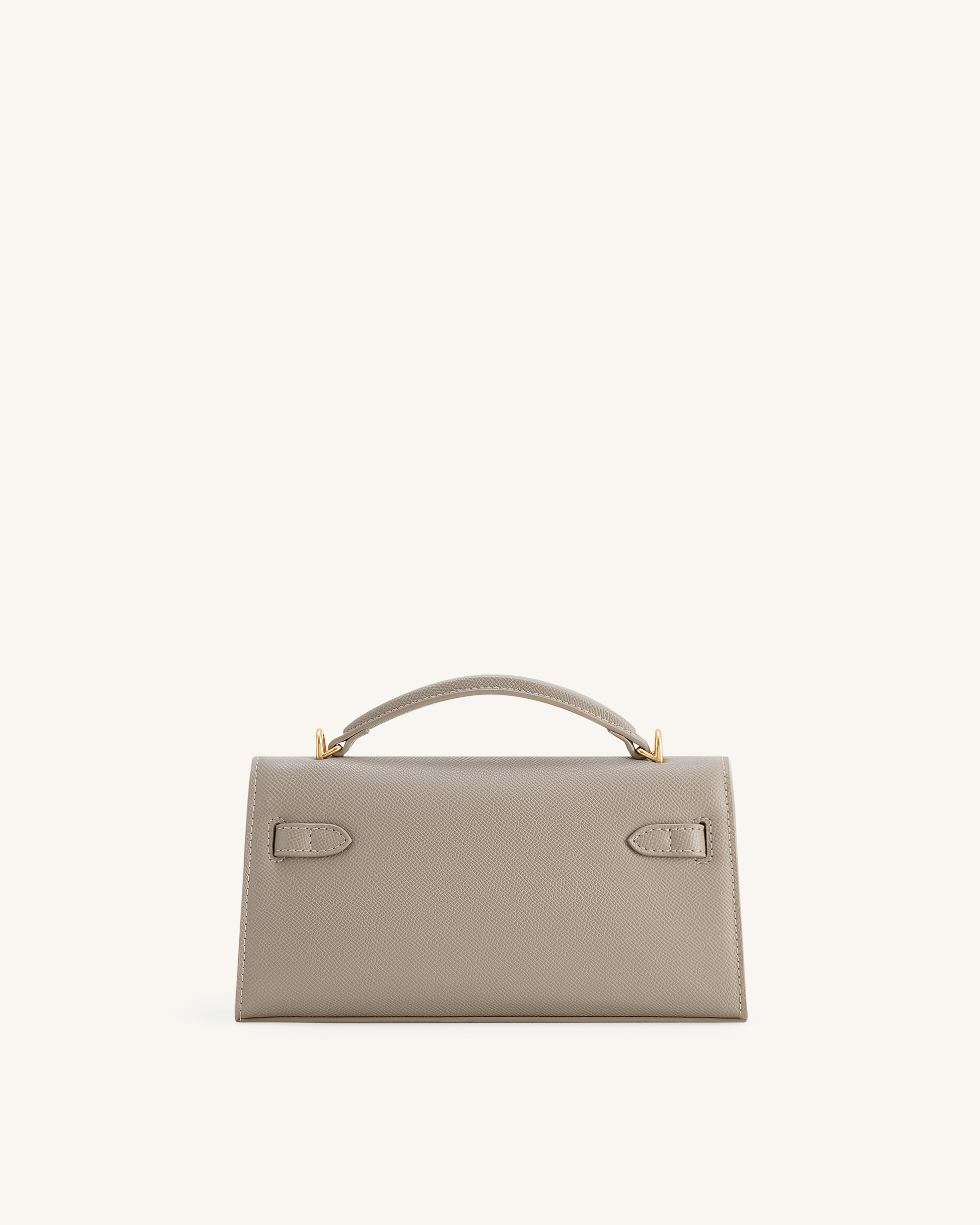 構造的でモダン、かつ多機能。ニュートラルなトープカラーにゴールドの金具をあしらい、手持ちと斜め掛けの両方に適しています。