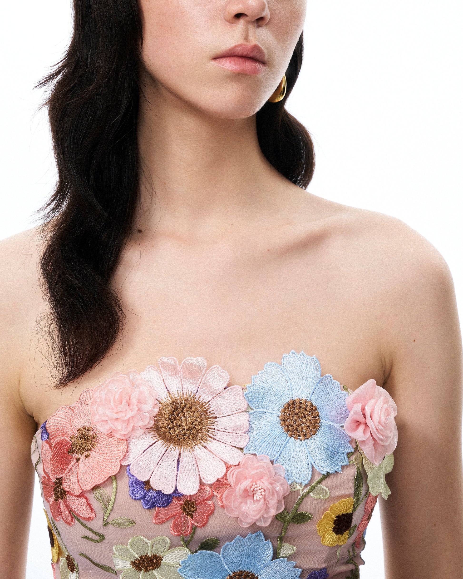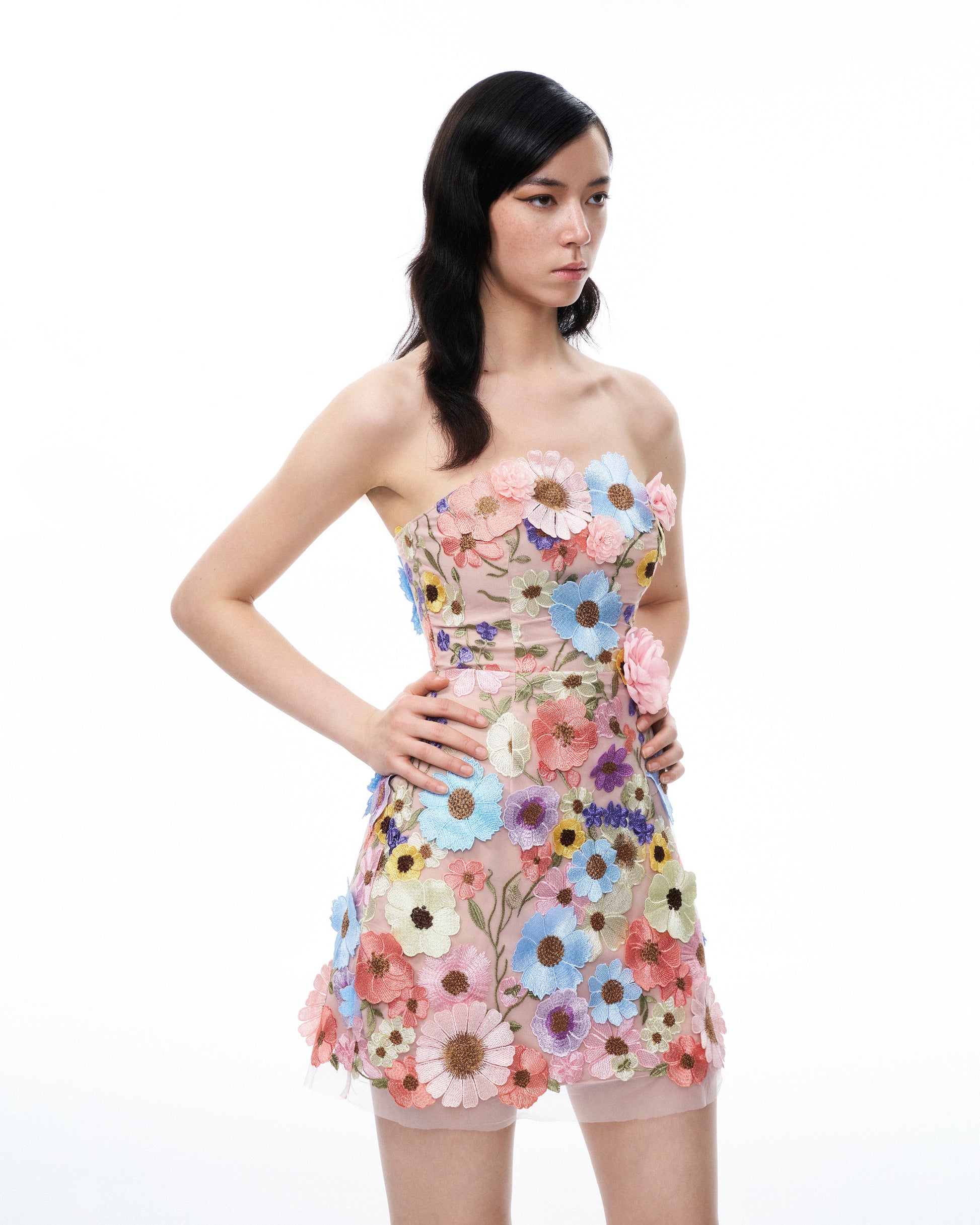 Odalys フローラル刺繍ミニドレス - パステルマルチ