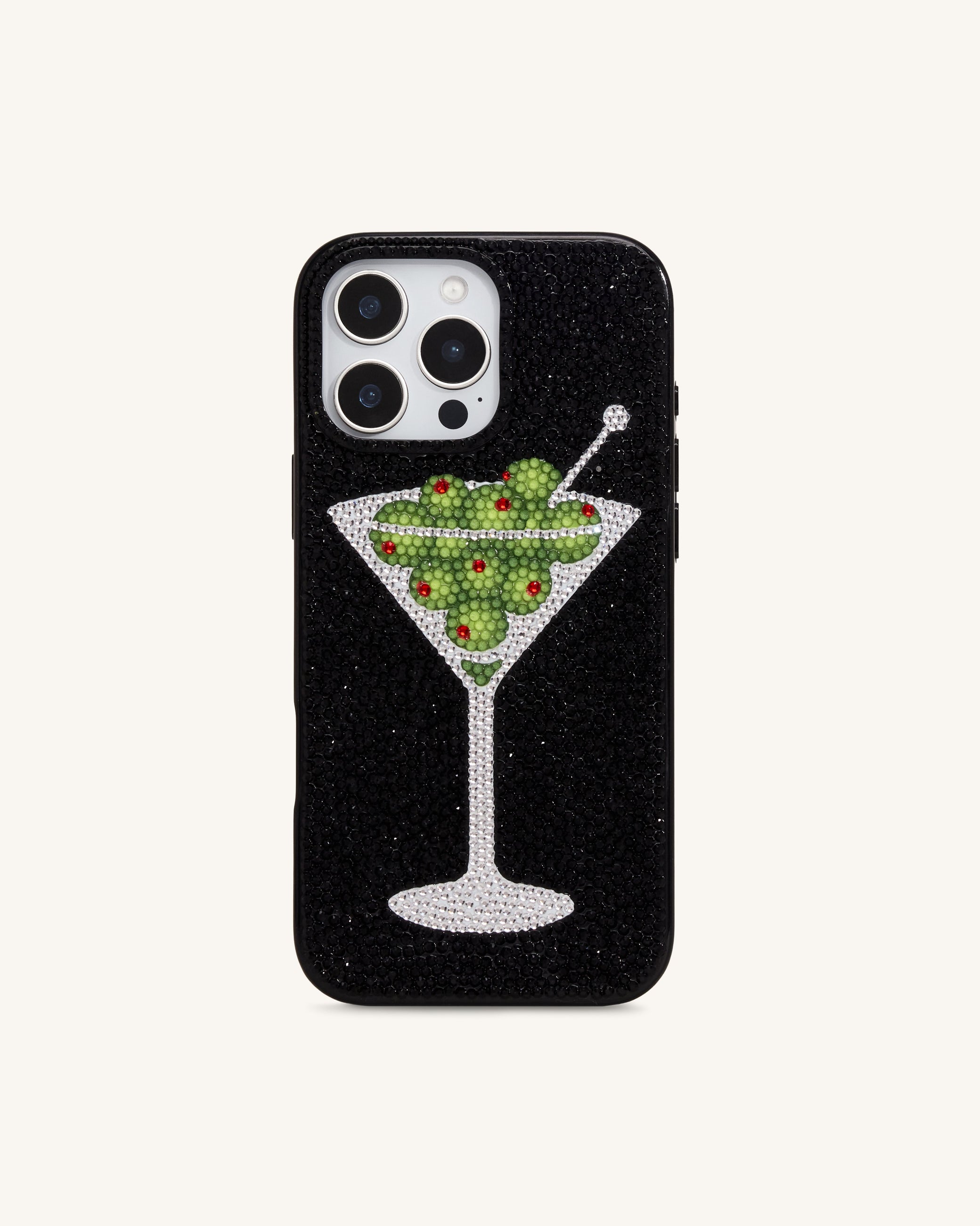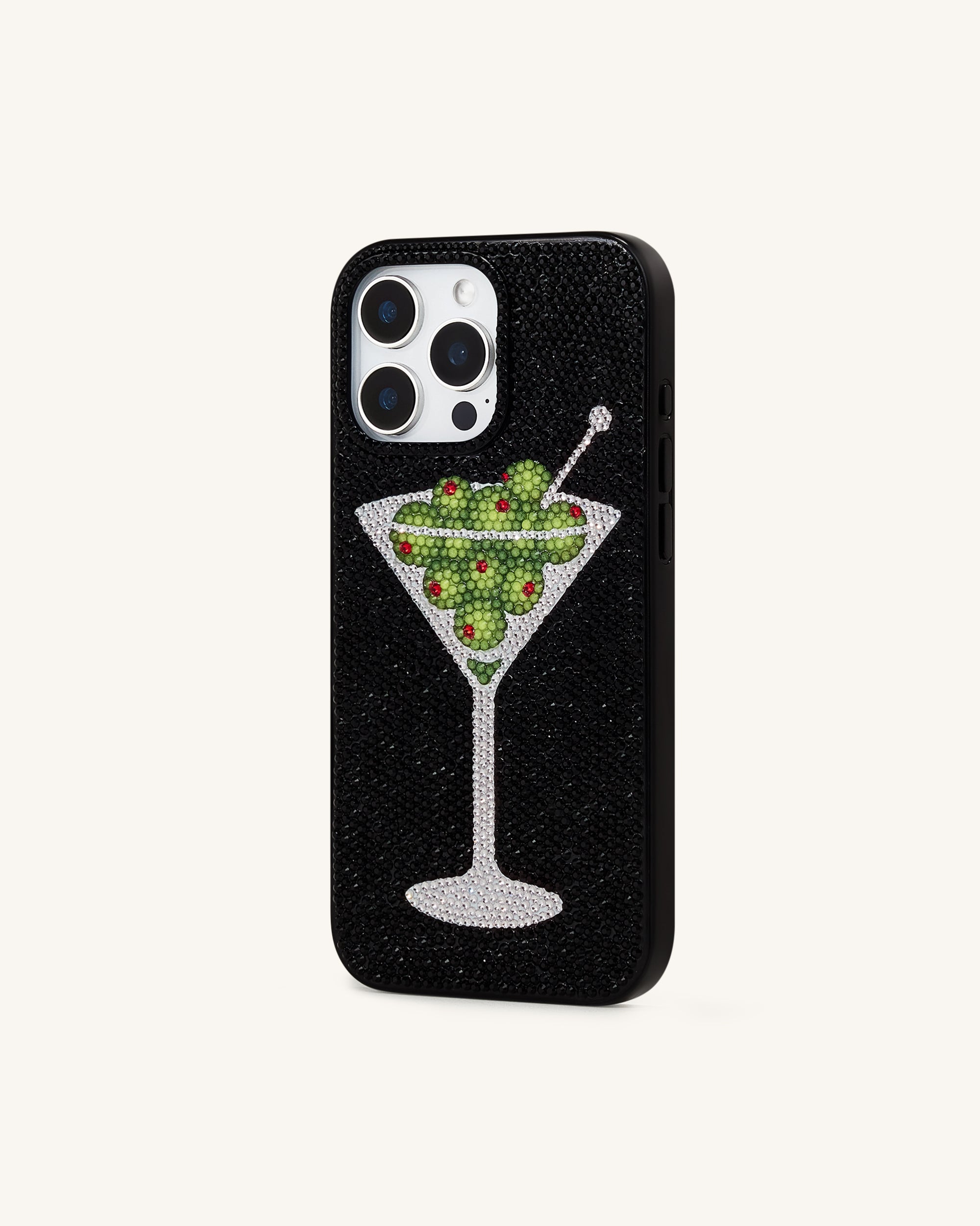 Olive マティーニ ラインストーンフォンケース - ブラック
