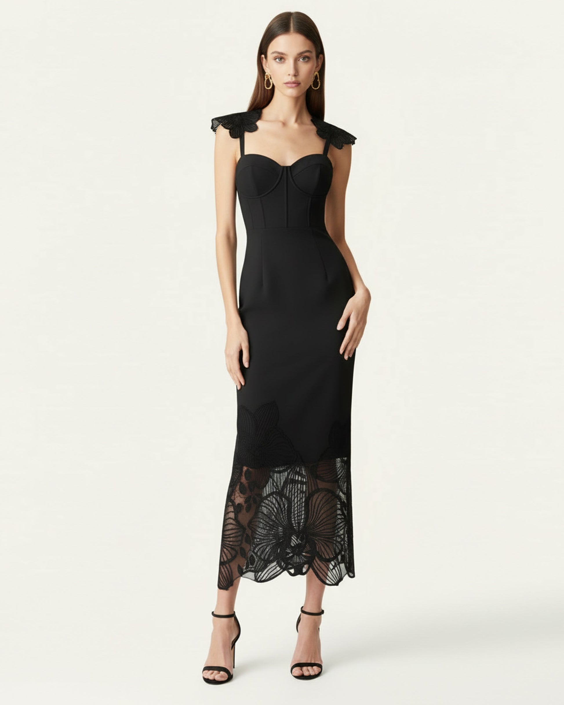 オーキッド刺繍コルセットドレス - ブラック