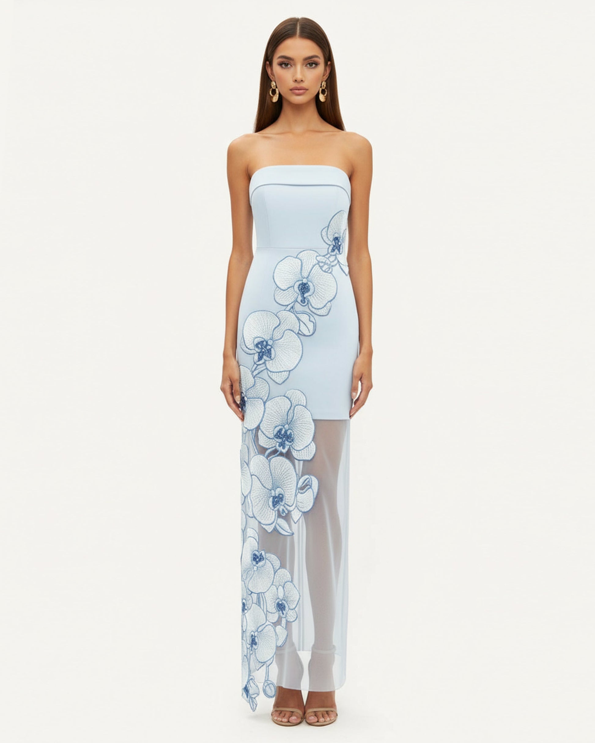 オーキッド刺繍ドレス – ライトブルー