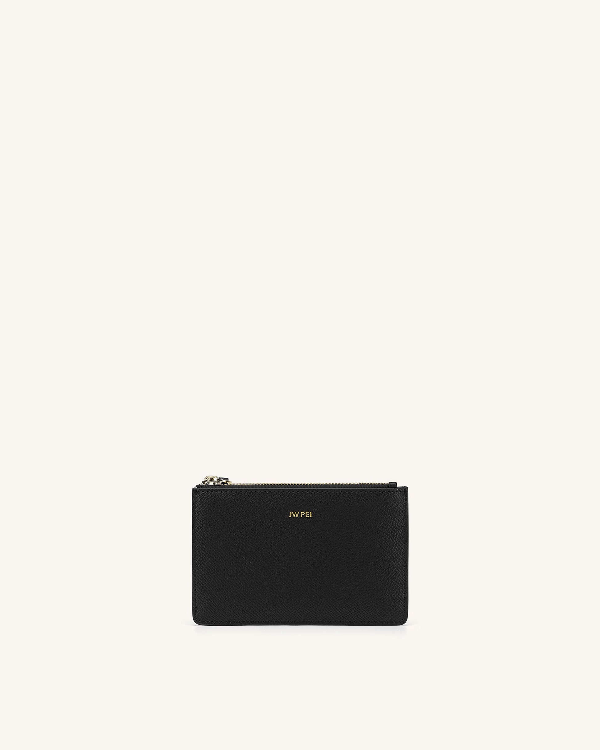Quinn ジップカードホルダー - ブラック グレイン型押しビーガンレザー