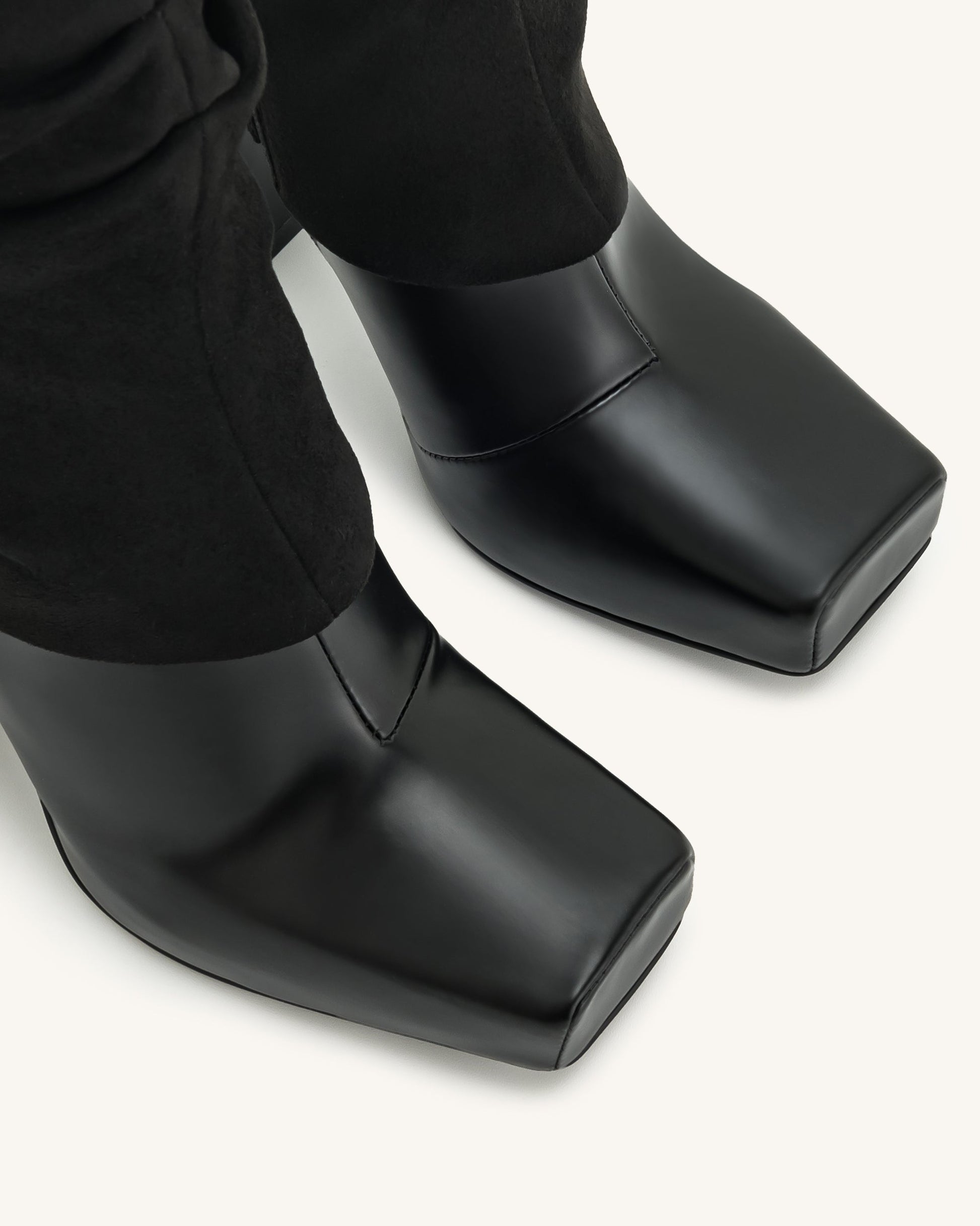 Reyna スクエアトゥ プラットフォーム ニットブーツ - ブラック