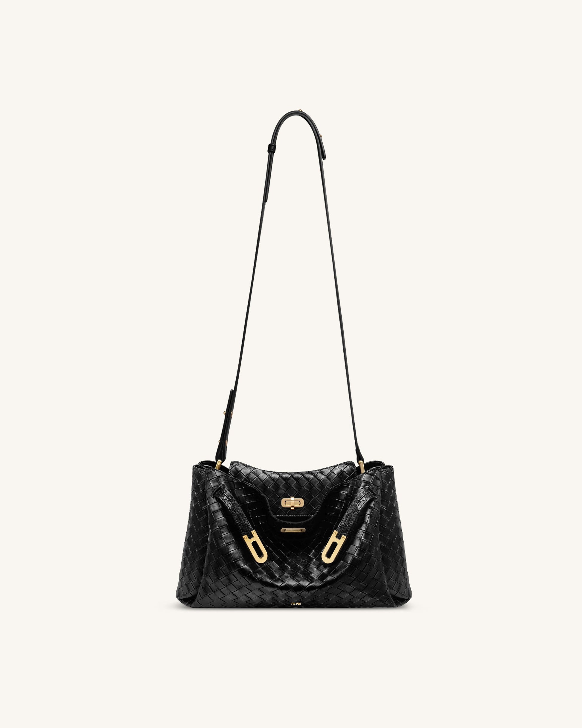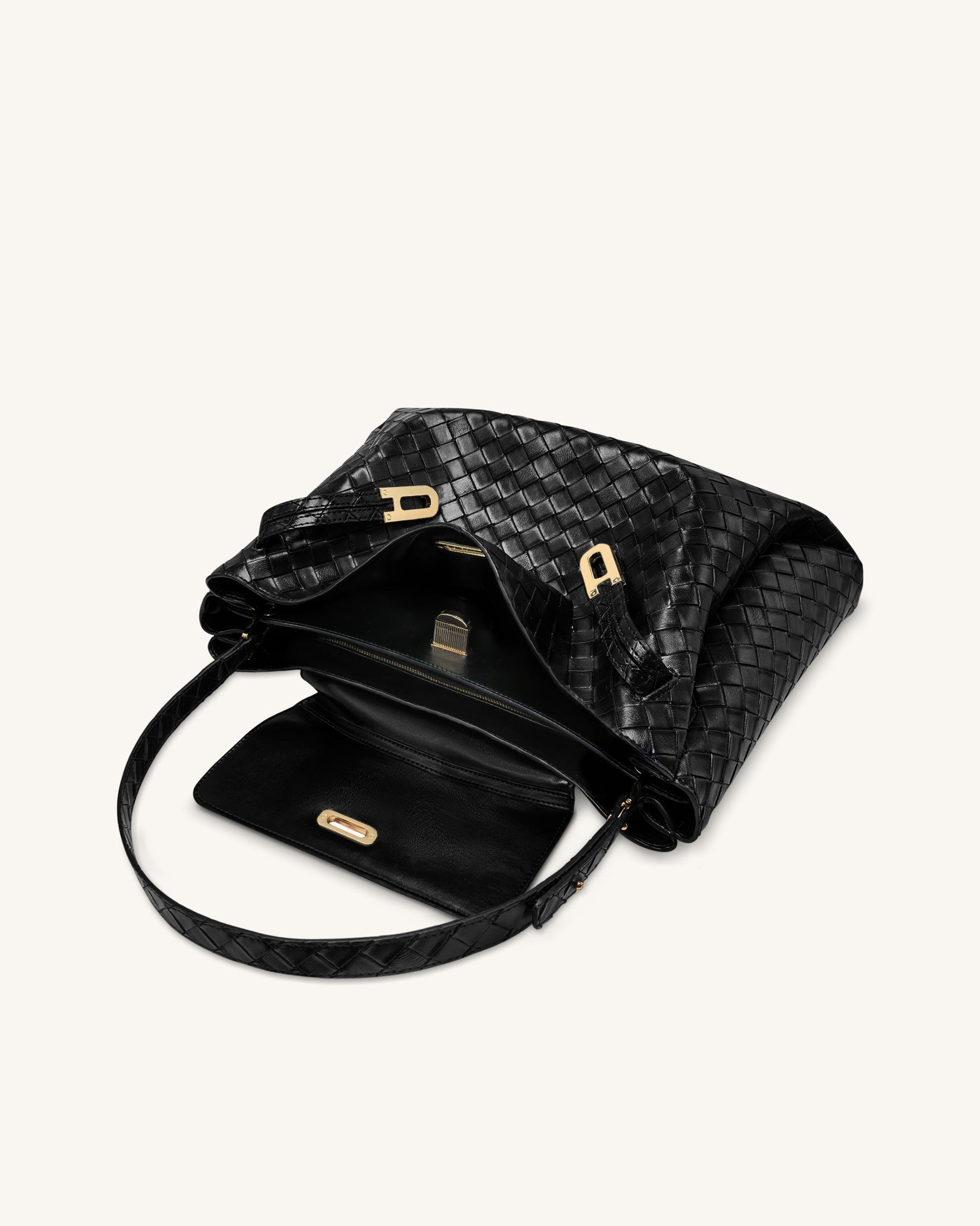 Rhea ラージ 織り目テクスチャード ショルダーバッグ - ブラック