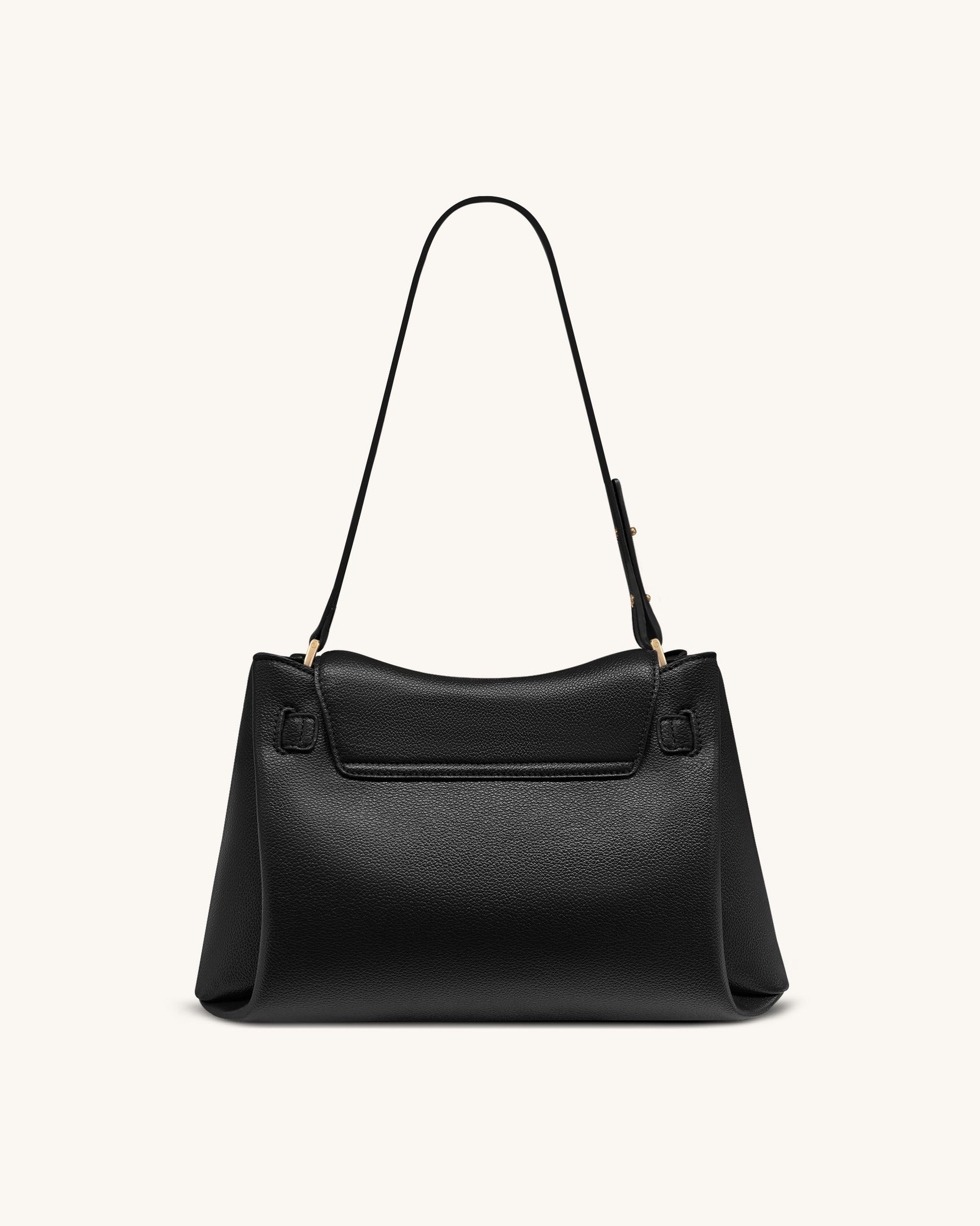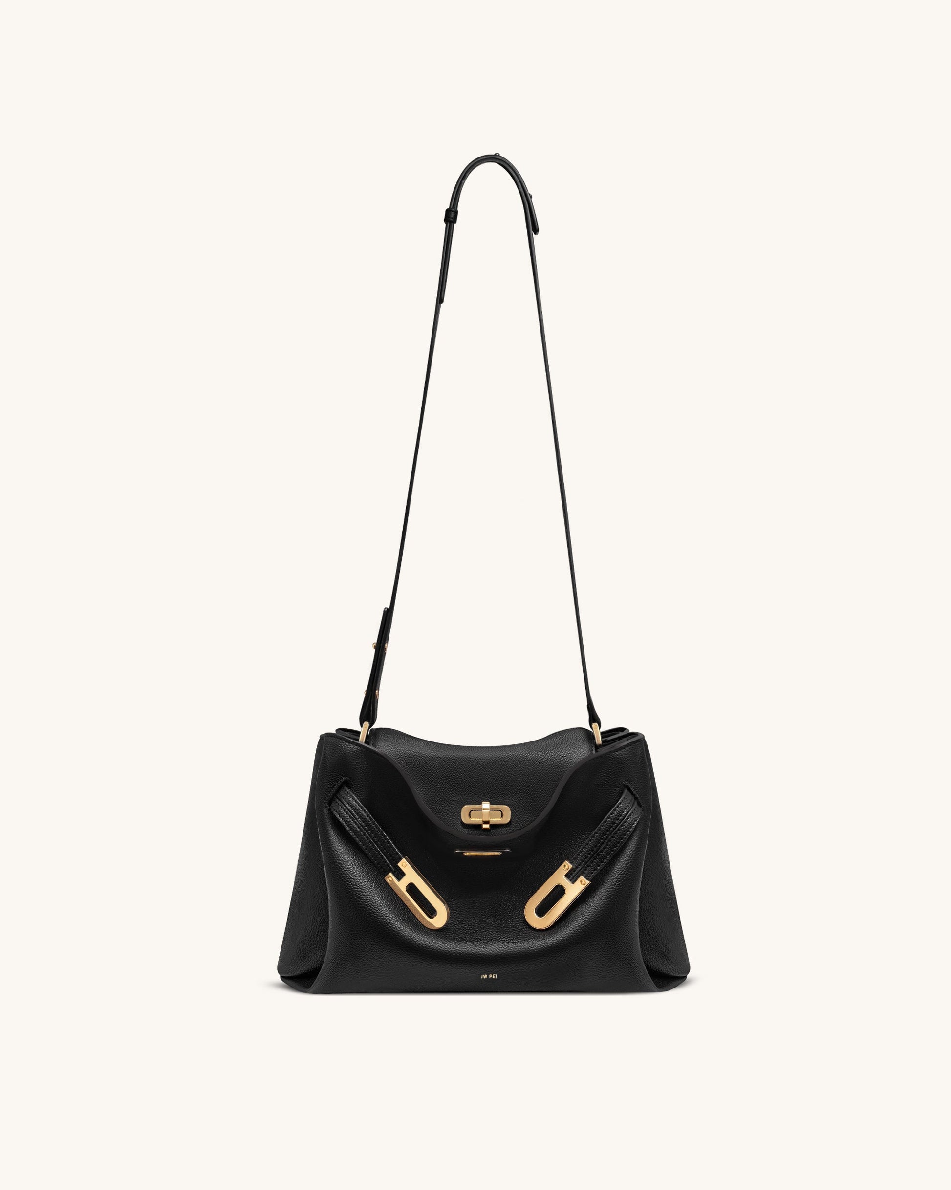 Rhea ペブルド ダブルバックル ショルダーバッグ - ブラック
