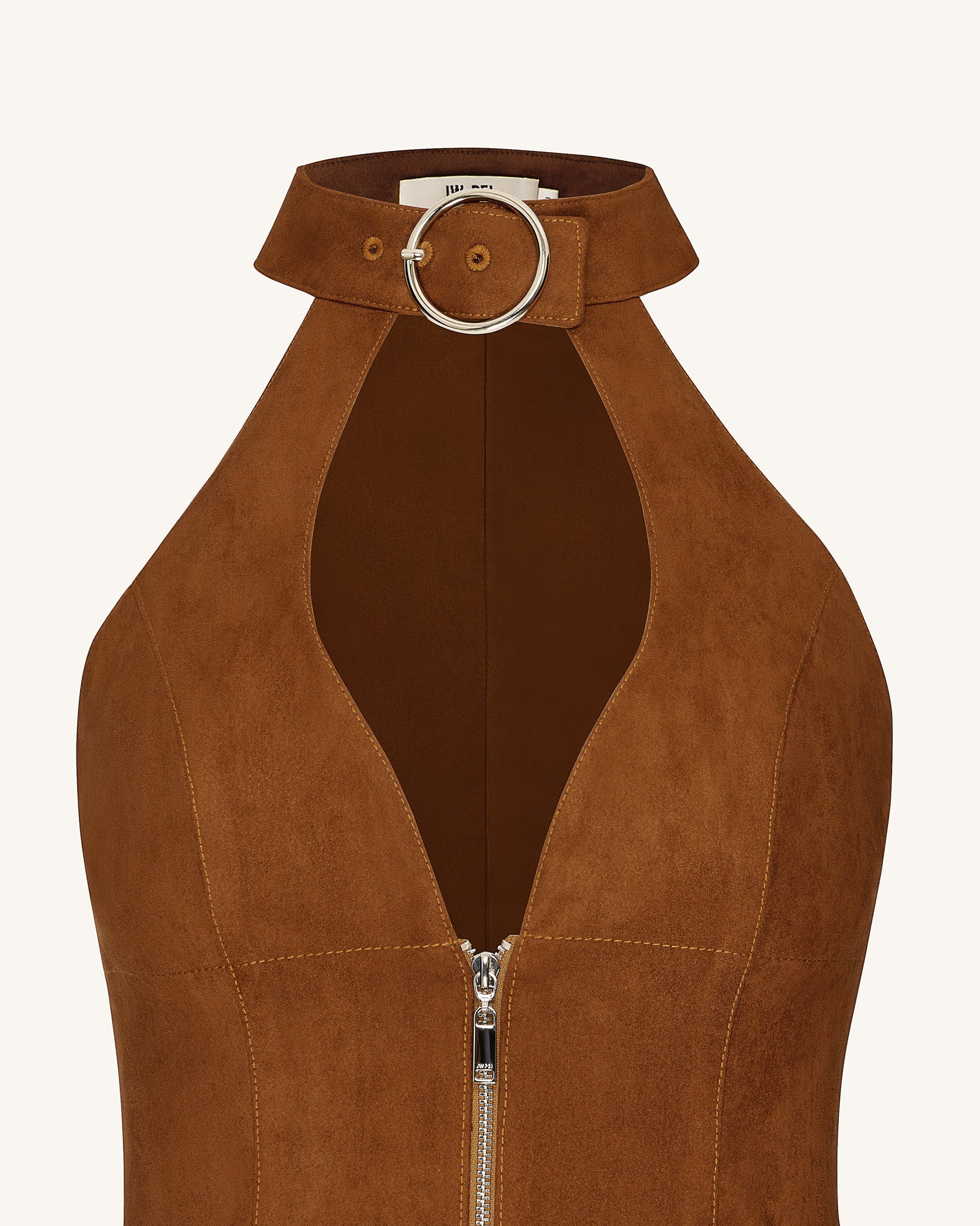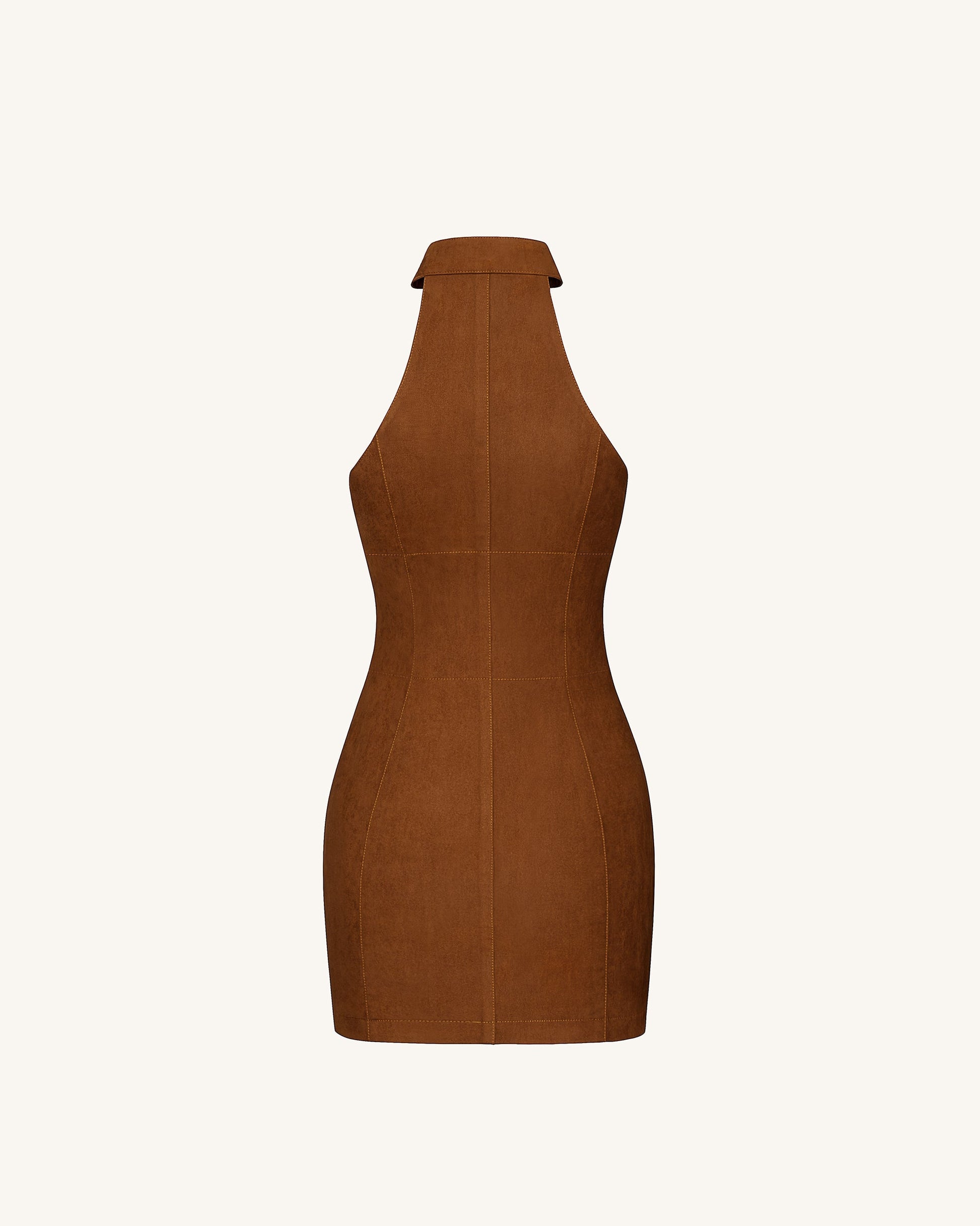 Ruby ハルターネック・ジッパー・ミニドレス - ブラウン