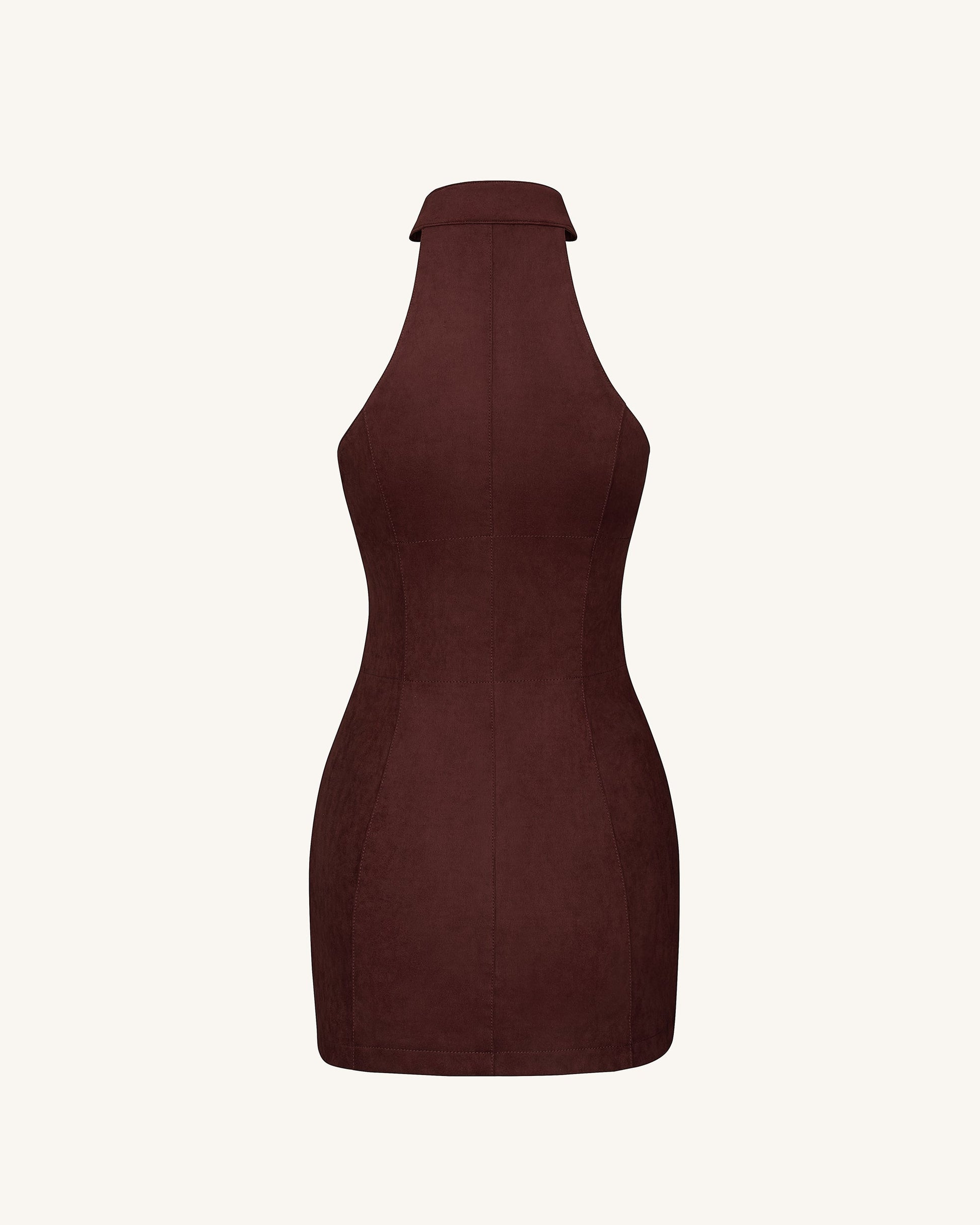 Ruby ハルターネック・ジッパー・ミニドレス - コーヒーレッド