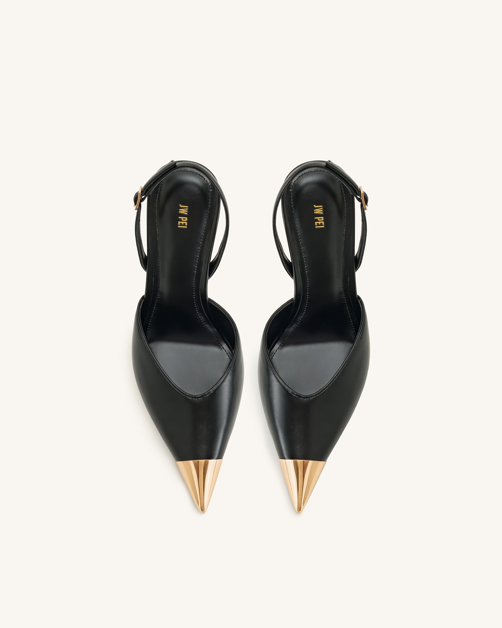 Savannah ゴールドチップ スリングバックパンプス - ブラック
