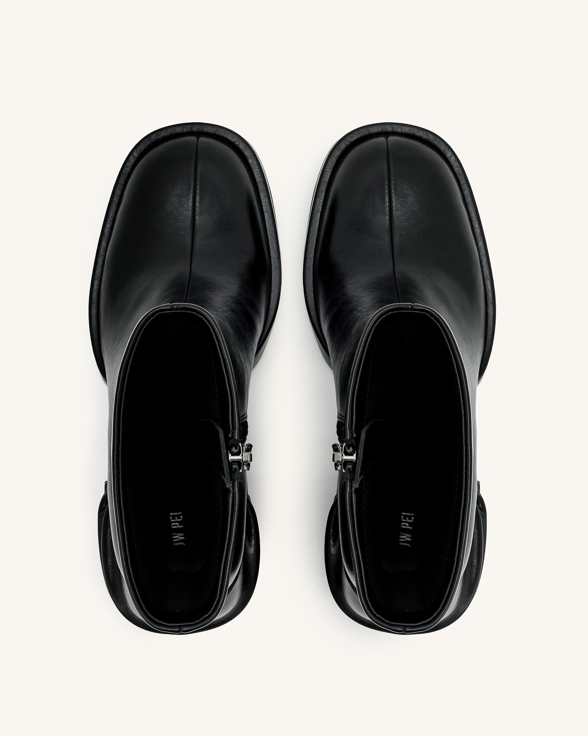 Saylor ラウンドトウプラットフォームアンクルブーツ - ブラック