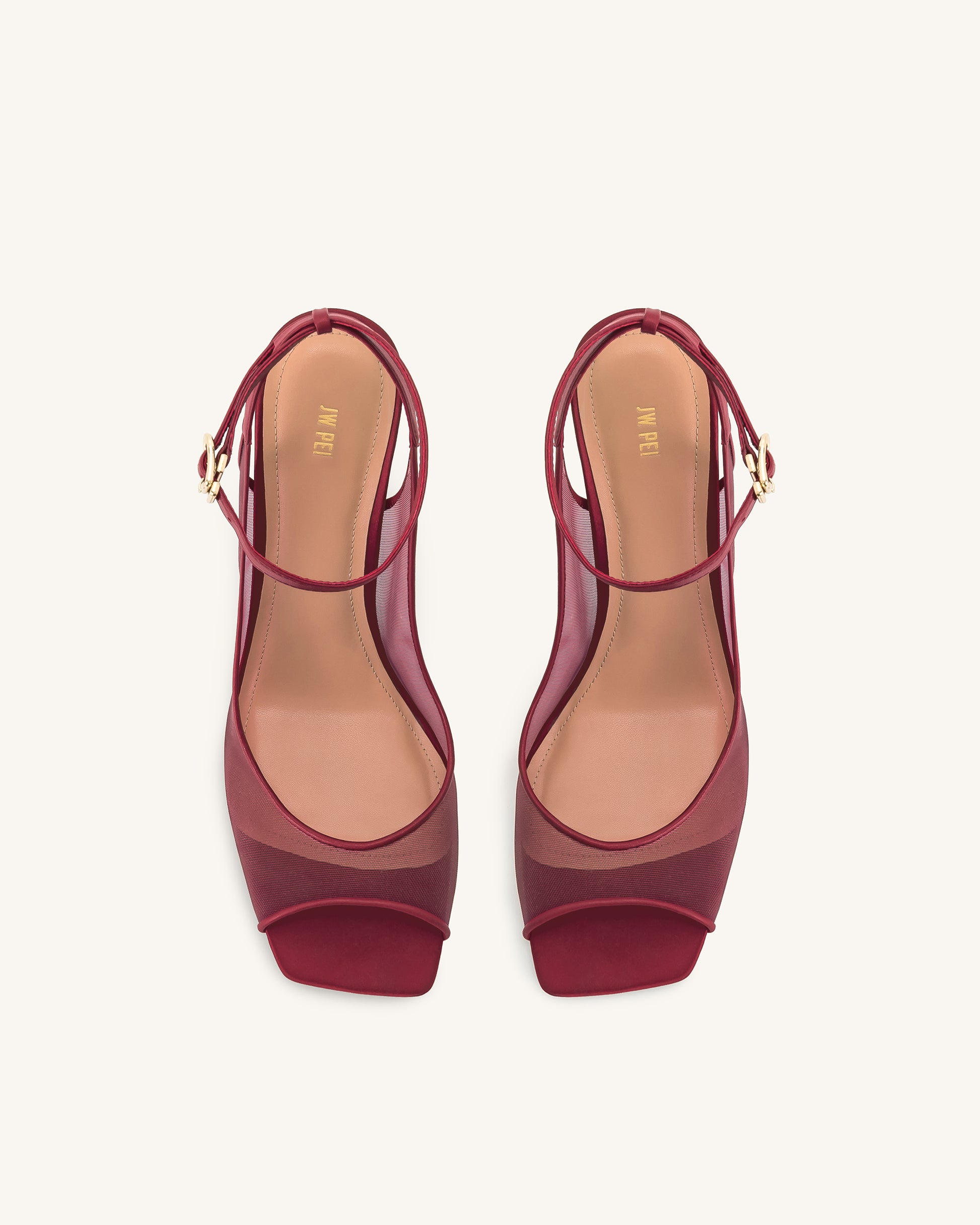Serenity オープントゥメッシュスリングバックサンダル - バーガンディ