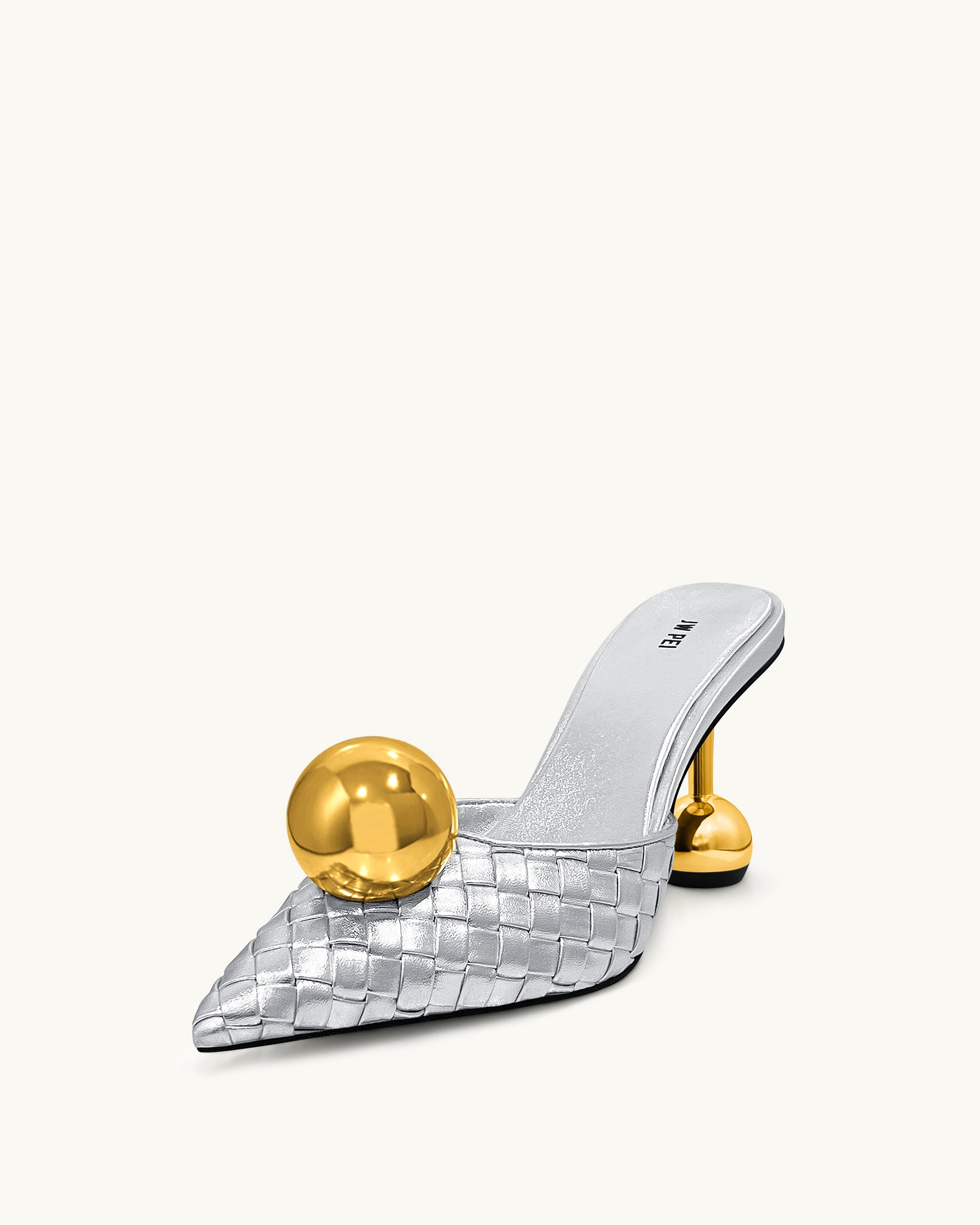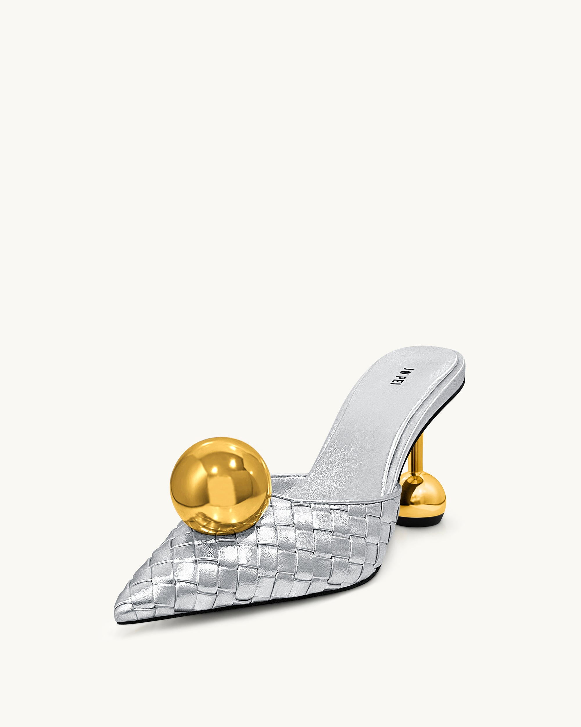 Sofia 編み込みボールヒールミュール - シルバー&ゴールド