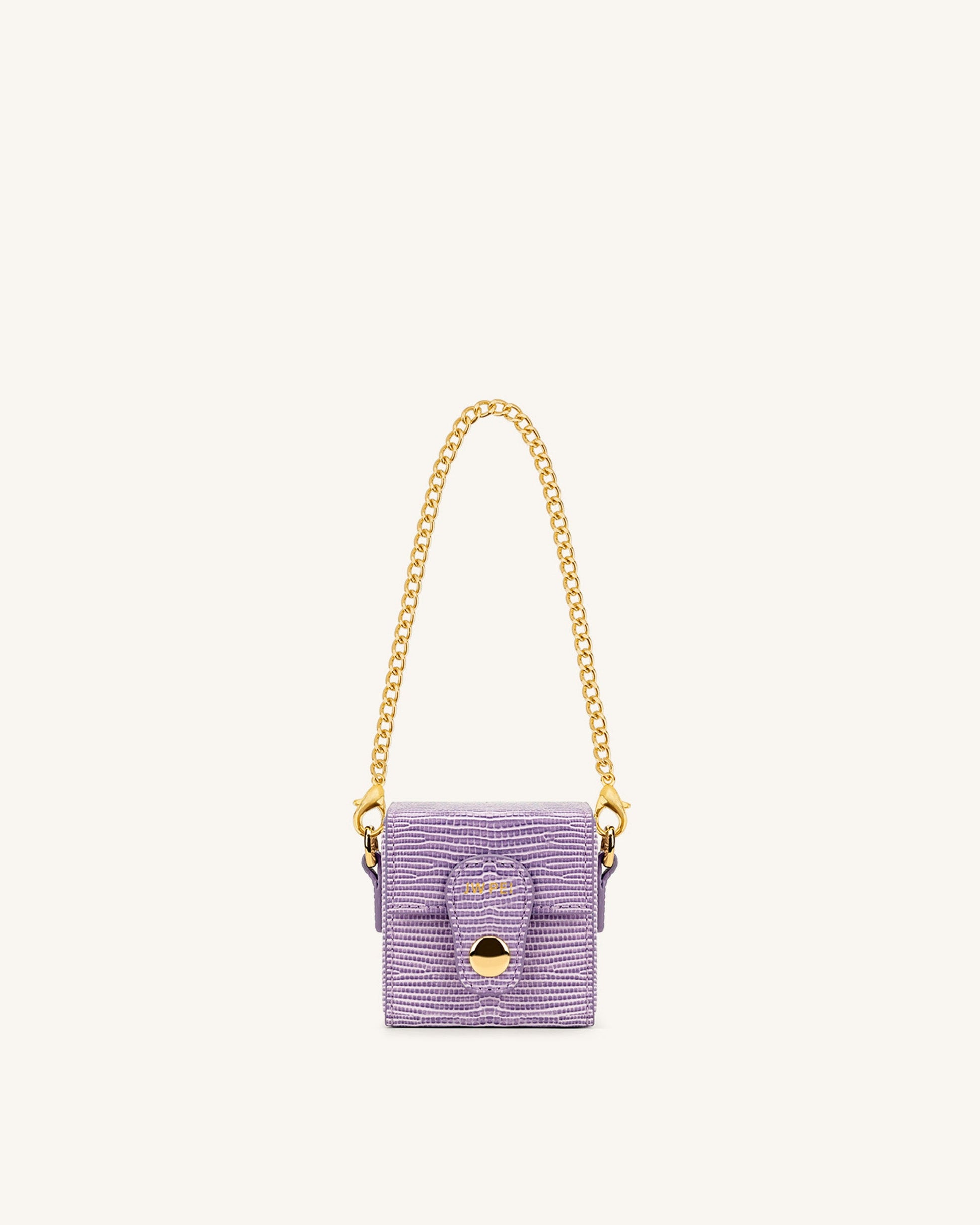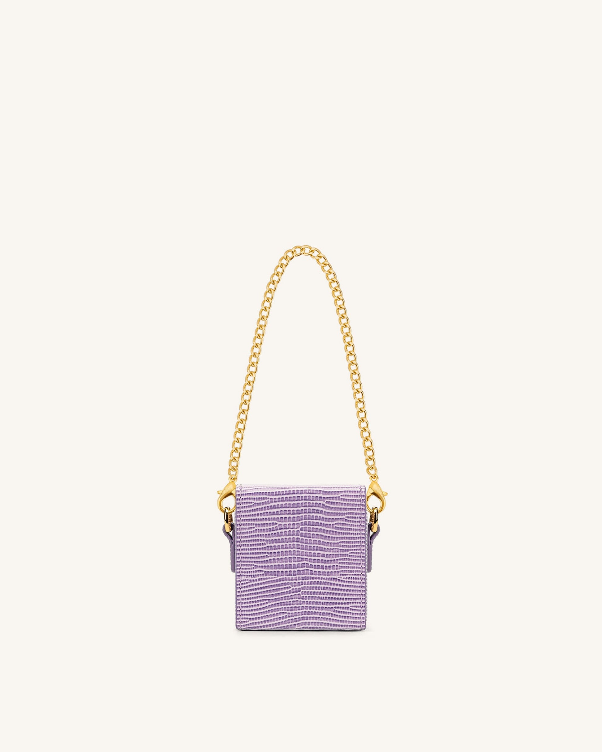 四角型ミニボックスバッグ-パープル トカゲ型押し
