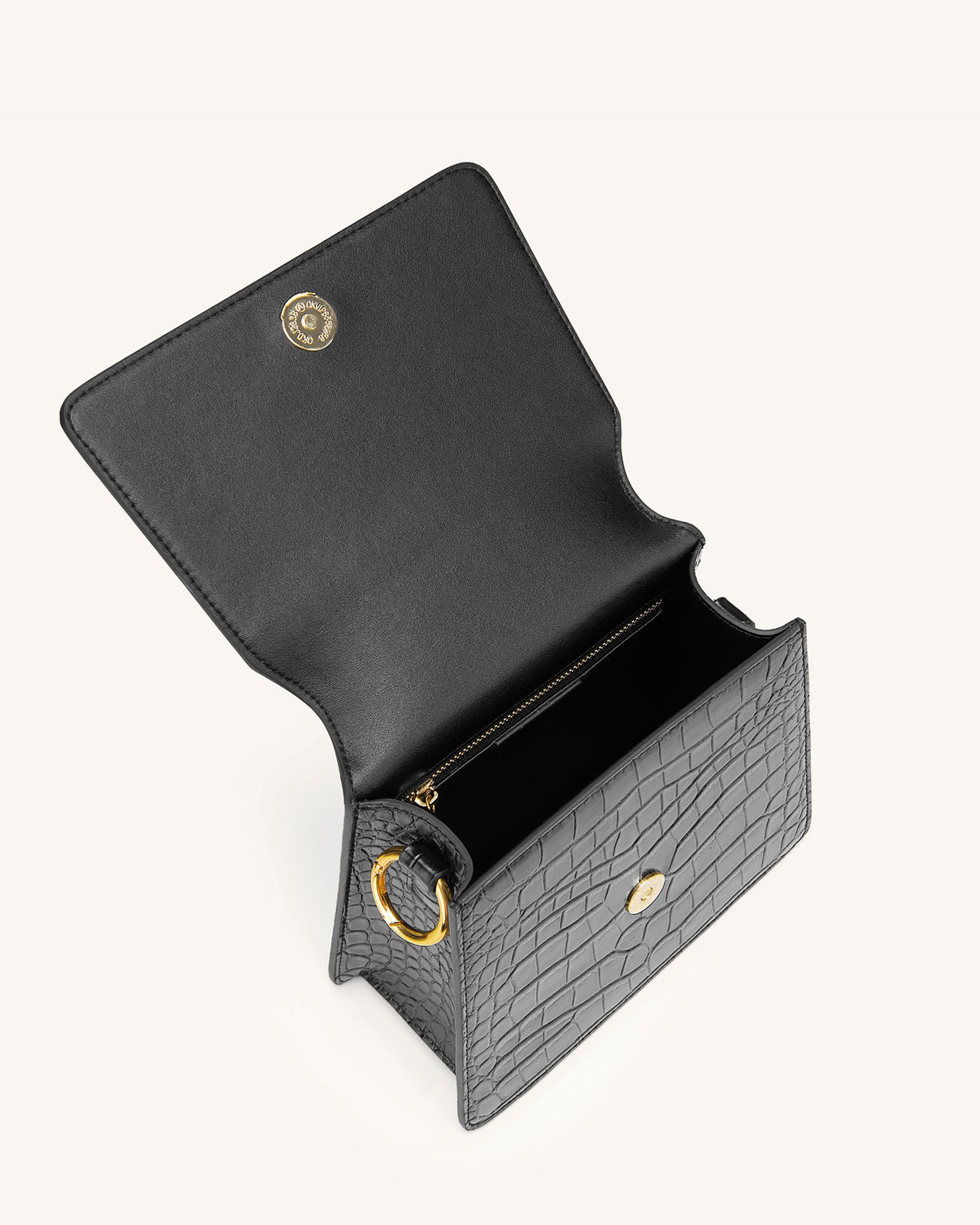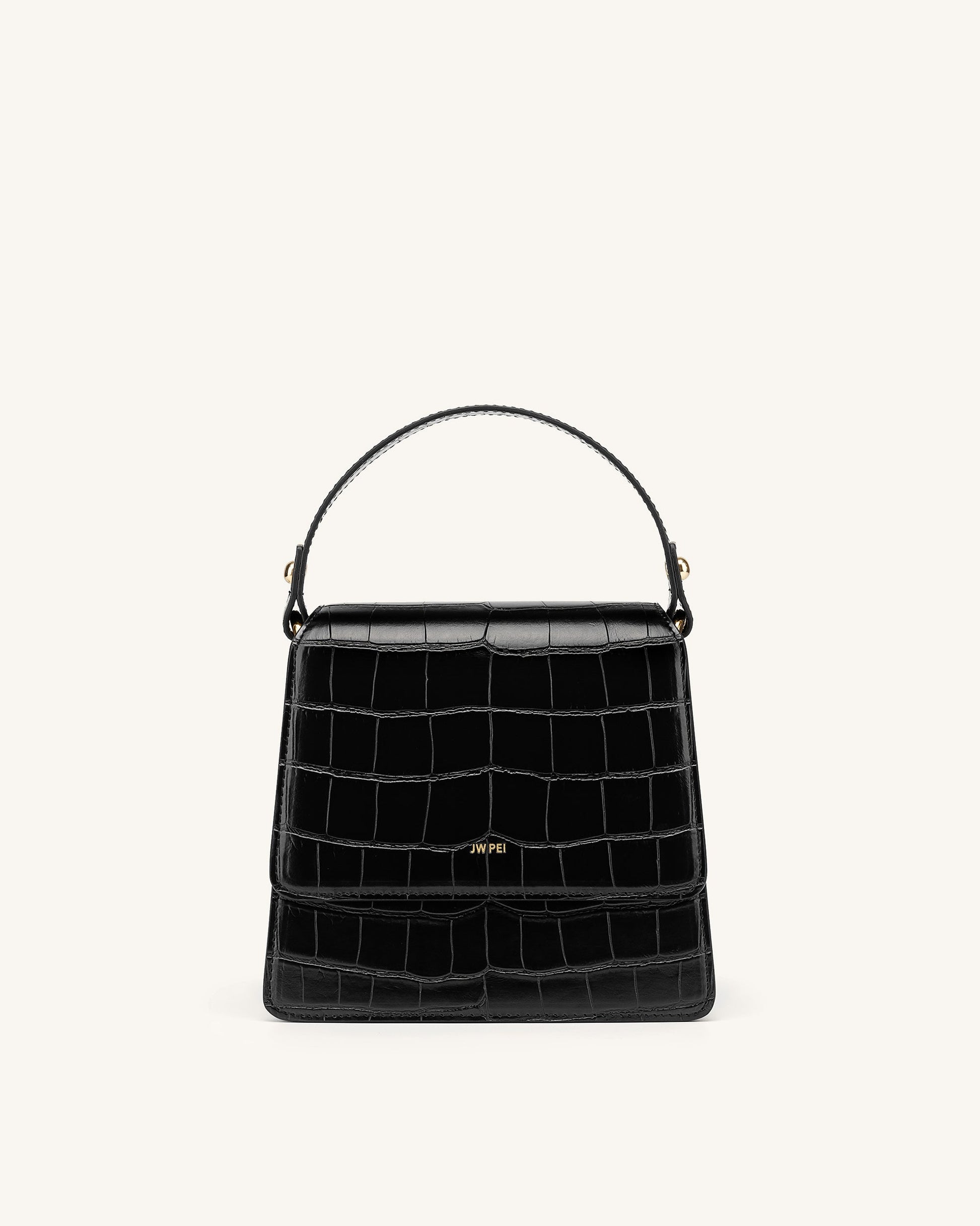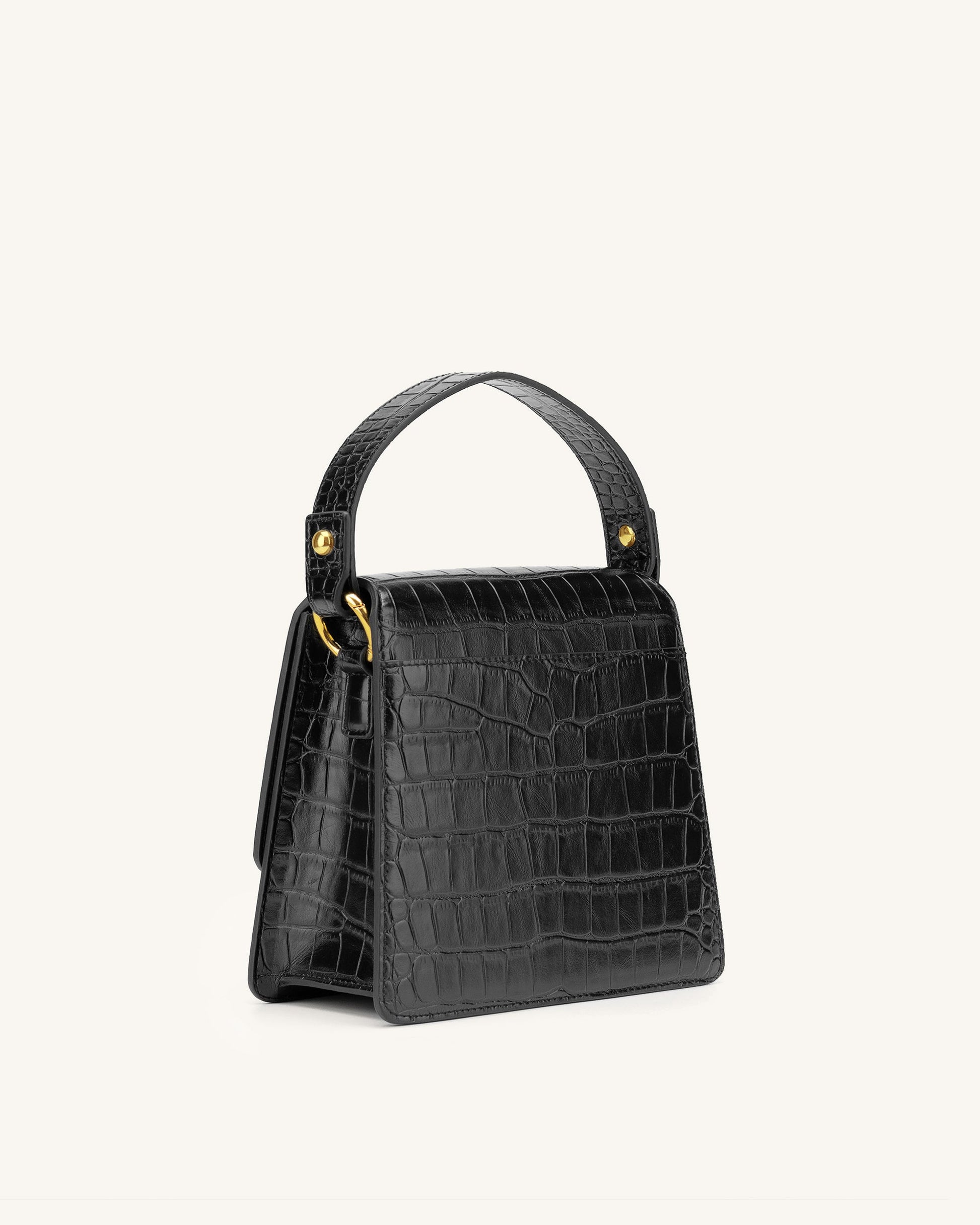 Fae ハンドルバッグ - ブラック クロコ型押し
