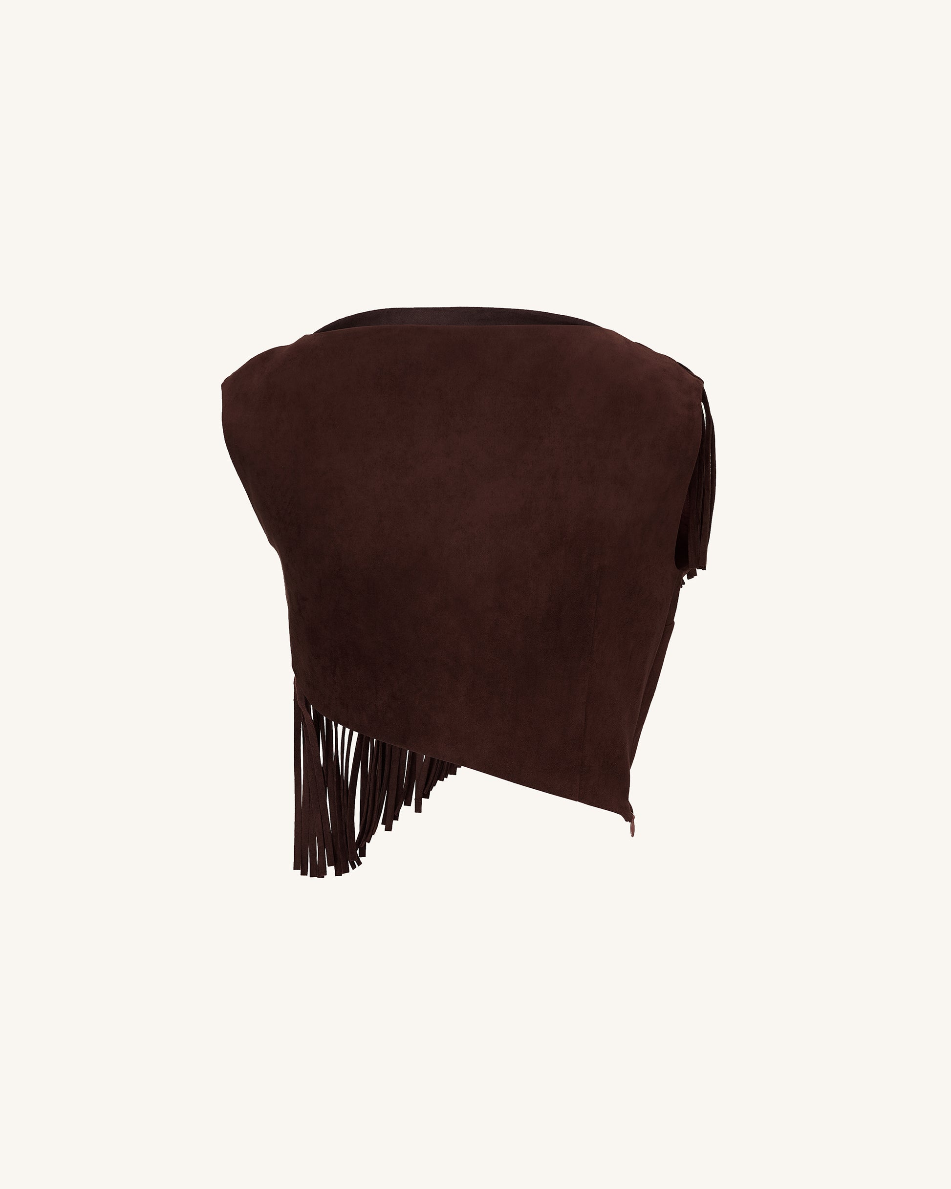 Ariana アシンメトリックフリンジスエードトップ - ワインレッド