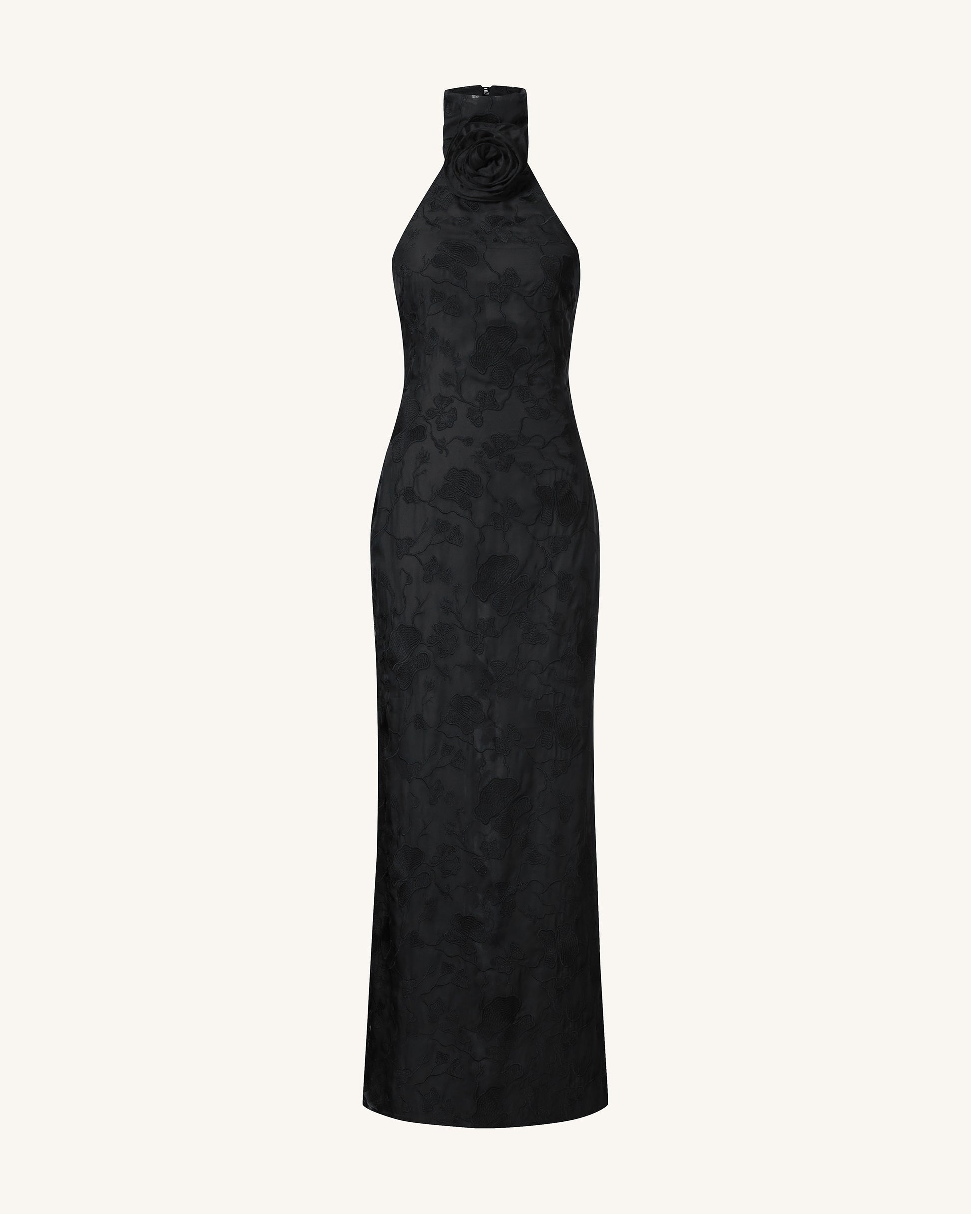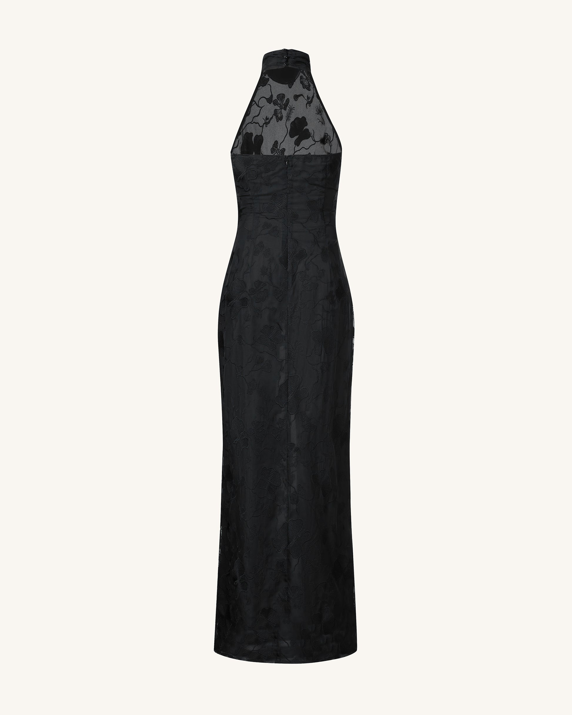 Uliana ブラックフローラルレースホルターネックマキシドレス - ブラック