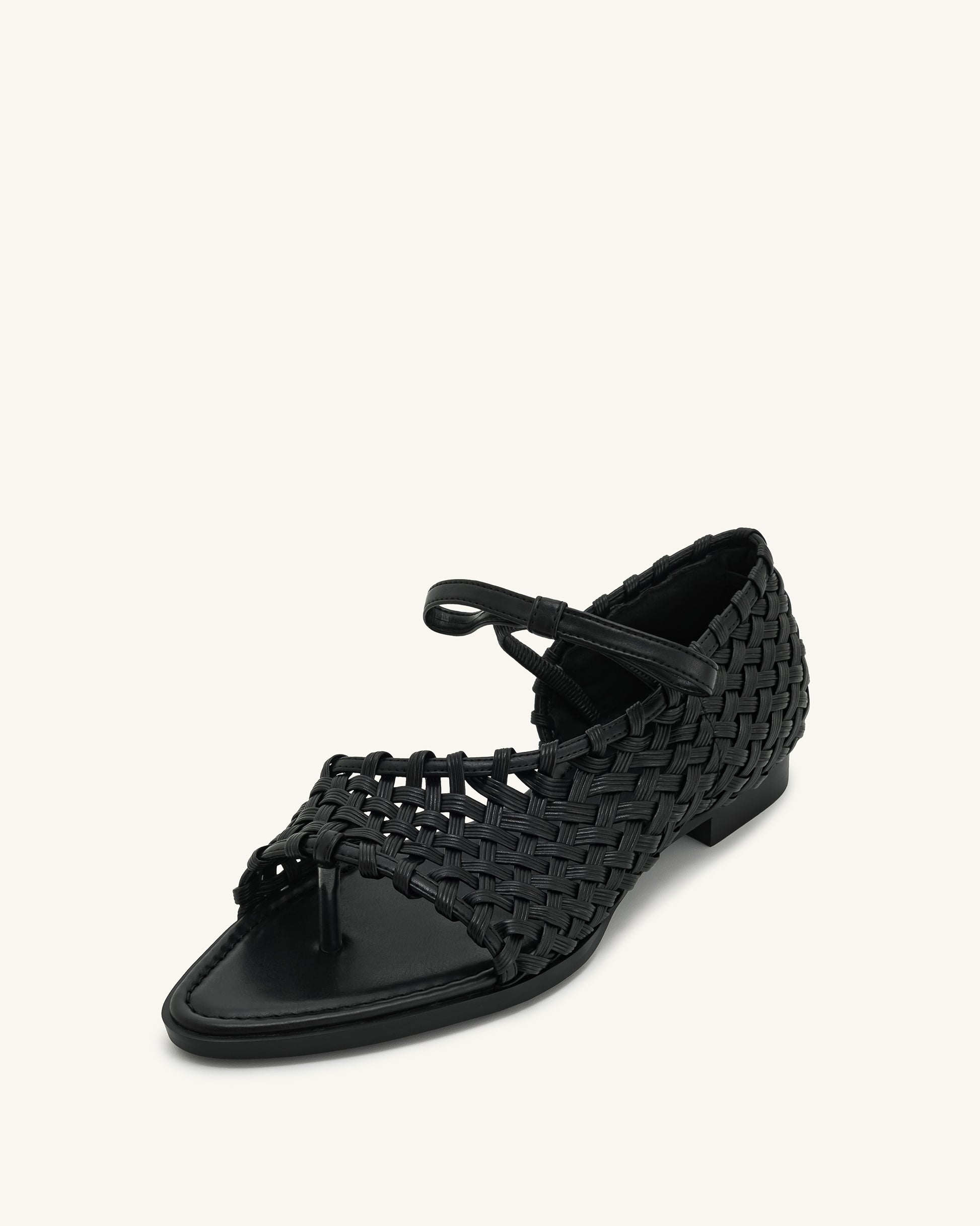 Jocelyn 編み込みストラップのフリップフロップ - ブラック